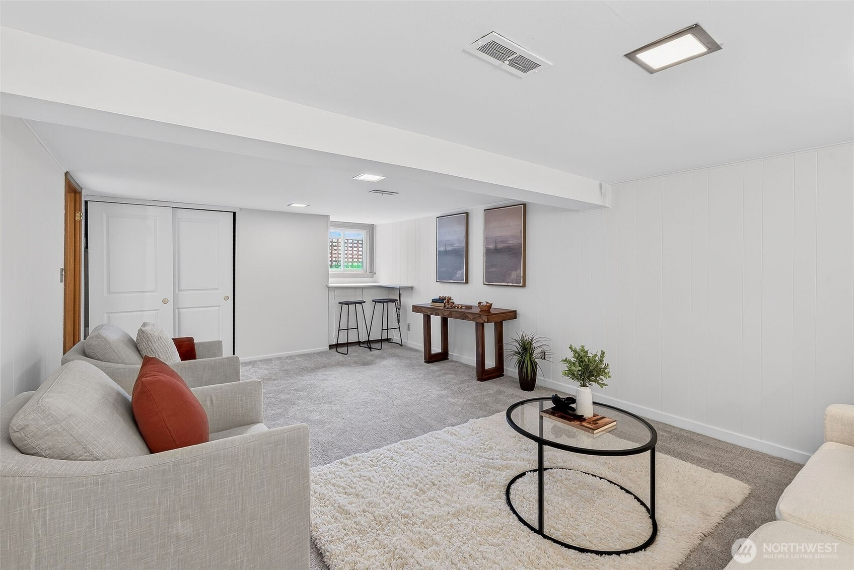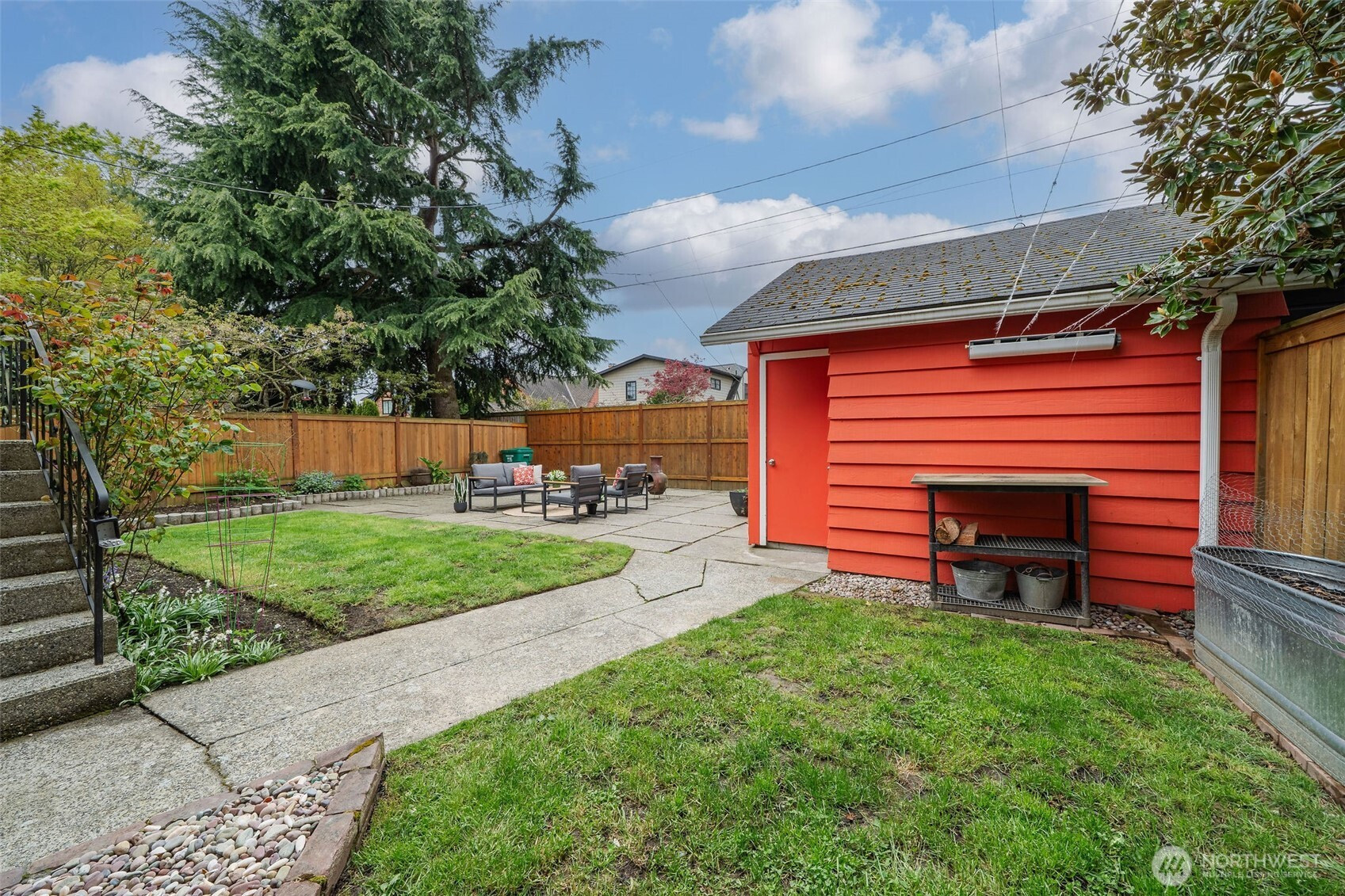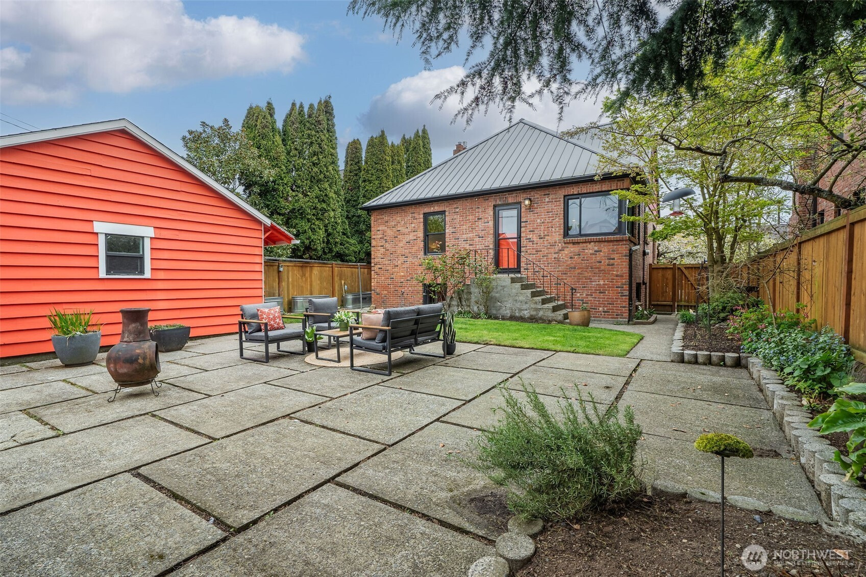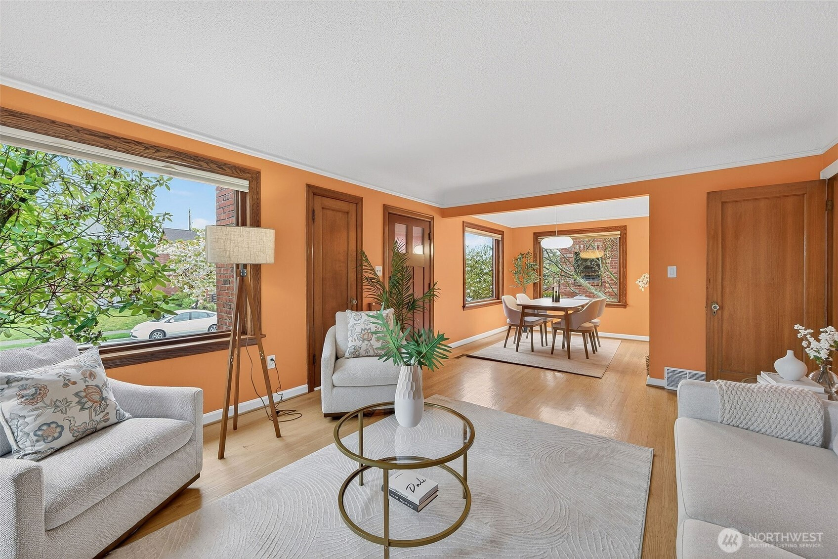 Timeless brick Tudor charm in the heart of Loyal Heights. This 4-bedroom home has been meticulously maintained and thoughtfully improved by the same owners for over a decade, with genuine pride poured into every corner. Inside, warm Carnival-painted walls and a glowing gas fireplace make every morning feel like an occasion. Fresh carpet throughout, two fully remodeled bathrooms, whole-house re-plumb, Andersen windows throughout, and a finished basement that truly delivers: new LVP flooring, a spacious rec room, and a flexible fourth bedroom perfect as a home office or guest suite. Outside, the craftsmanship continues. A metal roof, brick front wall, custom stonework side yard with drainage, and an 8-foot alley fence are just a few of the lasting investments made over the years. The backyard is a private oasis — a large patio ideal for entertainers and gardeners alike, complete with raised vegetable and herb planters already in place. There are homes that are maintained — and then there are homes that are truly loved. This is one of them. Nestled in one of northwest Seattle's most peaceful and well-established neighborhoods, just minutes from the bustle of downtown Ballard and the shores of Puget Sound. Golden Gardens Park, the Loyal Heights Community Center, and beloved local spots like Larsen's Bakery are all close at hand — walkable streets and a strong sense of community make this one of Seattle's most livable and loved corners of the city.