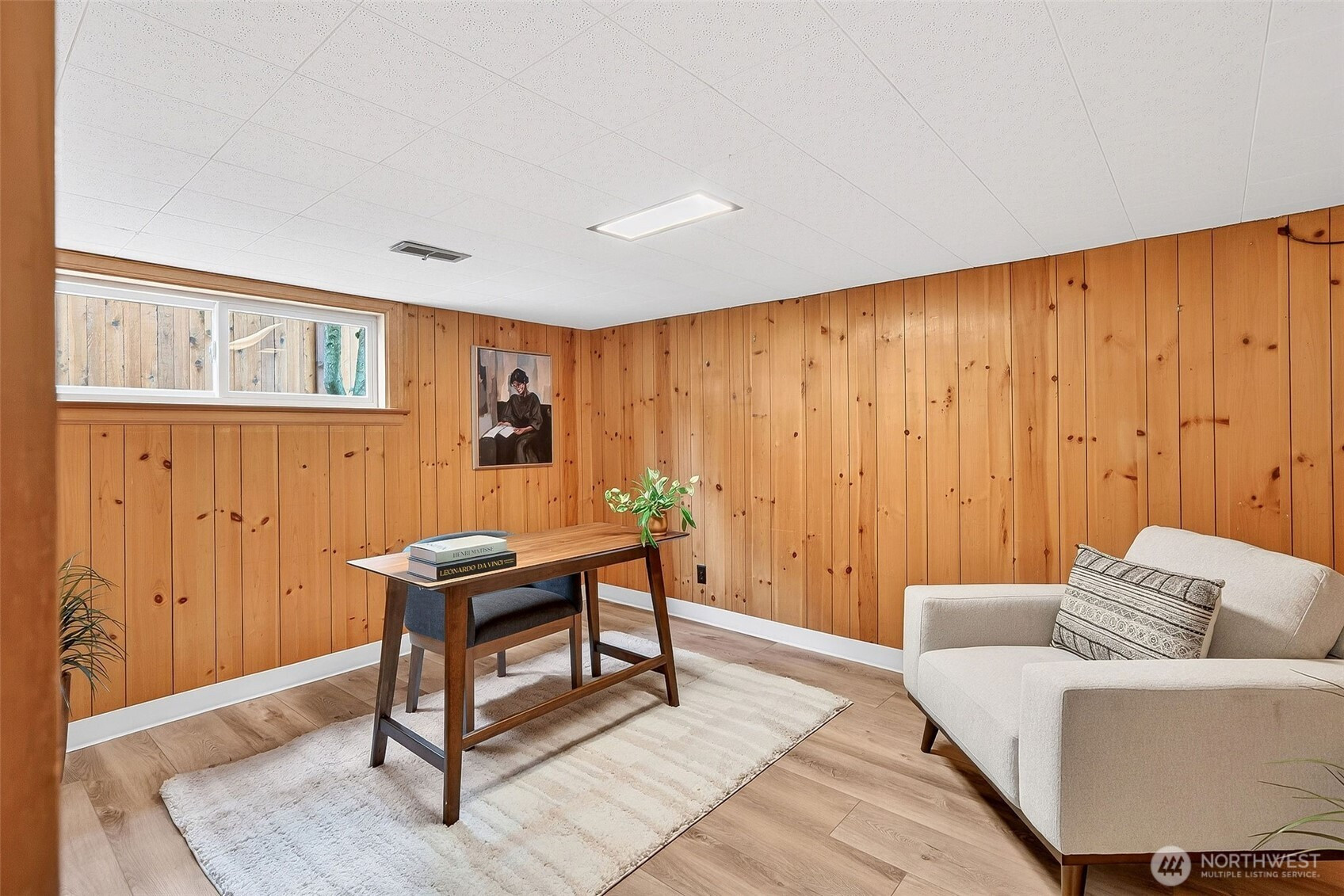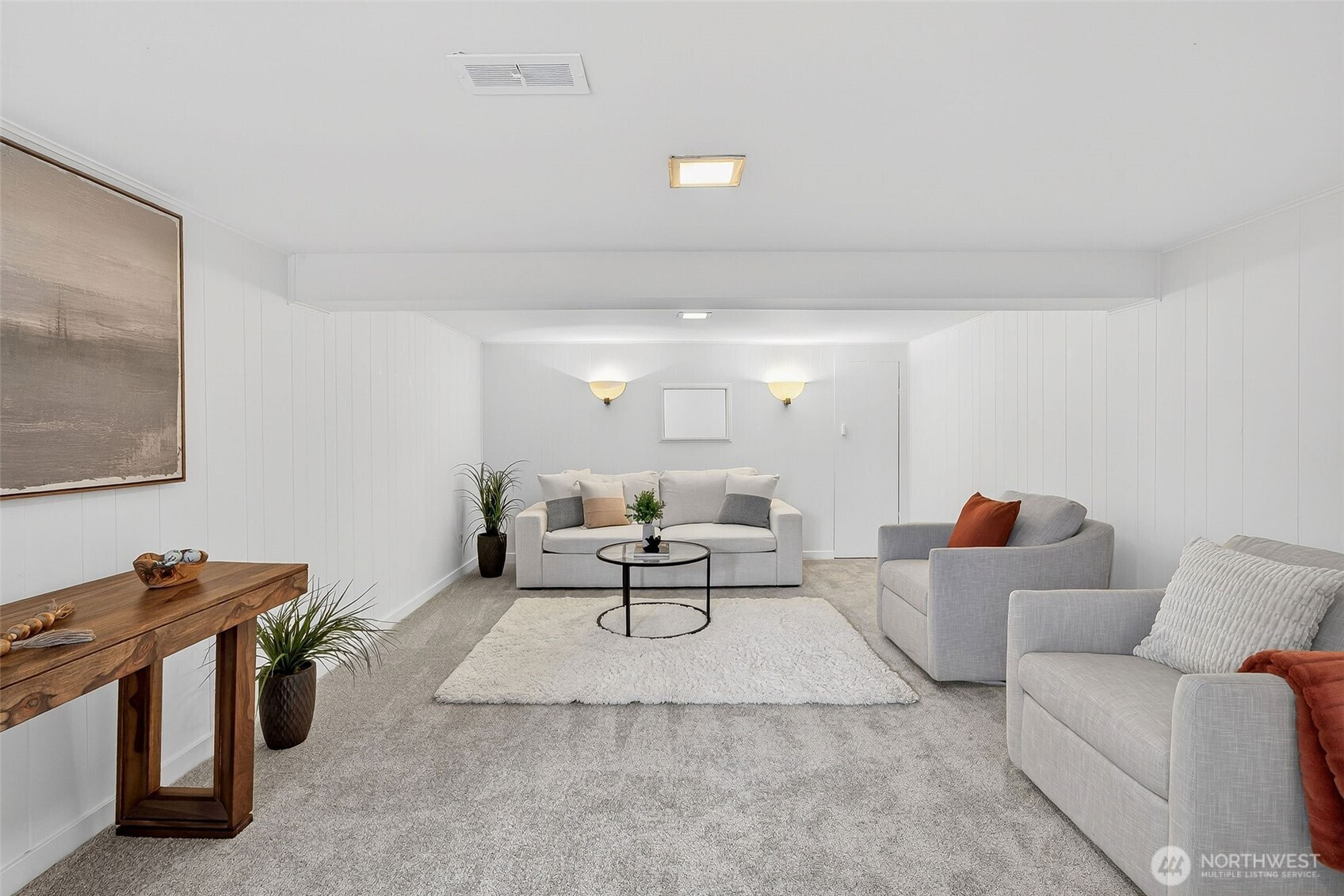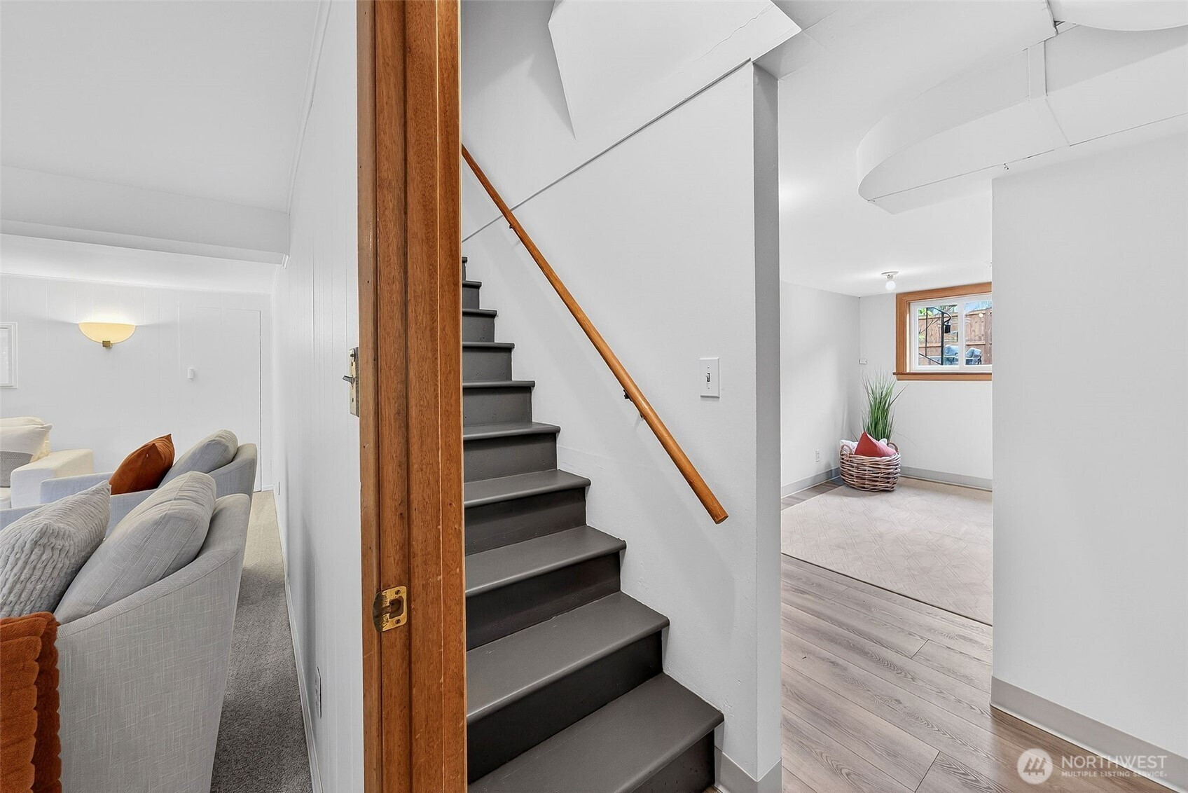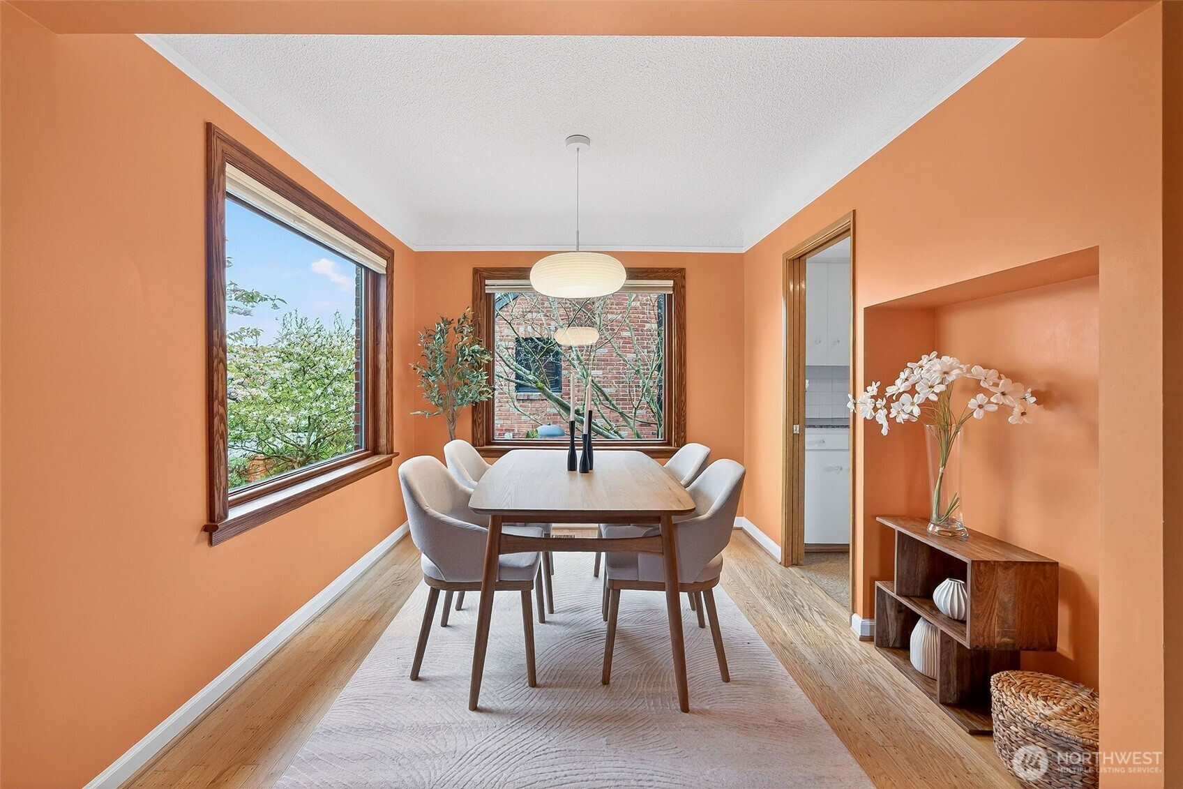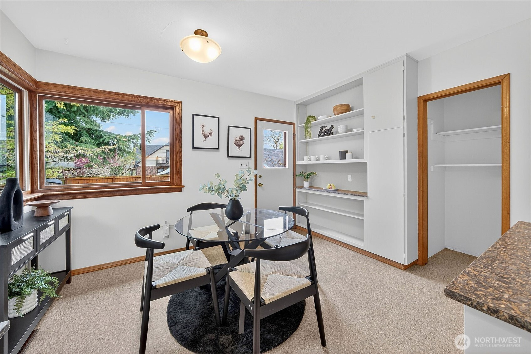 Timeless brick Tudor charm in the heart of Loyal Heights. This 4-bedroom home has been meticulously maintained and thoughtfully improved by the same owners for over a decade, with genuine pride poured into every corner. Inside, warm Carnival-painted walls and a glowing gas fireplace make every morning feel like an occasion. Fresh carpet throughout, two fully remodeled bathrooms, whole-house re-plumb, Andersen windows throughout, and a finished basement that truly delivers: new LVP flooring, a spacious rec room, and a flexible fourth bedroom perfect as a home office or guest suite. Outside, the craftsmanship continues. A metal roof, brick front wall, custom stonework side yard with drainage, and an 8-foot alley fence are just a few of the lasting investments made over the years. The backyard is a private oasis — a large patio ideal for entertainers and gardeners alike, complete with raised vegetable and herb planters already in place. There are homes that are maintained — and then there are homes that are truly loved. This is one of them. Nestled in one of northwest Seattle's most peaceful and well-established neighborhoods, just minutes from the bustle of downtown Ballard and the shores of Puget Sound. Golden Gardens Park, the Loyal Heights Community Center, and beloved local spots like Larsen's Bakery are all close at hand — walkable streets and a strong sense of community make this one of Seattle's most livable and loved corners of the city.