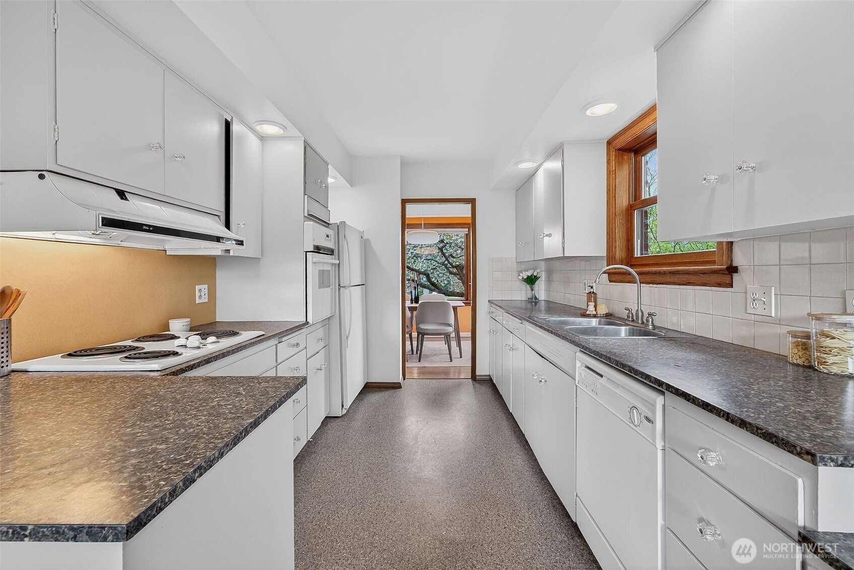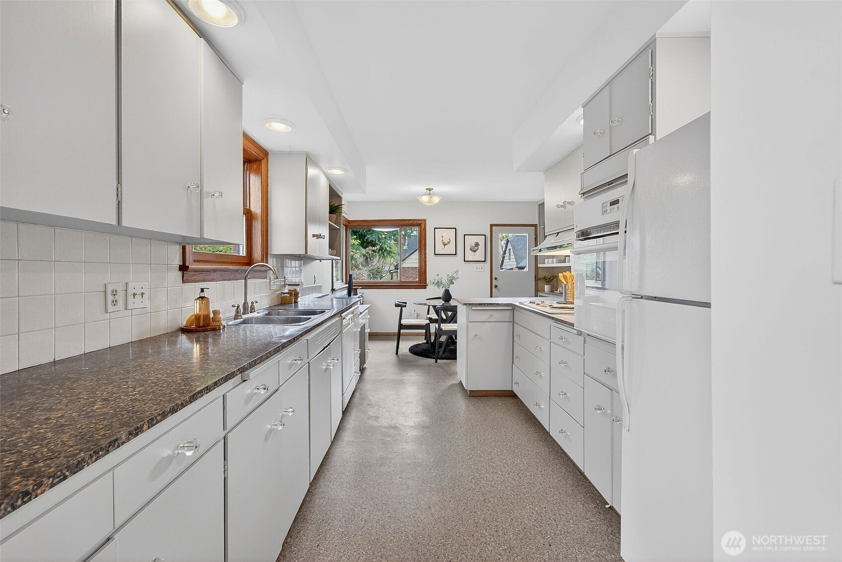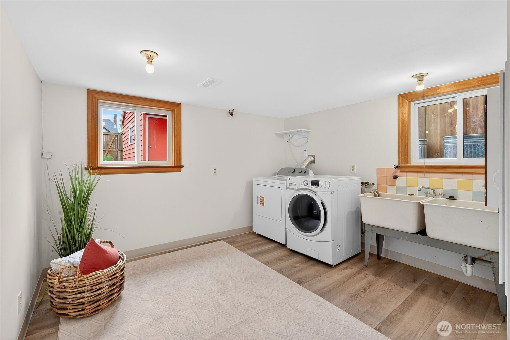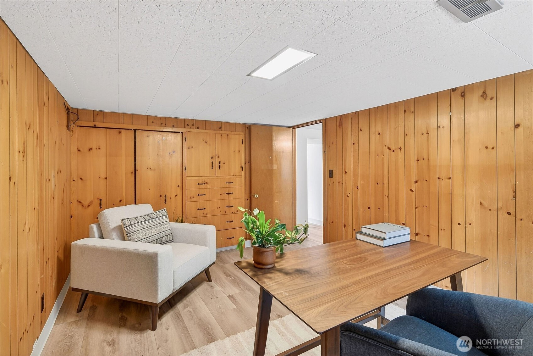 Timeless brick Tudor charm in the heart of Loyal Heights. This 4-bedroom home has been meticulously maintained and thoughtfully improved by the same owners for over a decade, with genuine pride poured into every corner. Inside, warm Carnival-painted walls and a glowing gas fireplace make every morning feel like an occasion. Fresh carpet throughout, two fully remodeled bathrooms, whole-house re-plumb, Andersen windows throughout, and a finished basement that truly delivers: new LVP flooring, a spacious rec room, and a flexible fourth bedroom perfect as a home office or guest suite. Outside, the craftsmanship continues. A metal roof, brick front wall, custom stonework side yard with drainage, and an 8-foot alley fence are just a few of the lasting investments made over the years. The backyard is a private oasis — a large patio ideal for entertainers and gardeners alike, complete with raised vegetable and herb planters already in place. There are homes that are maintained — and then there are homes that are truly loved. This is one of them. Nestled in one of northwest Seattle's most peaceful and well-established neighborhoods, just minutes from the bustle of downtown Ballard and the shores of Puget Sound. Golden Gardens Park, the Loyal Heights Community Center, and beloved local spots like Larsen's Bakery are all close at hand — walkable streets and a strong sense of community make this one of Seattle's most livable and loved corners of the city.