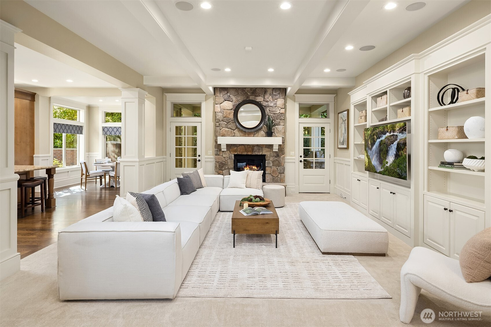 Tucked along a quiet, tree-lined street in Bellevue, this Worthington home evokes the effortless elegance of a Nantucket Coastal retreat. Classic shingle-style architecture, crisp trim, and balanced proportions create a warm, yet sophisticated presence, blending East Coast charm with modern Northwest living. Inside, light-filled interiors unfold with custom hardwoods, soft neutral tones and refined millwork throughout. The open concept main level is designed for both everyday living and elevated entertaing, anchored by a sun-drenched chef’s kitchen that flows seamlessly into expansive living and dining spaces. Large windows and glass doors invite natural light while connecting beautifully to the outdoor setting. Upstairs four serene bedroom suites offer privacy and comfort, including a luxurious primary retreat with spa-inspired bath and generous walk-in closet. Huge workout space, playroom (or 5th bedroom) and designated gift-wrapping area! The outdoor spaces complete the experience, offering a peaceful backdrop for entertaining or quiet moments, with room to dine, lounge, unwind and even practice your golf game. Three-car garage with big mudroom and utility room. Unmatched privacy and easy access to downtown, the waterfront, parks, and top-tier schools in the Bellevue School District (Medina Elementary). This home presents a rare opportunity to enjoy coastal-inspired living in one of the Eastside’s most sought after neighborhoods.