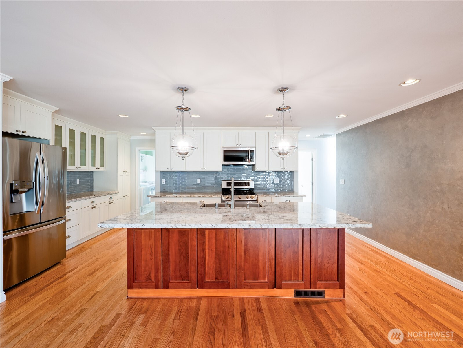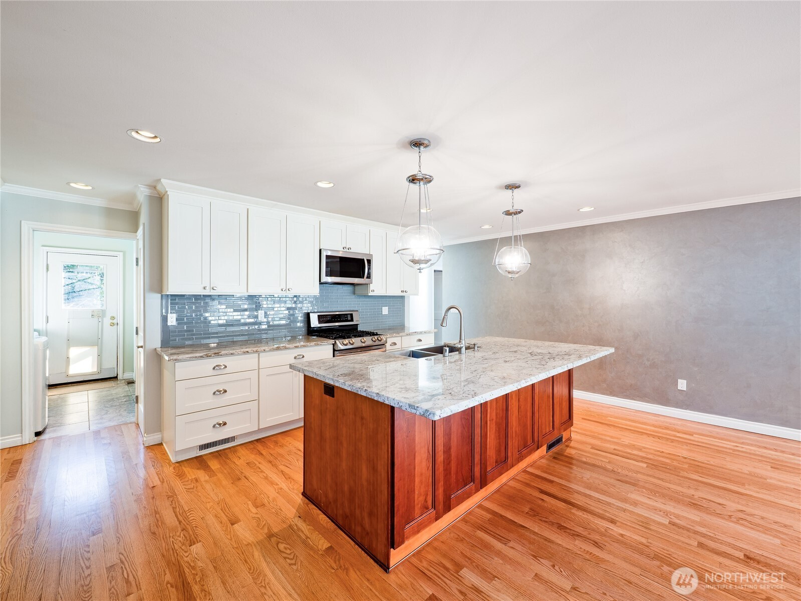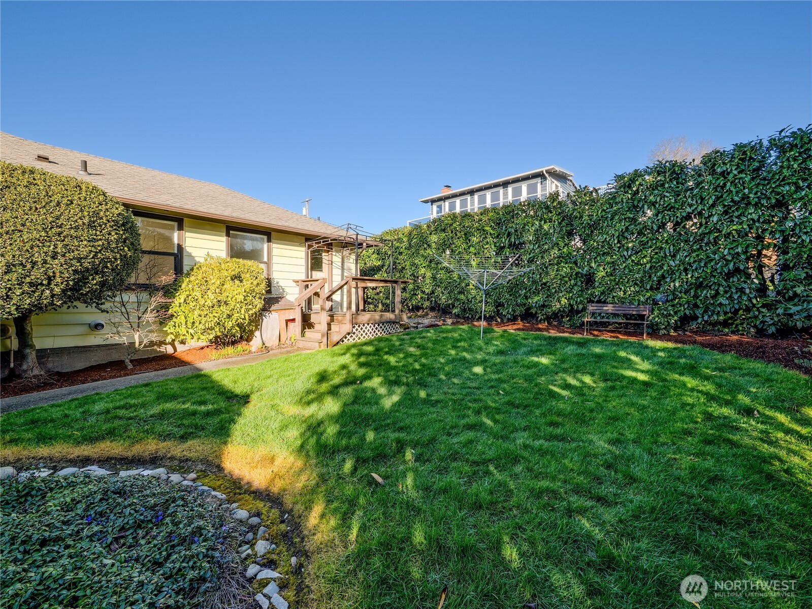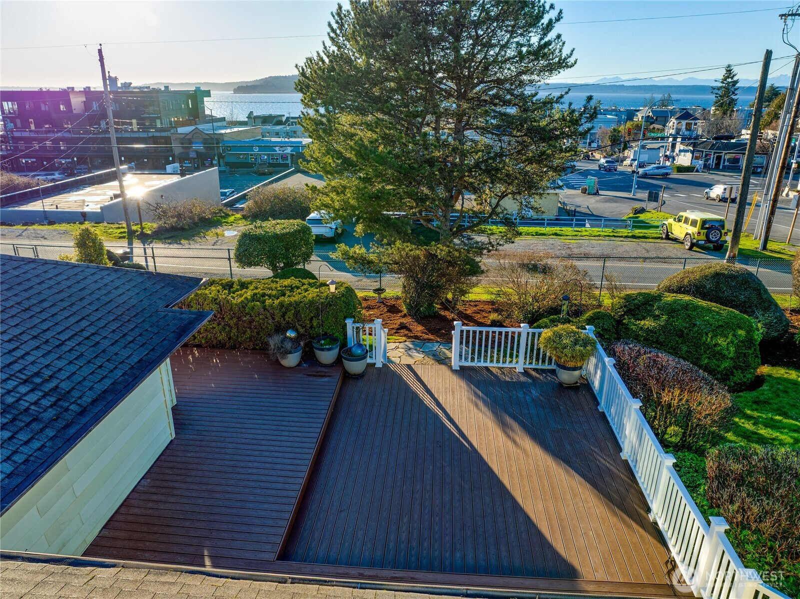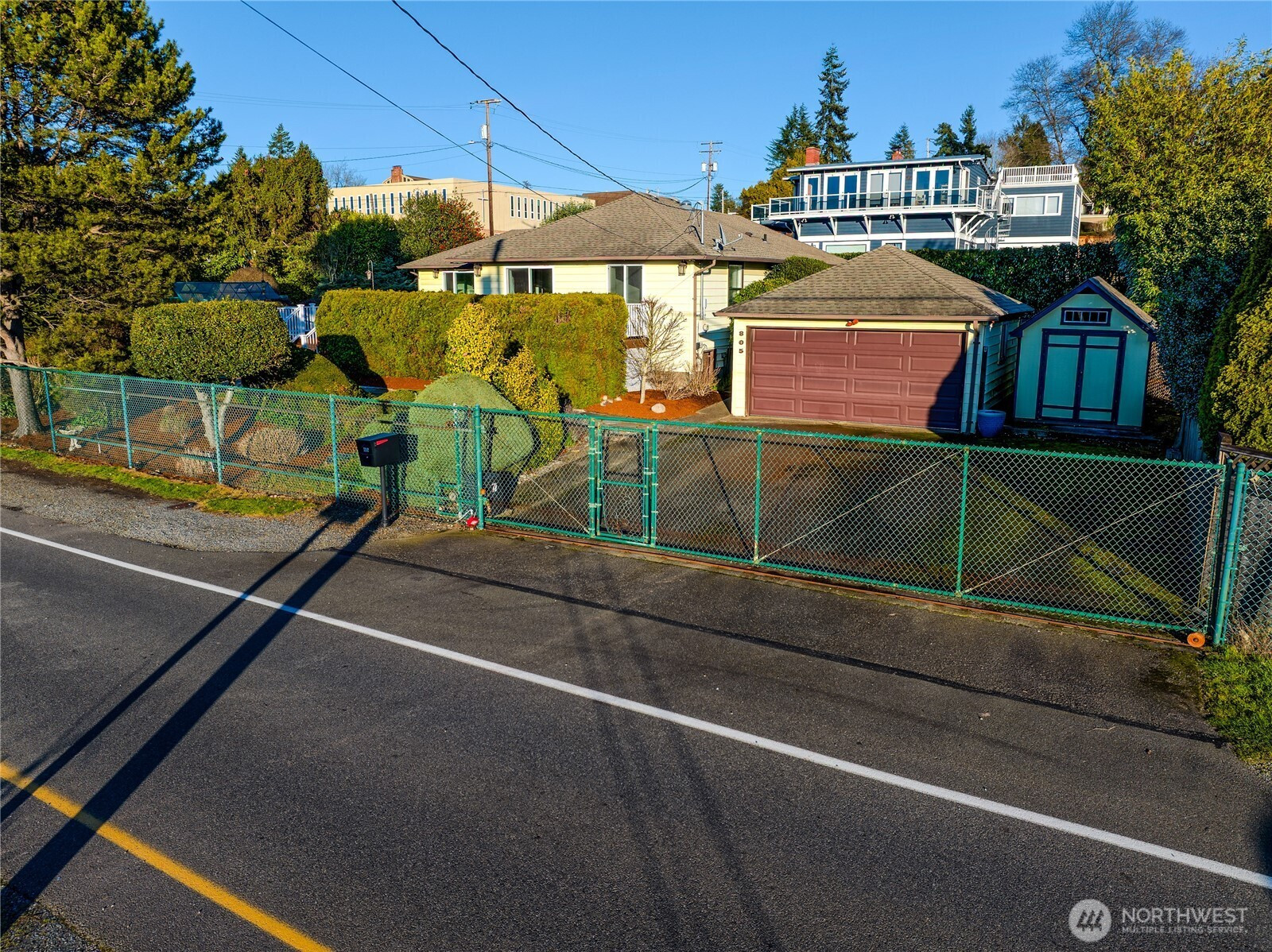 This beautifully updated single-story home blends comfort, charm, and location. Start your mornings on the spacious deck taking in sweeping views of Puget Sound and the Olympic Mountains, or unwind there in the evening as the sun sets. The thoughtfully maintained garden with a functional greenhouse create a peaceful outdoor space you can enjoy year-round. Inside, warm hardwood floors and a bright, open layout create an easy flow between the large living area and the updated kitchen, making the home feel both welcoming and practical for everyday living or hosting friends. The generous primary suite offers a quiet retreat with ample closet space and a private bath. Outside, the fully fenced yard with an automatic gate adds privacy, while the detached garage and shed provide valuable storage and workspace. This home offers a rare balance - a tranquil garden setting just steps from downtown Des Moines shops, restaurants, and the marina.