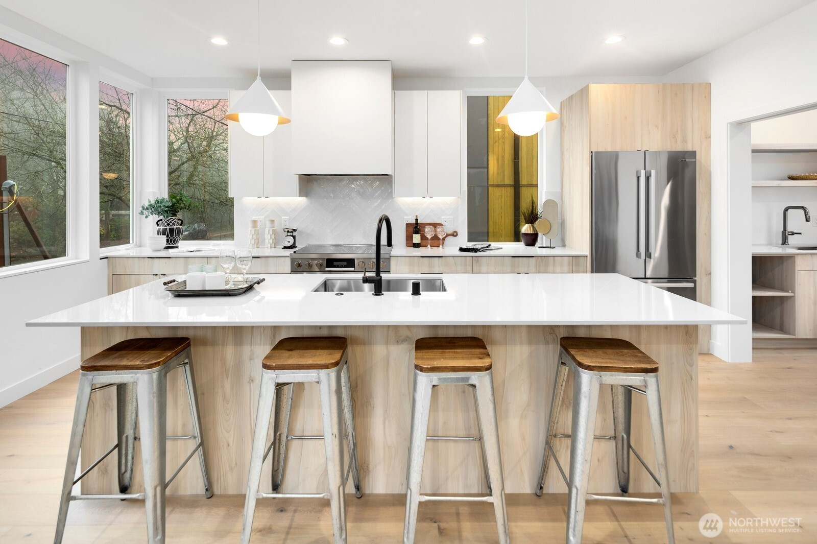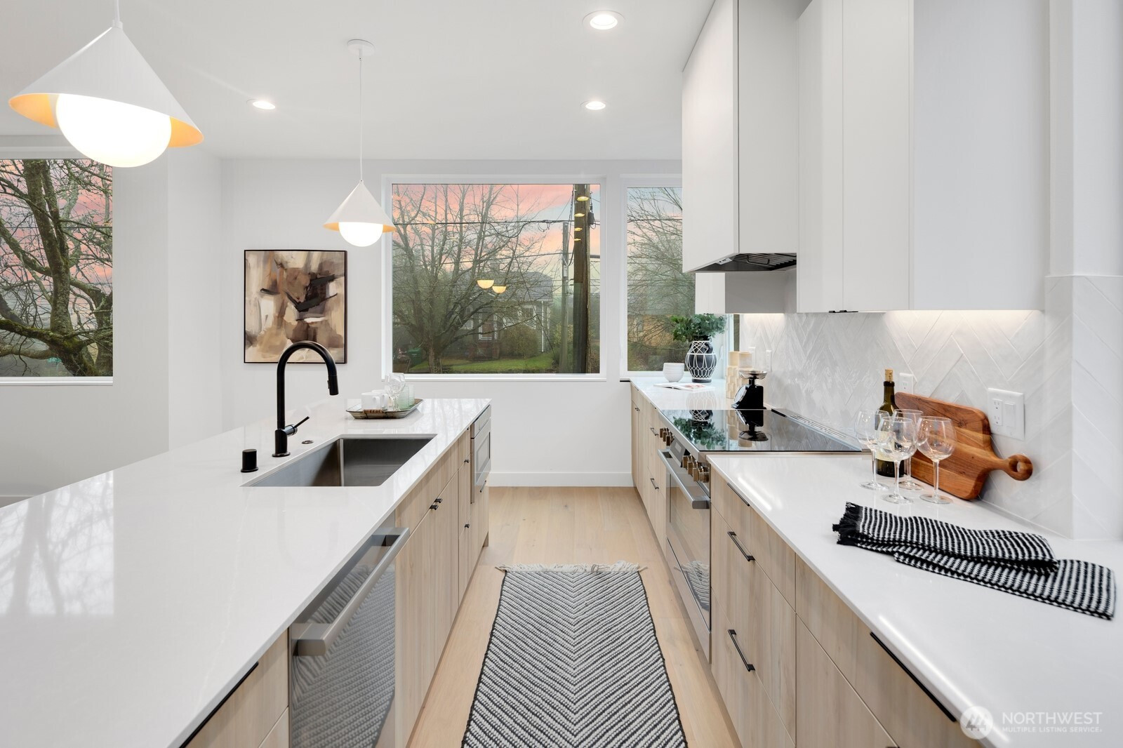 (503) 893-8874Modern living meets refined craftsmanship in this boutique 3-home community in the heart of Madrona—steps to local shops, parks and cafés. 806 offers four spacious bedrooms or use the lower level as a flex space.Your primary suite features a walk-in closet, dual vanity and an elegant tiled bath. The kitchen showcases a substantial island, high-end Bosch appliances and a butler’s pantry. The attached garage is EV-ready. Enjoy outdoor space in the fully-fenced front yard or atop the roof deck framing Lake Washington and Cascade Mountain views. Elevated details include radiant-heated bathroom flooring, recessed mini-splits, and ambient accent lighting throughout.