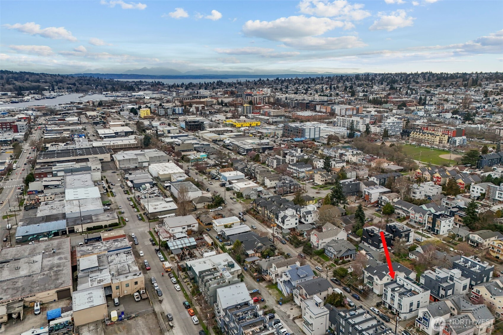 A light-filled Ballard retreat built 4 Star Green by Steele Homes with soaring vaulted ceilings & incredible indoor-outdoor living. The dramatic ceiling height & expansive windows flood the home with natural light, creating an airy, open feel throughout. The main floor features oak hardwood floors throughout the living & dining adjacent to the sleek, modern kitchen with ample cabinetry, pantry, & generous prep space. The second floor includes an oversized bedroom, full bath, & bonus space for a home gym or office. Designed for both comfort & function, the entire primary suite occupies its own level, offering true privacy. Enjoy a spacious bedroom, spa-inspired bath, & two walk-in closets, a rare & luxurious find. Entertain effortlessly with two rooftop decks, perfect for sunset dinners, morning coffee, or hosting friends under the stars. Whether you're relaxing or gathering, these outdoor spaces elevate everyday living. All of this in an unbeatable Ballard location with an off street, reserved parking spot; just moments to vibrant restaurants, breweries, cafés, parks, & everything this sought-after neighborhood has to offer. No rental restrictions.