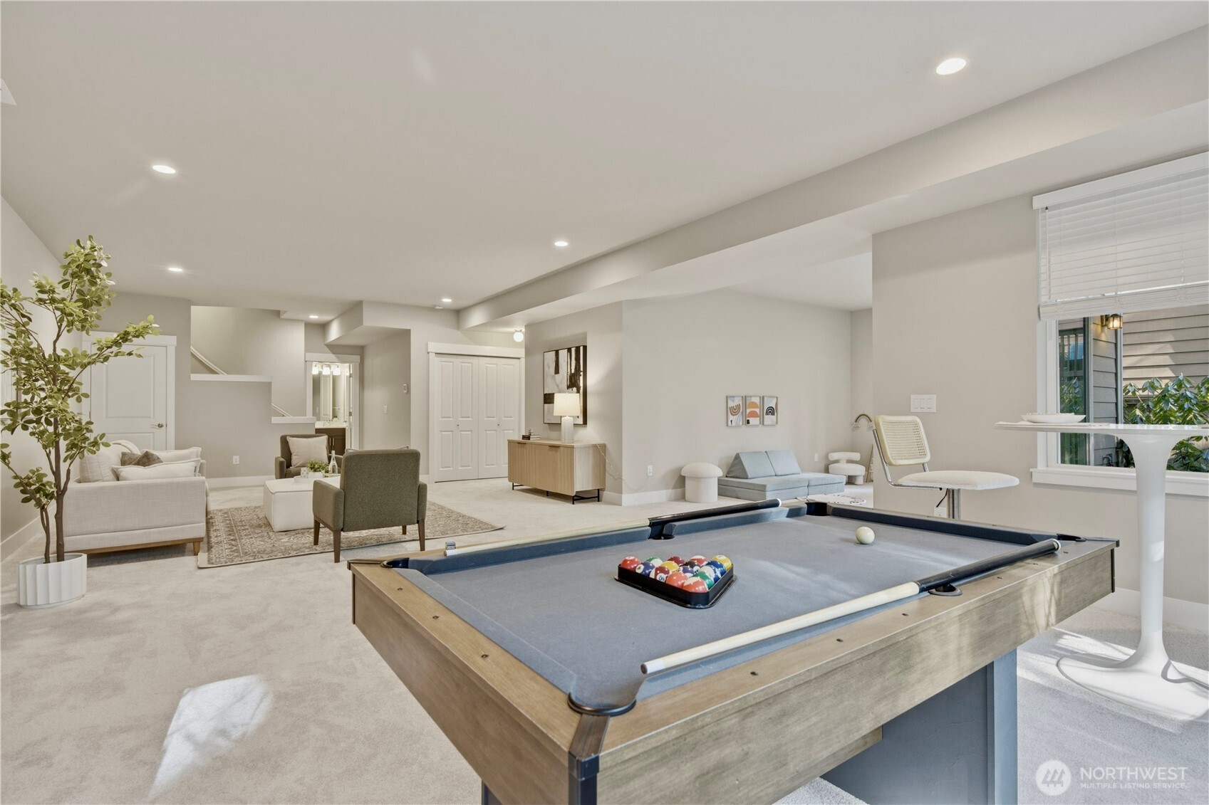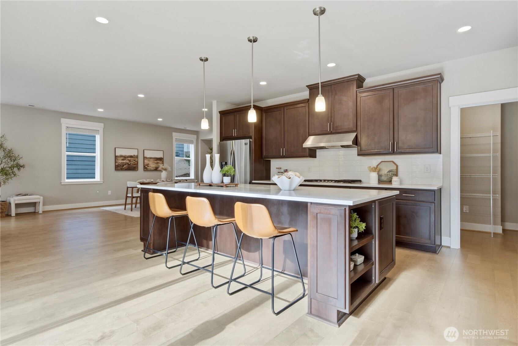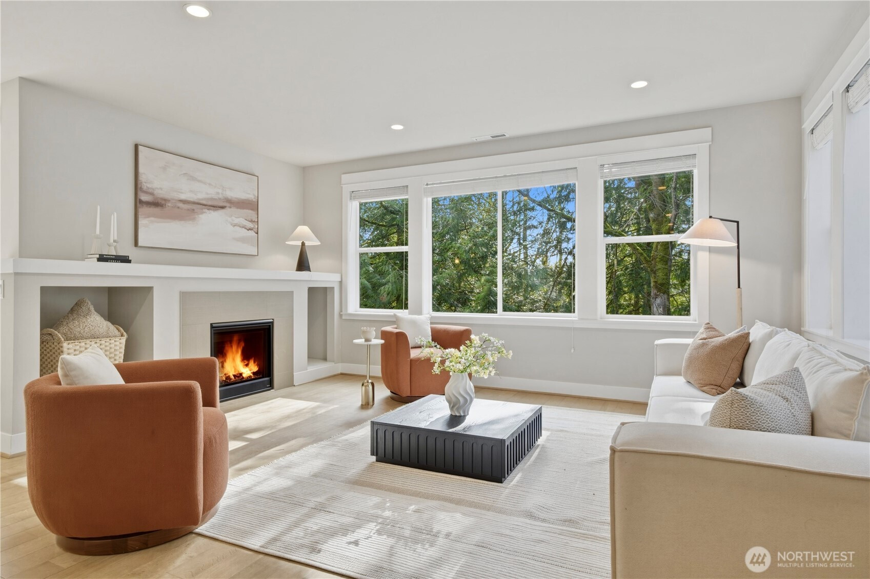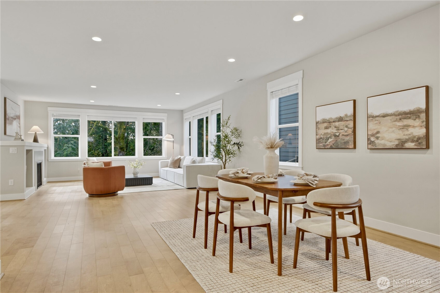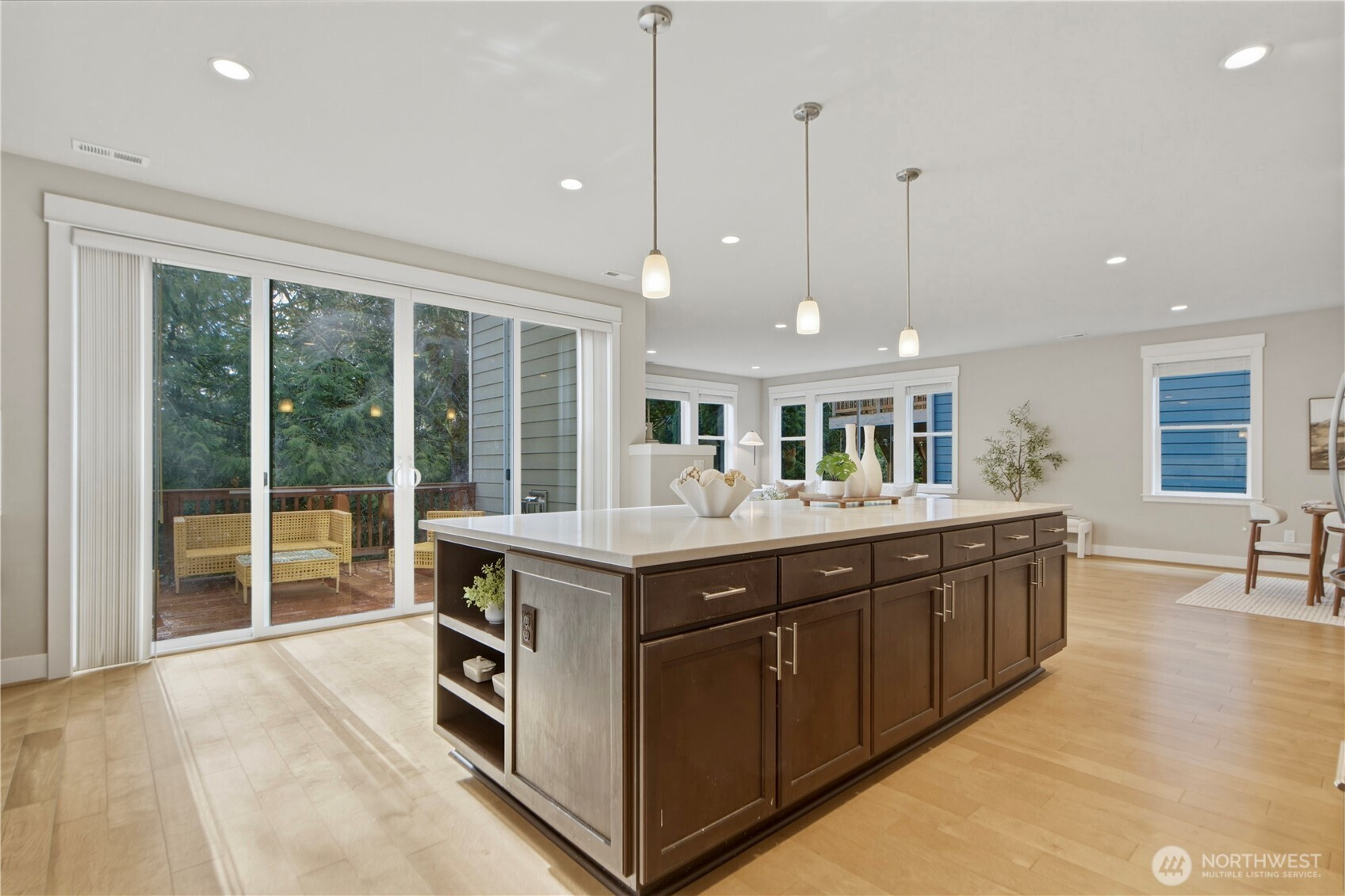 Built in 2018 by renowned Toll Brothers, this north-facing home is filled with natural light and timeless architectural details, blending modern elegance with everyday functionality. The main level showcases hardwood flooring and a seamless open-concept layout, creating an airy, connected living space centered around a chef’s kitchen with an oversized island, quartz countertops, custom cabinetry, and premium stainless-steel appliances — ideal for both entertaining and daily living. The kitchen opens to a spacious deck, perfect for morning coffee or summer BBQ gatherings. Upstairs, the expansive primary suite features a spa-inspired bath and a generous walk-in closet, complemented by three additional bedrooms and a full bath for flexibility. The lower level offers a large bonus room and a private bedroom with an en-suite bath, ideal for guests or multi-generational living. Backing to a lush greenbelt, the peaceful backyard provides privacy and serene natural views. Located within walking distance to Trader Joe’s, Safeway, and local dining, and served by the highly rated Lake Washington School District — this is a home where comfort, privacy, and convenience truly come together.