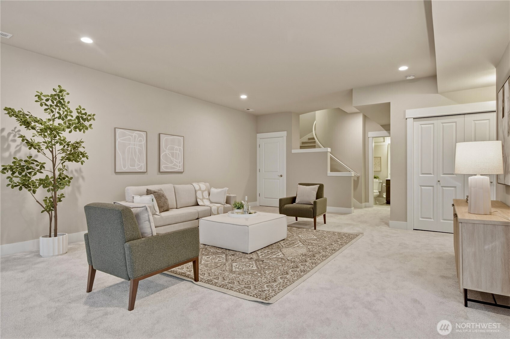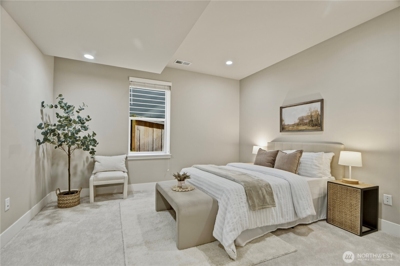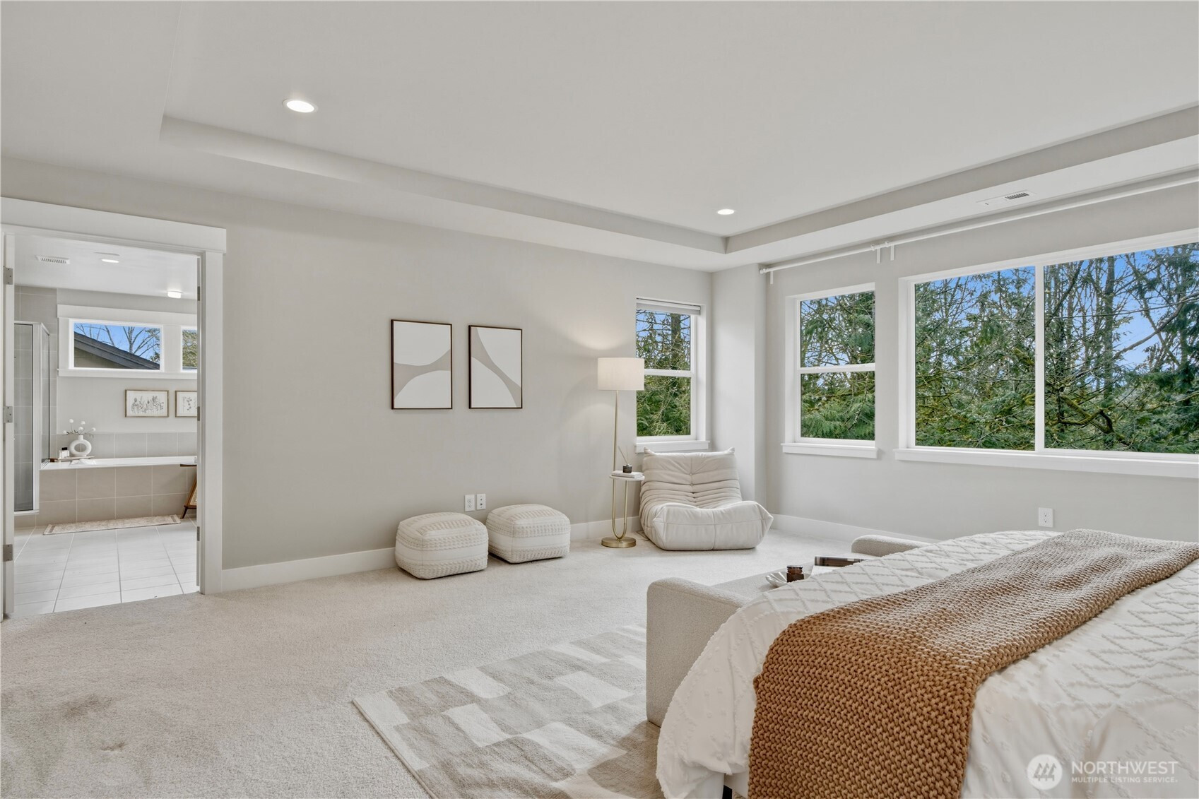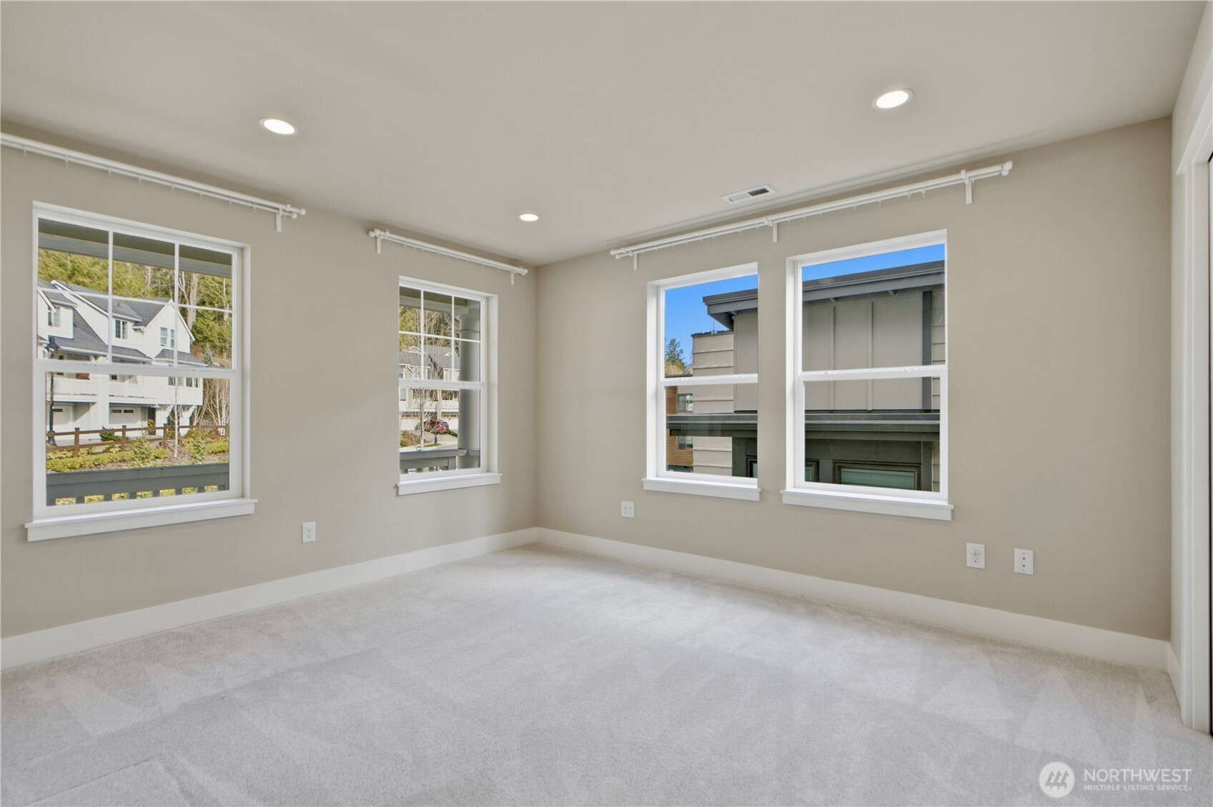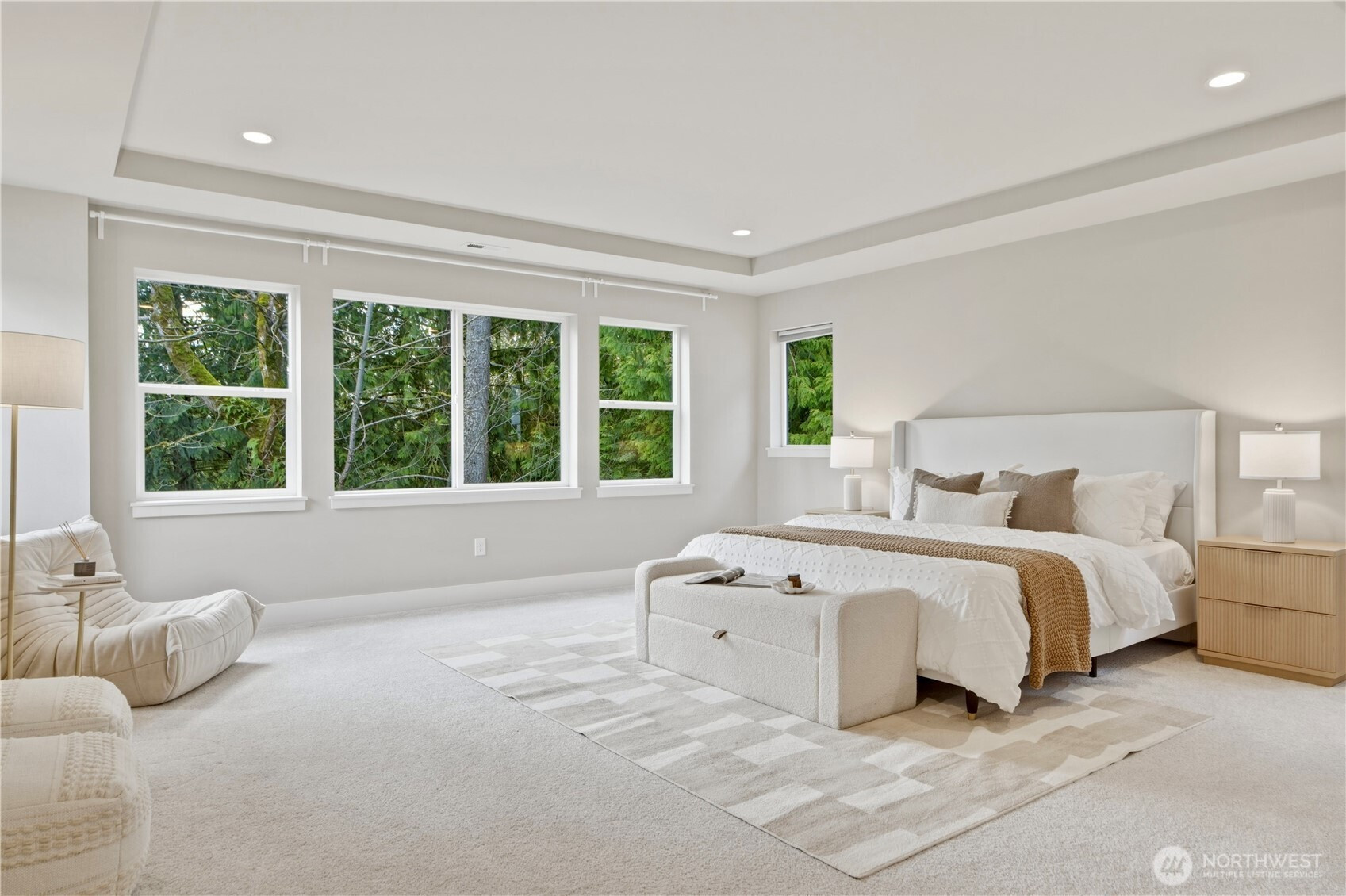 Built in 2018 by renowned Toll Brothers, this north-facing home is filled with natural light and timeless architectural details, blending modern elegance with everyday functionality. The main level showcases hardwood flooring and a seamless open-concept layout, creating an airy, connected living space centered around a chef’s kitchen with an oversized island, quartz countertops, custom cabinetry, and premium stainless-steel appliances — ideal for both entertaining and daily living. The kitchen opens to a spacious deck, perfect for morning coffee or summer BBQ gatherings. Upstairs, the expansive primary suite features a spa-inspired bath and a generous walk-in closet, complemented by three additional bedrooms and a full bath for flexibility. The lower level offers a large bonus room and a private bedroom with an en-suite bath, ideal for guests or multi-generational living. Backing to a lush greenbelt, the peaceful backyard provides privacy and serene natural views. Located within walking distance to Trader Joe’s, Safeway, and local dining, and served by the highly rated Lake Washington School District — this is a home where comfort, privacy, and convenience truly come together.