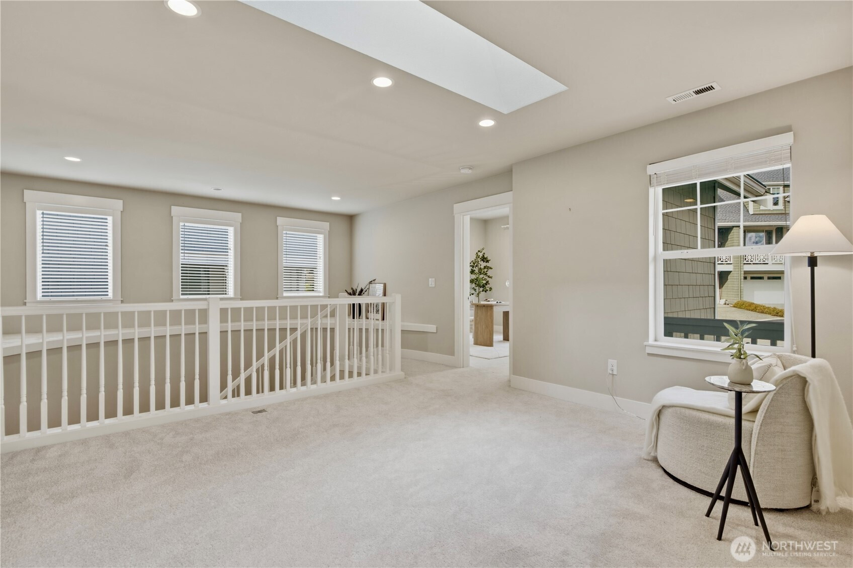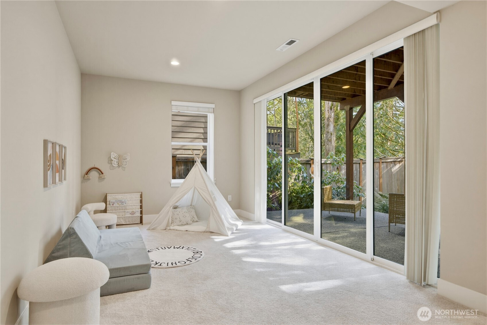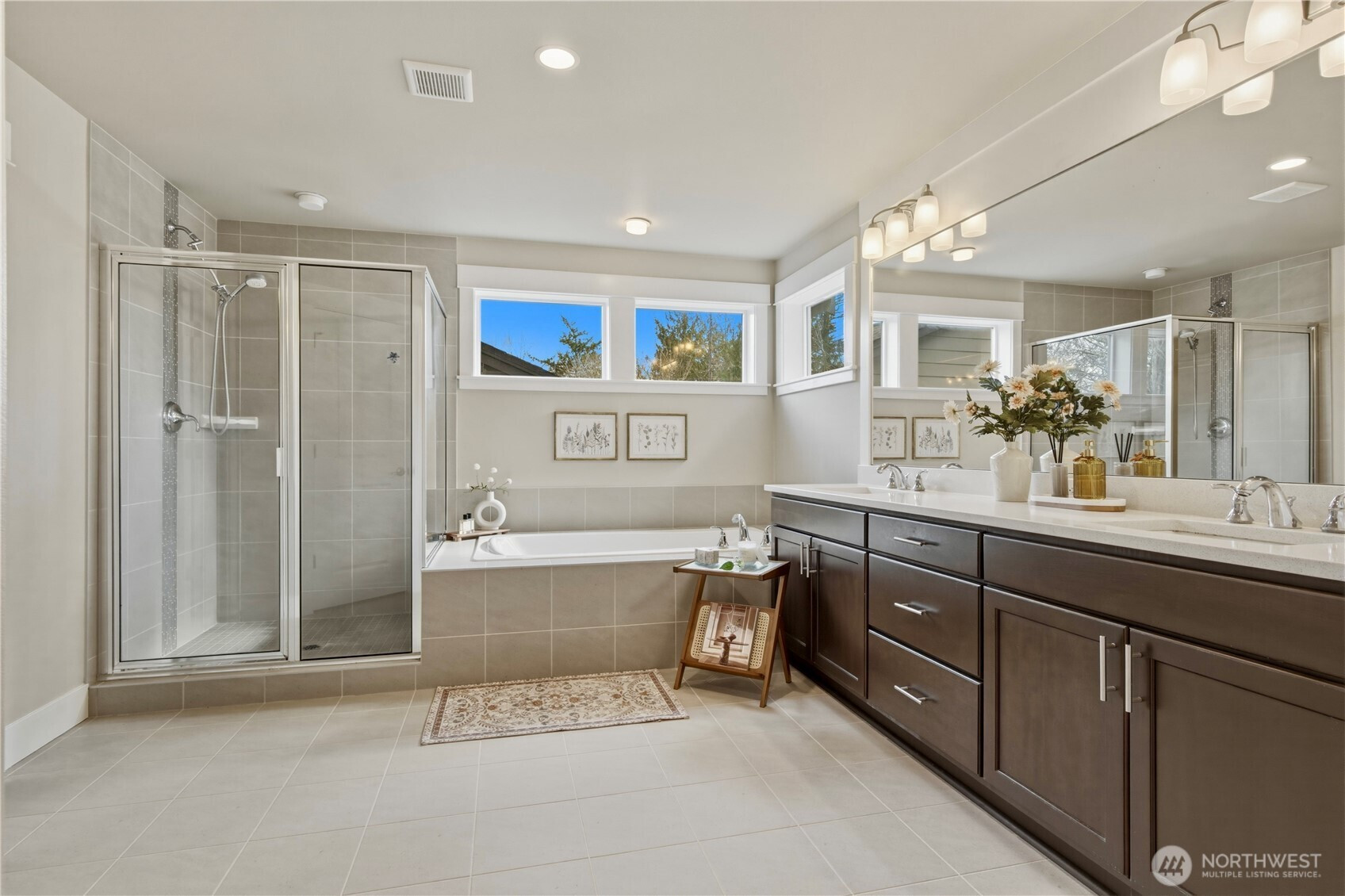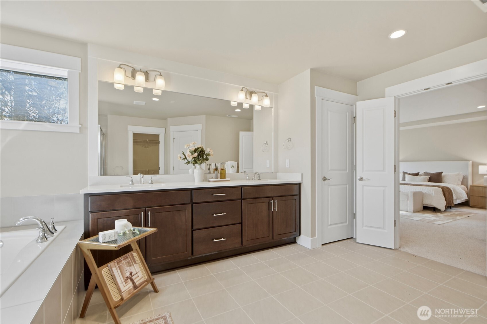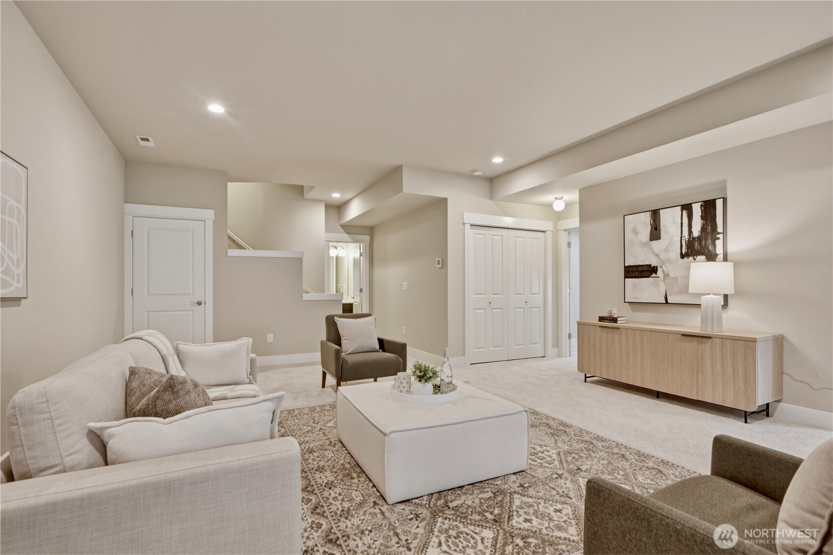 Built in 2018 by renowned Toll Brothers, this north-facing home is filled with natural light and timeless architectural details, blending modern elegance with everyday functionality. The main level showcases hardwood flooring and a seamless open-concept layout, creating an airy, connected living space centered around a chef’s kitchen with an oversized island, quartz countertops, custom cabinetry, and premium stainless-steel appliances — ideal for both entertaining and daily living. The kitchen opens to a spacious deck, perfect for morning coffee or summer BBQ gatherings. Upstairs, the expansive primary suite features a spa-inspired bath and a generous walk-in closet, complemented by three additional bedrooms and a full bath for flexibility. The lower level offers a large bonus room and a private bedroom with an en-suite bath, ideal for guests or multi-generational living. Backing to a lush greenbelt, the peaceful backyard provides privacy and serene natural views. Located within walking distance to Trader Joe’s, Safeway, and local dining, and served by the highly rated Lake Washington School District — this is a home where comfort, privacy, and convenience truly come together.