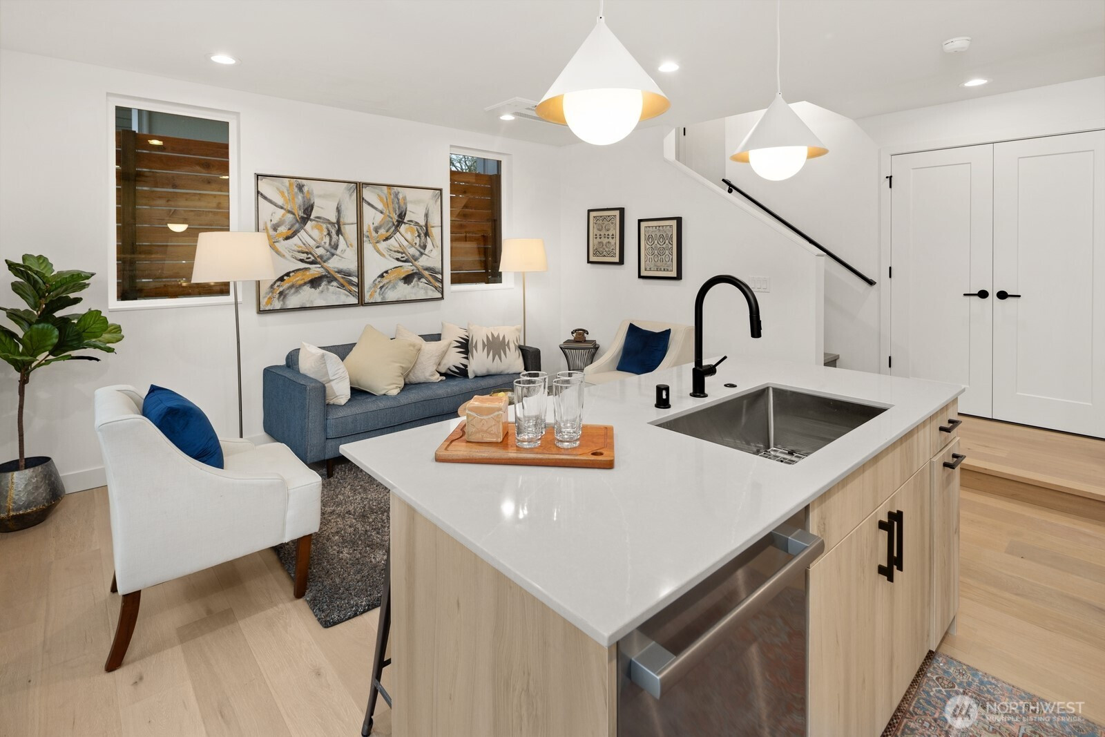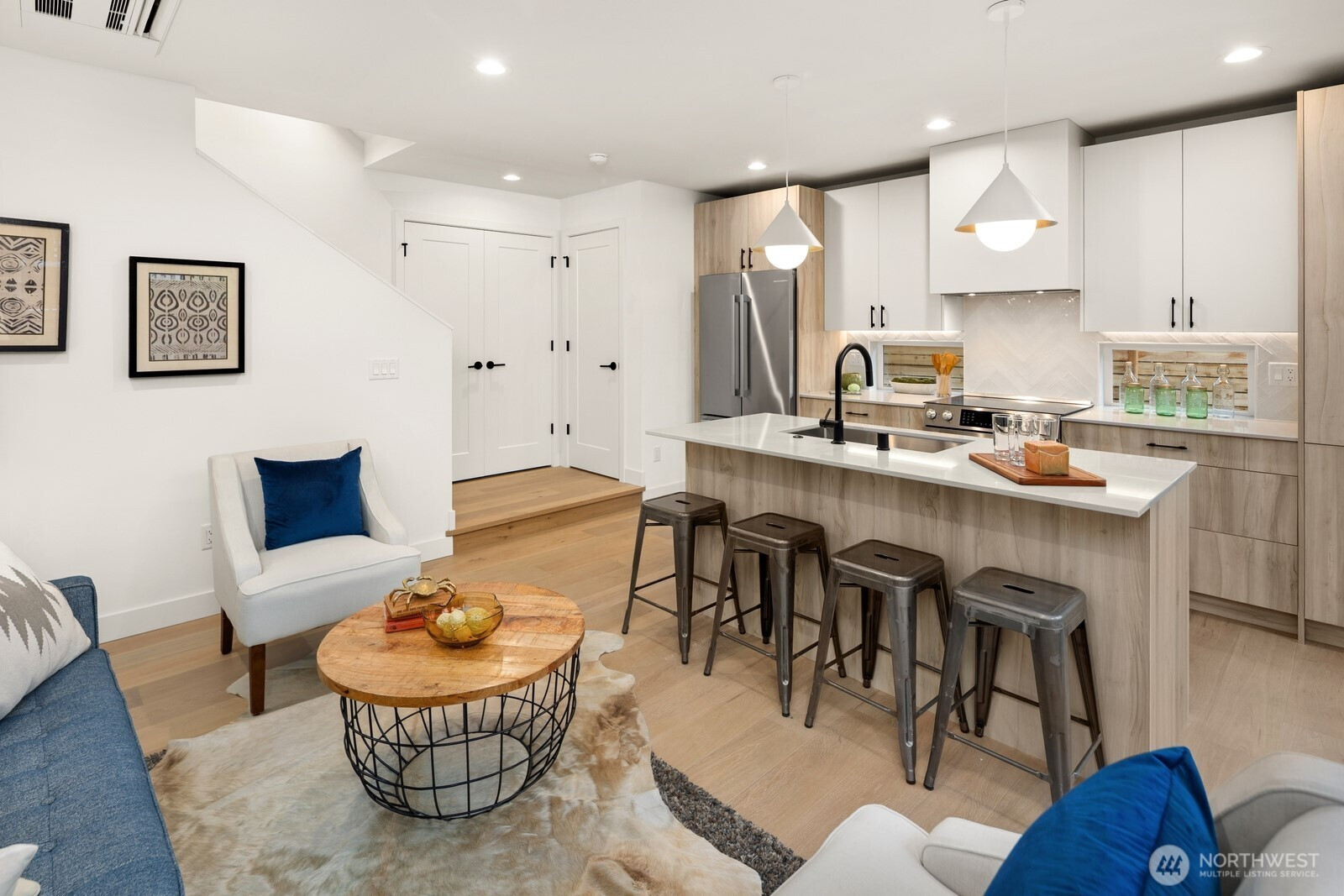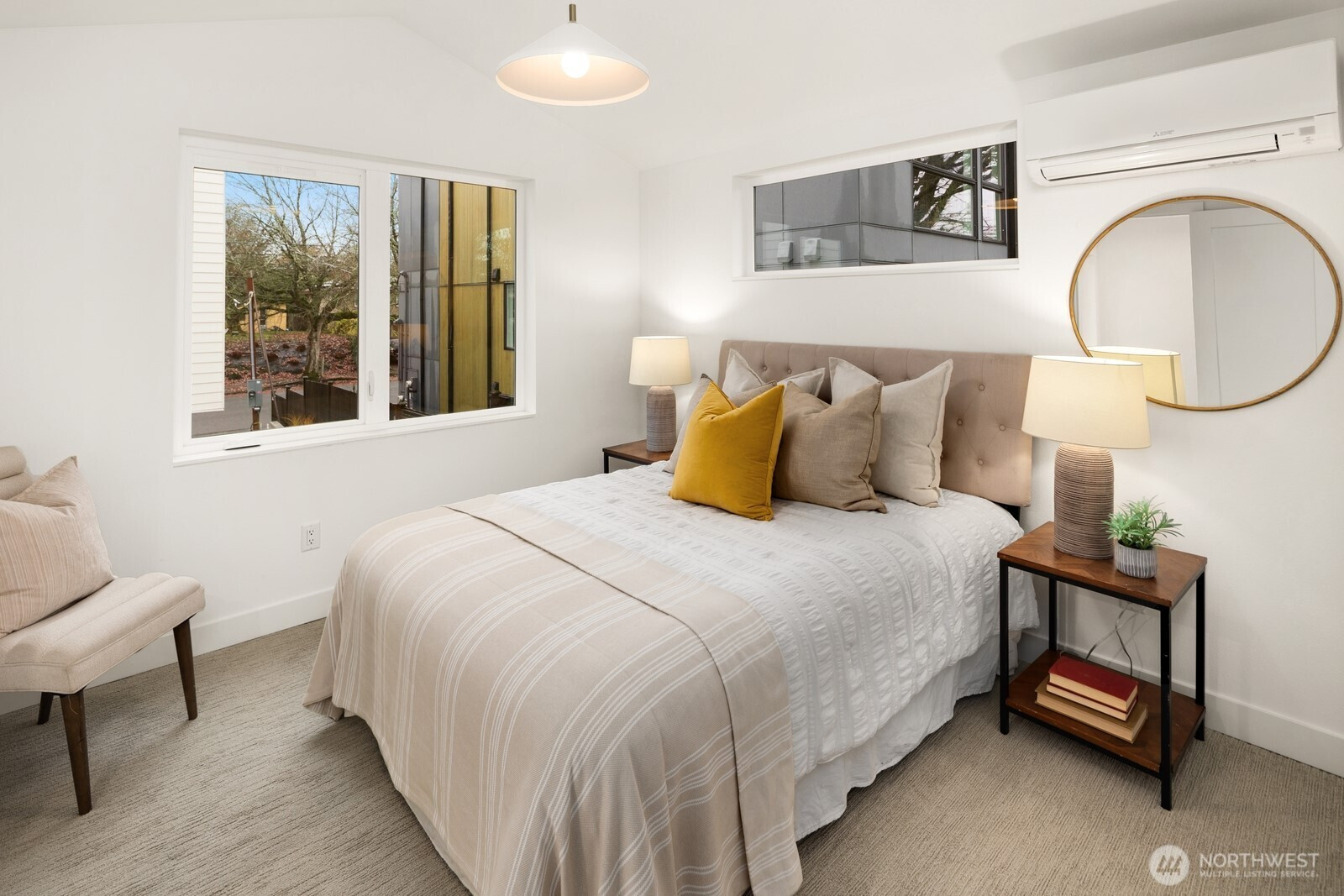 Modern style and elevated craftsmanship define this boutique 3-home community in the heart of Madrona—steps from neighborhood cafés, parks and shops. 808 is a freestanding cottage home with a distinctive 2-bedroom layout and targeted Built Green certification. Enter the home then step down into the Living/Kitchen/Dining. The kitchen offers an island, stainless steel appliances and a slider to the fully fenced, level yard. Going up at the entry takes you to your primary suite which includes a walk-in closet and an elegant tiled bath. Another half level up is a second en-suite bedroom. Garage is EV-ready and fully finished. Elevated features include radiant-heated bathroom floors, recessed mini-splits and ambient accent lighting throughout.