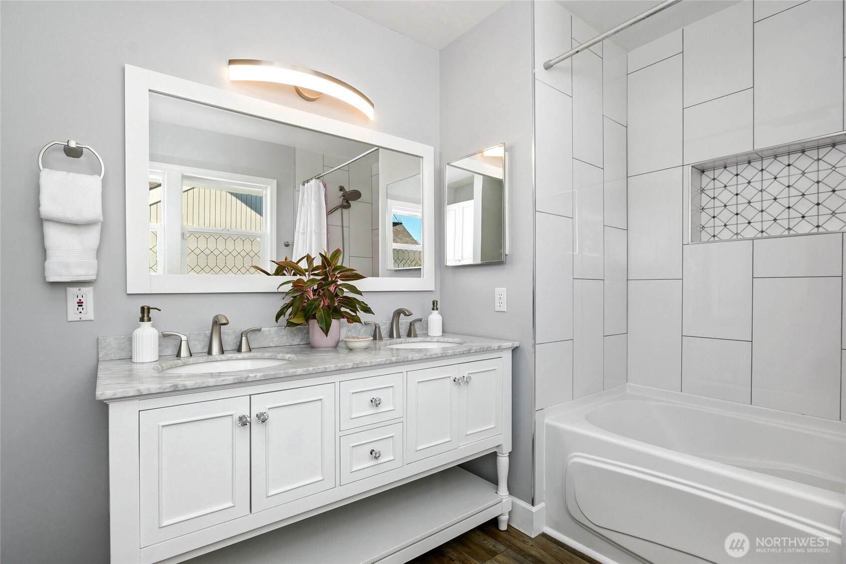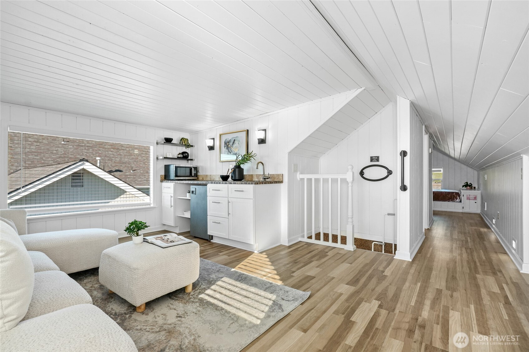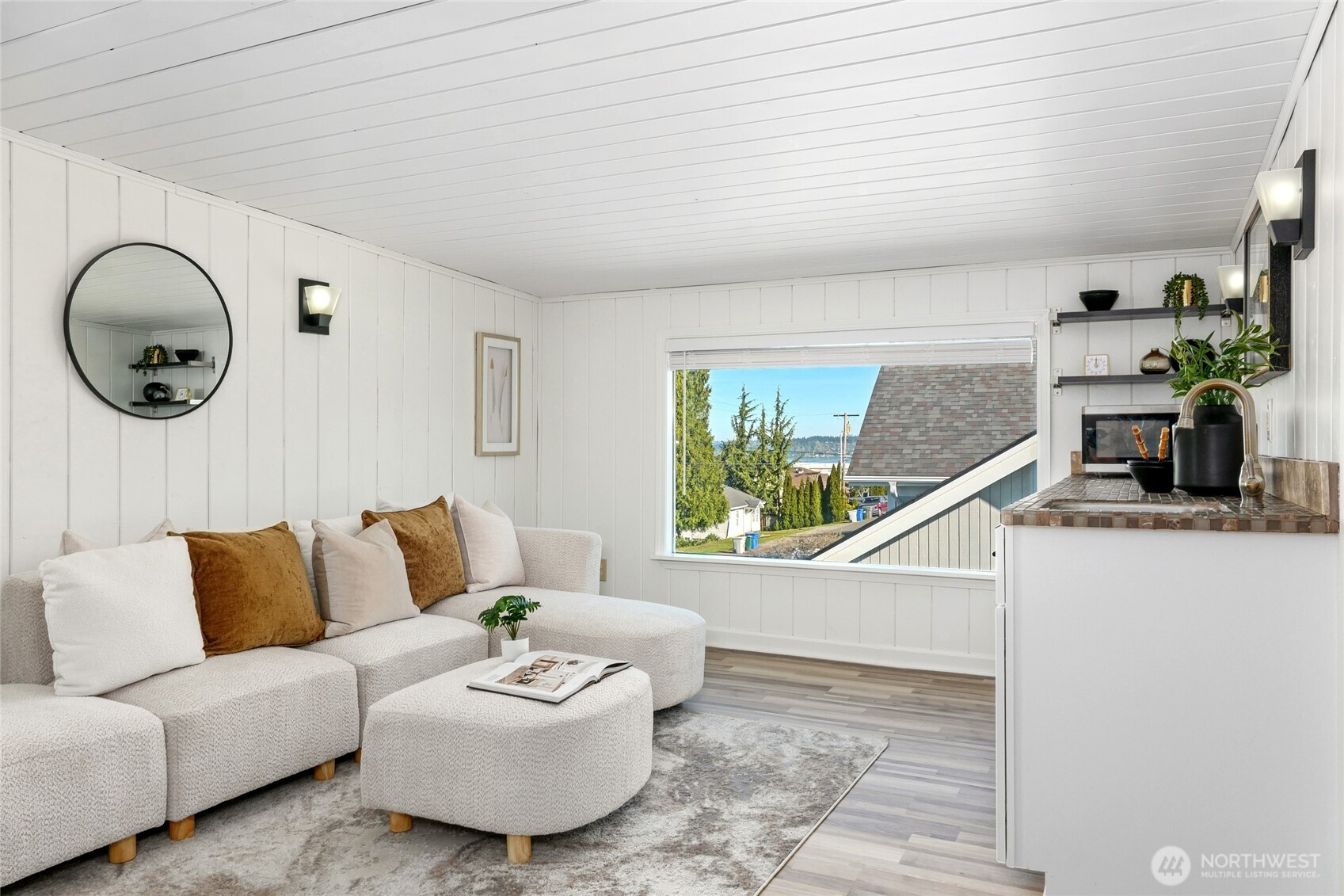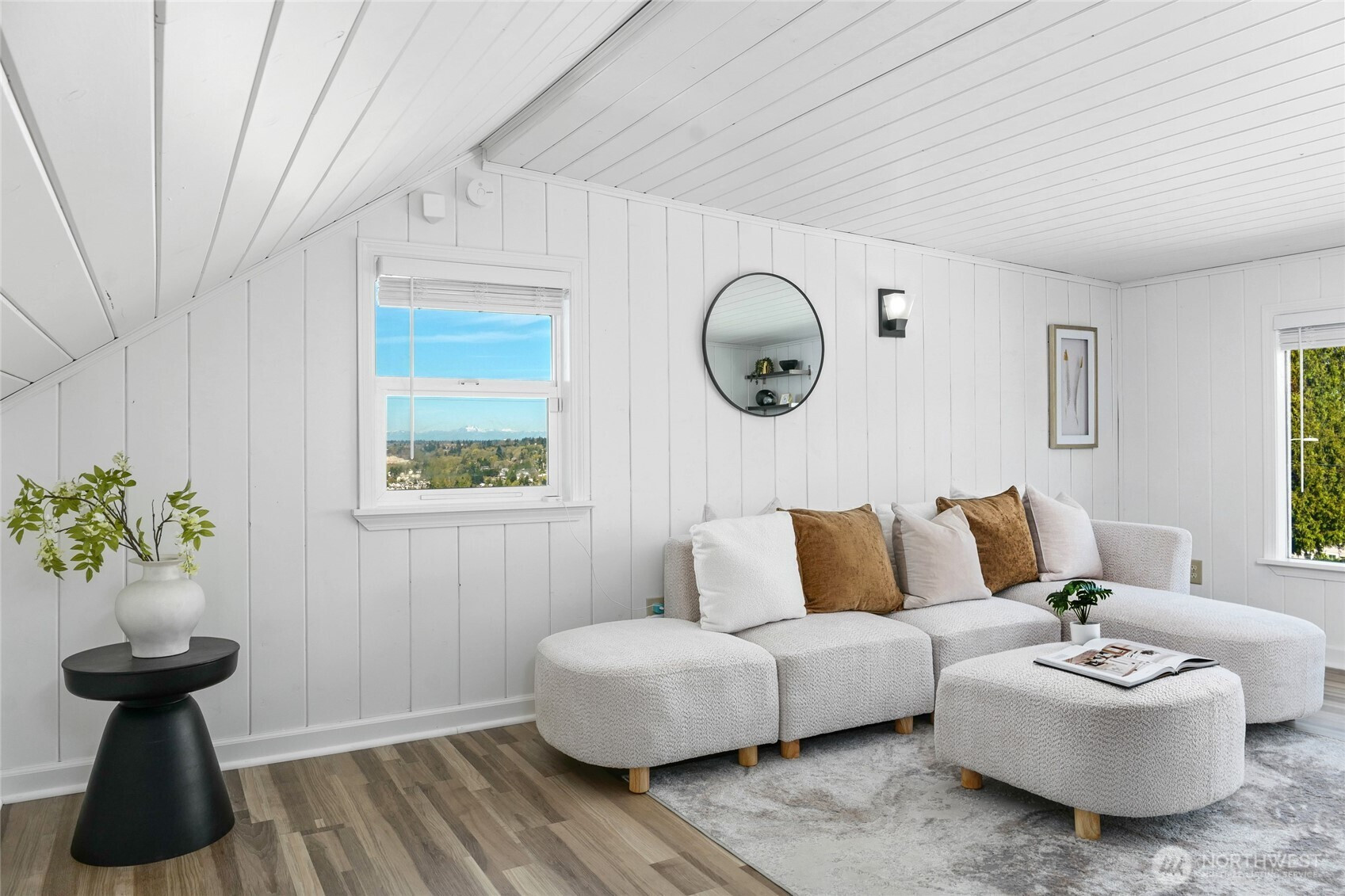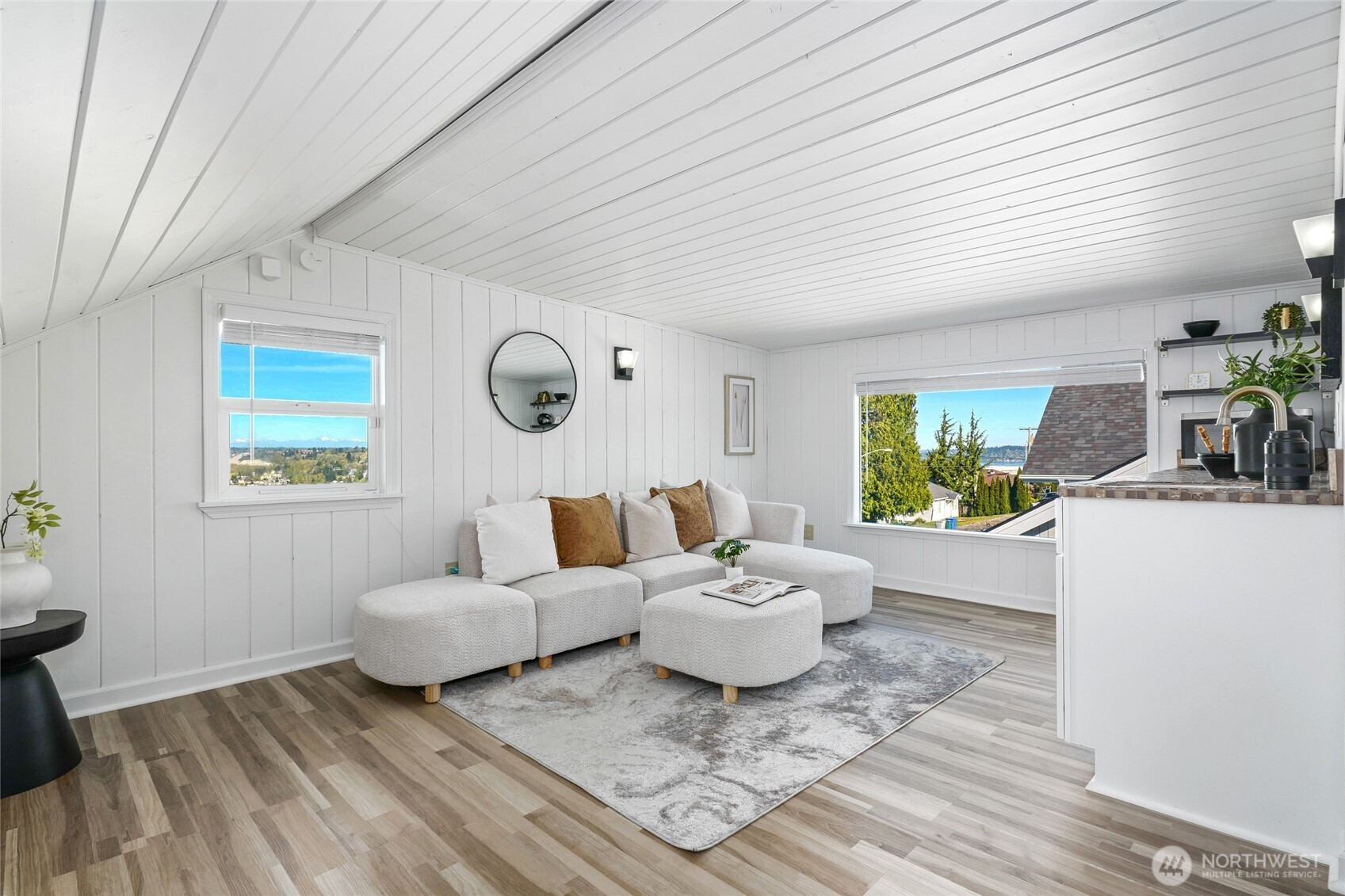 Rare, stunning view Craftsman in sought-after Historic Renton Hill—Enjoy panoramic Olympic Mtn & valley views from both levels, with Lake WA & Seattle skyline visible upstairs. Fully updated, blending luxury modern upgrades with timeless charm, offering 3BD/2BD, 2 living rooms, 1,780 SF living space, 1200 sq ft unfinished space, surrounded by park-like grounds, on a 6100 sq ft lot. Very convenient commute to Microsoft, Amazon, and Boeing. Interior:Quartz counters (kitchen, laundry, main bath), new cabinetry, paint, fixtures, lighting & cordless blinds, new flooring throughout. Updated kitchen w/ new stove & microwave + new W/D. Spa-like primary bath w/ tile & dual-sink granite vanity. Spiral staircase leads to upper-level retreat w/ wet bar, living area, BD/BA & oversized picture windows capturing the views. Unfinished basement w/ separate entry offers ADU/rental, guest suite, or office potential. Exterior: New view decks, terraced yard w/ patio, retaining walls & lush landscaping. Edible & fragrant garden w/ fruit trees, berries, herbs & seasonal blooms. Systems: Updated siding, windows, doors, 2 electrical panels, plumbing (PEX/copper), gutters, French drain, sprinkler system, water heater & lighting. Survey available. Parking: 4-car rear pad (alley access) designed for future 2-story garage + front parking. Location: Quiet, tree-lined enclave of classic homes, 3 blocks from Philip Arnold park w/ basketball, picnic areas, tennis courts, trails & playfields.