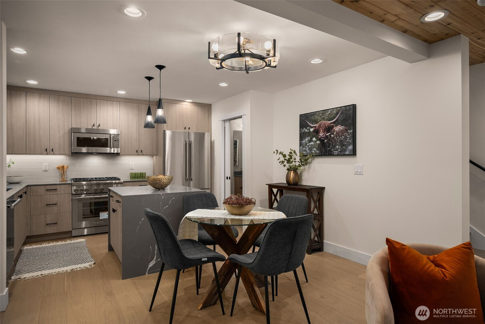 Welcome to Copper Queen, a modern new home on Queen Anne’s west slope built by Revolution Custom Builders. The main level features an open living/dining area and a stylish kitchen with quartz counters, a large island, premium stainless appliances, and ample storage. An oversized EV-ready garage. Upstairs, the spacious primary suite includes a walk-in closet & double-vanity bath. 2 additional bedrooms, a full bath, and a laundry room with stacked washer and dryer. Fully fenced yard and patio with an outdoor gas fireplace. Set back from the street with a private entry path, this home offers quiet living just moments from parks, dining, transit, & all Queen Anne amenities. A perfect blend of comfort, efficiency, & premier location.