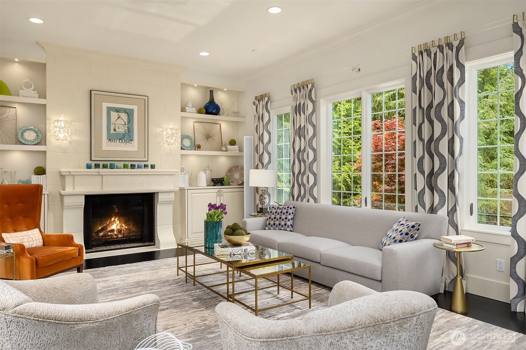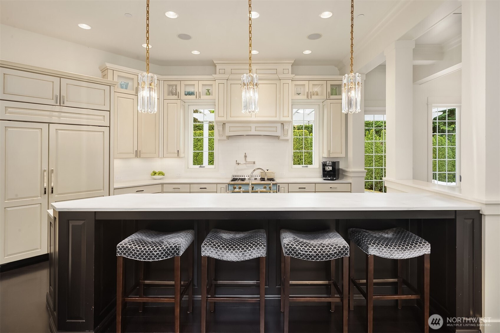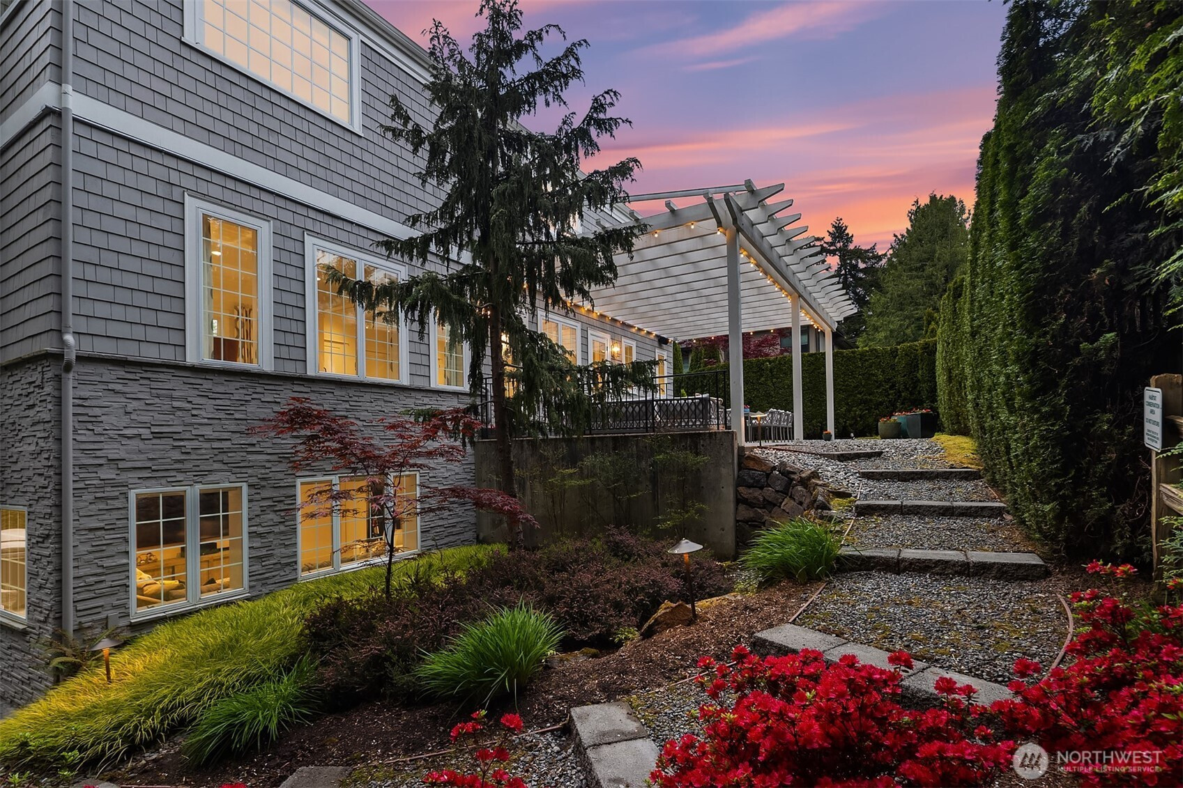Medina luxury redefined—privately nestled along a tranquil creek in one of the Northwest’s most prestigious enclaves. This exceptional residence completed in 2011 showcases an expansive Great Room design with a seamless flow, refined architectural detail, and abundant natural light—ideal for elevated entertaining and everyday living. A true chef’s kitchen features a coveted La Cornue range, exquisite Carrera marble surfaces, bespoke cabinetry, and professional grade appliances—both a statement and a centerpiece. Upstairs, four generously sized bedrooms each offer remodeled en suite baths showcasing designer marble tile, Jonathan Pauls cabinetry, premium fixtures, and impeccable craftsmanship. The primary suite is a serene retreat in itself, complete with a spa-inspired marble luxury bath, fireplaces, and dual walk-in closets. The versatile lower level includes a spacious family room, Definitive designed media room, hobby space, and flex room with bath—perfect for guests, wellness, or work-from-home needs. The outdoor living is equally compelling with a trellis-style patio, electric awnings and calming presence of the creek create a rare sense of seclusion all within walking distance to Medina waterfront parks & Top-tier recognized schools. Within Minutes to Bellevue, luxury shopping centralized, or Tee-off/swim laps at Overlake Golf & Country Club. A distinguished offering for a discerning Buyer who requires the finer touches in a location defined by prestige and discretion.