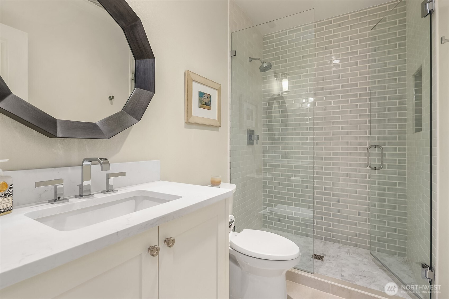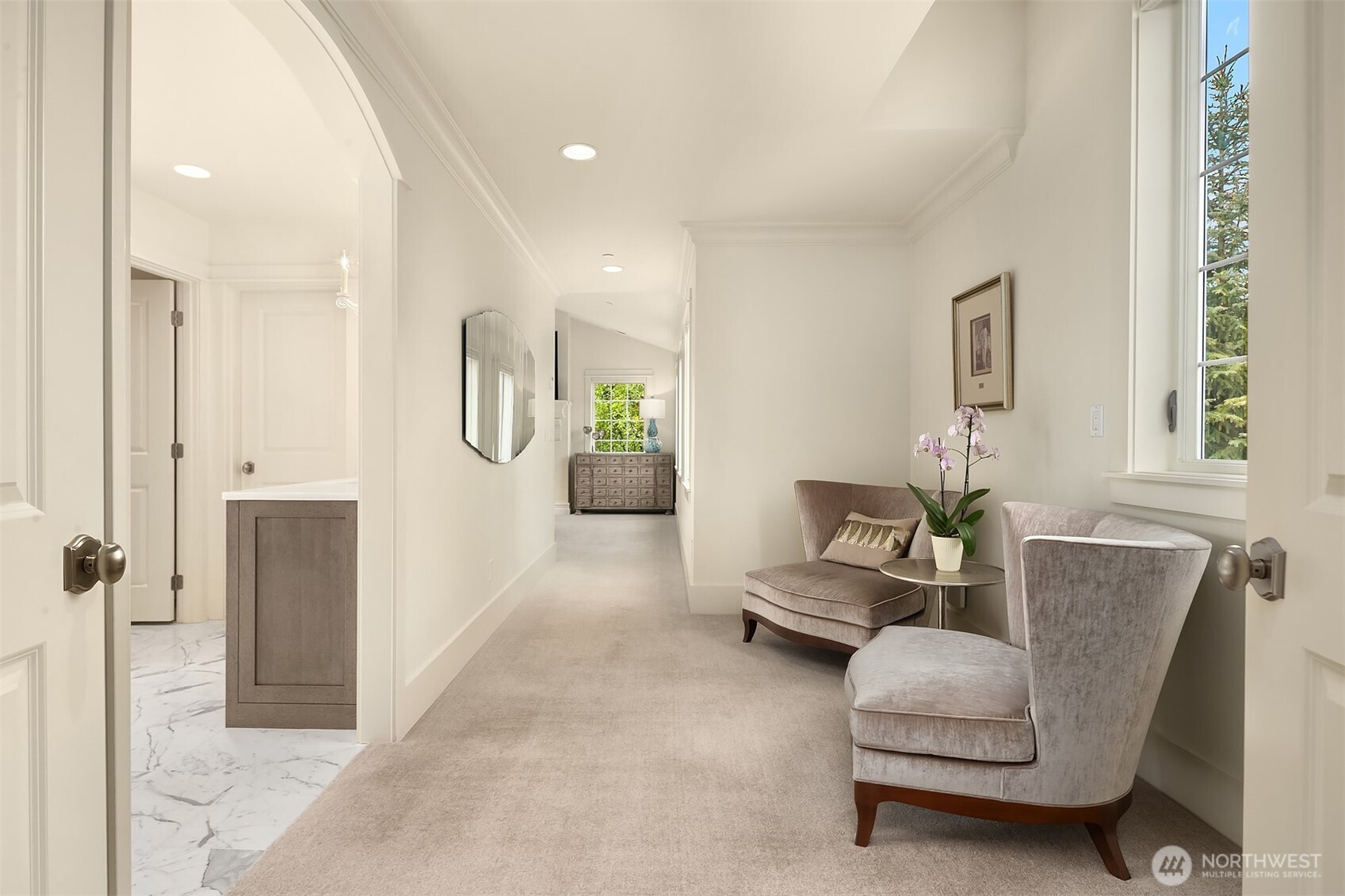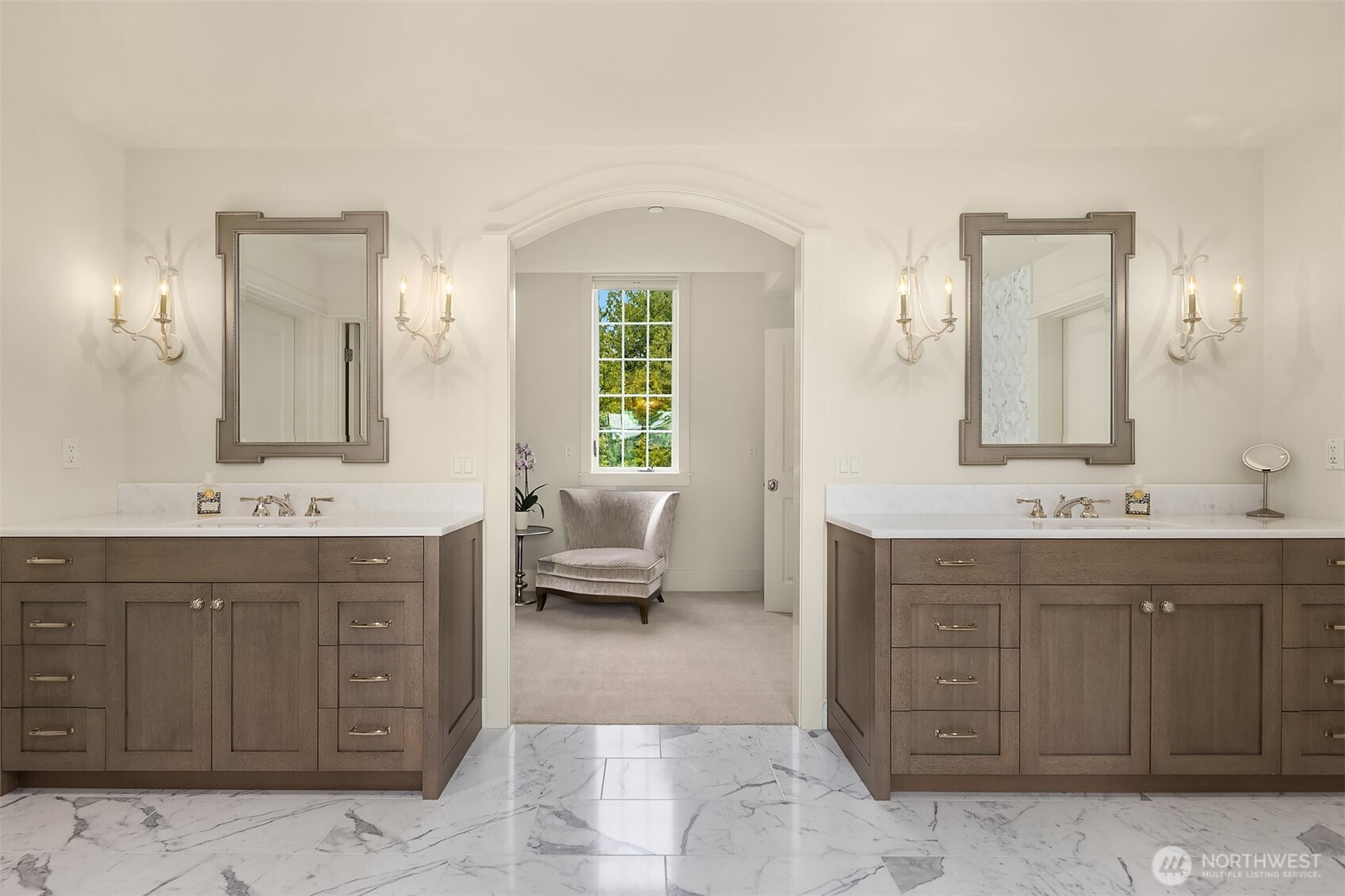 Medina luxury redefined—privately nestled along a tranquil creek in one of the Northwest’s most prestigious enclaves. This exceptional residence completed in 2011 showcases an expansive Great Room design with a seamless flow, refined architectural detail, and abundant natural light—ideal for elevated entertaining and everyday living. A true chef’s kitchen features a coveted La Cornue range, exquisite Carrera marble surfaces, bespoke cabinetry, and professional grade appliances—both a statement and a centerpiece. Upstairs, four generously sized bedrooms each offer remodeled en suite baths showcasing designer marble tile, Jonathan Pauls cabinetry, premium fixtures, and impeccable craftsmanship. The primary suite is a serene retreat in itself, complete with a spa-inspired marble luxury bath, fireplaces, and dual walk-in closets. The versatile lower level includes a spacious family room, Definitive designed media room, hobby space, and flex room with bath—perfect for guests, wellness, or work-from-home needs. The outdoor living is equally compelling with a trellis-style patio, electric awnings and calming presence of the creek create a rare sense of seclusion all within walking distance to Medina waterfront parks & Top-tier recognized schools. Within Minutes to Bellevue, luxury shopping centralized, or Tee-off/swim laps at Overlake Golf & Country Club. A distinguished offering for a discerning Buyer who requires the finer touches in a location defined by prestige and discretion.