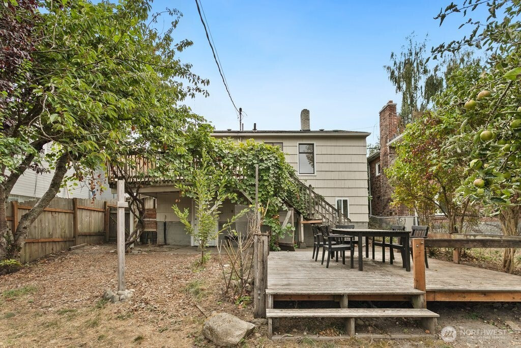 This mid-century charmer is much bigger than it looks from the street with a fully finished lower level that could be a main suite or would easily make into a duplex with separate entrance. Huge garage off alley has been a fantastic workshop for an at home business or finish it out as an additional detached living unit. Private and quiet large yard with entertaining sized patio surrounded by beautiful fruit trees. Hardwood floors, lovely westerly outlooks, off street parking, great bus and freeway access in this convenient location near Westwood Village, 509, 99 and Lincoln Park.