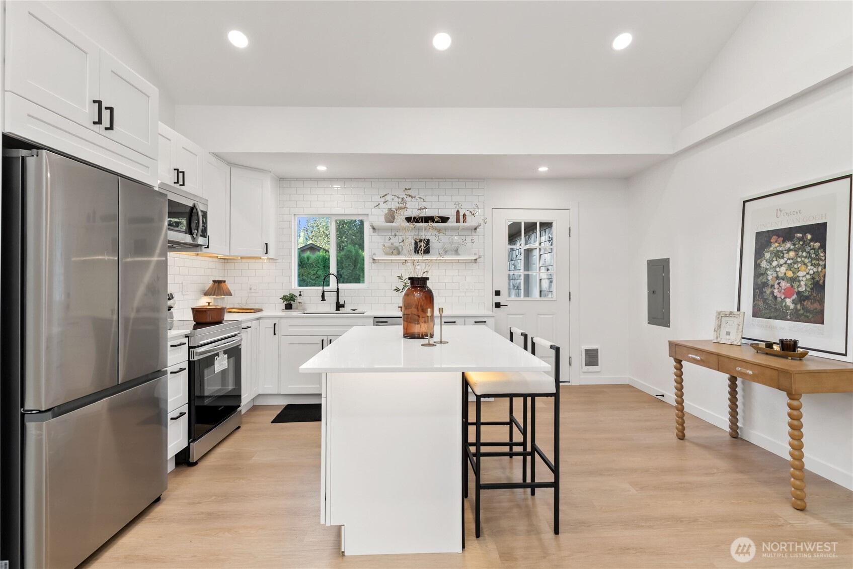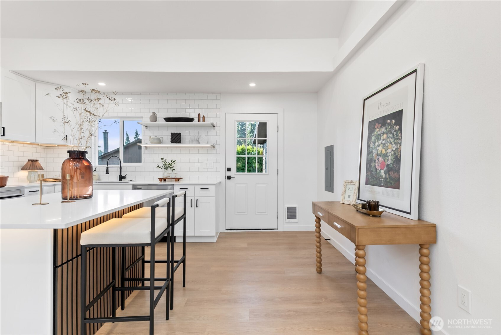 The perfect trifecta—Location,Parking, and Storage!This beautifully updated 3-bedroom,1-bath home is sure to impress. Featuring vaulted ceilings, brand new roof, fresh LVP flooring, and a stunning new kitchen with quartz countertops, custom cabinets, and undercabinet lighting. The open-concept living area creates a warm and inviting space ideal for entertaining. The Jack-and-Jill primary bedroom offers comfort and convenience. Outside, enjoy a spacious ¼-acre lot with a 12x16 shed and an additional 380 sq. ft. of versatile space—perfect for an office, gym, or extra storage. The garage includes 220 power, ideal for EV charging or workshop use.Excellent location near Costco,Wild Waves Theme Park, and quick freeway access for an easy commute!