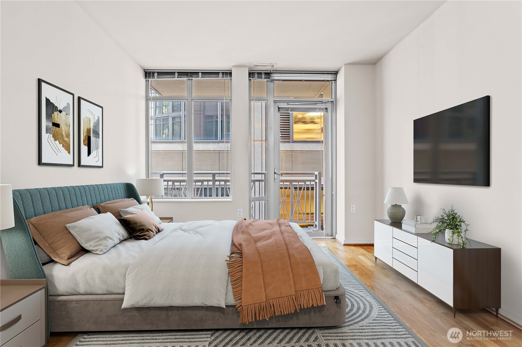 Urban studio living at its best in The Cosmopolitan, Seattle's luxury condo living building. This efficiently designed studio is filled with natural light, one wall being almost entirely windows and glass door, and offers a smart, open layout ideal for city living or investment ownership. No rental cap provides rare flexibility for long-term investors. Enjoy resort-style amenities including a 24-hour concierge, secure entry, fully equipped gym, spa and sauna, and a stunning rooftop deck with panoramic city views—perfect for entertaining or unwinding above it all. No need to worry about the size--the Cosmopolitan offers an Owners' Lounge for group gatherings, a workspace with individual work stations, and a conference room for all your group and work needs. Unbeatable walkability to dining, shopping, entertainment, transit, and major employment hubs near Lake Union makes this an ideal home base for full-time residents, part-time city dwellers, or out-of-area buyers seeking a lock-and-leave affordable Seattle retreat. Private interior parking available for lease, inquire with your agent for more details! Secure, central, and low-maintenance—downtown living with options. Make an appointment to visit today!