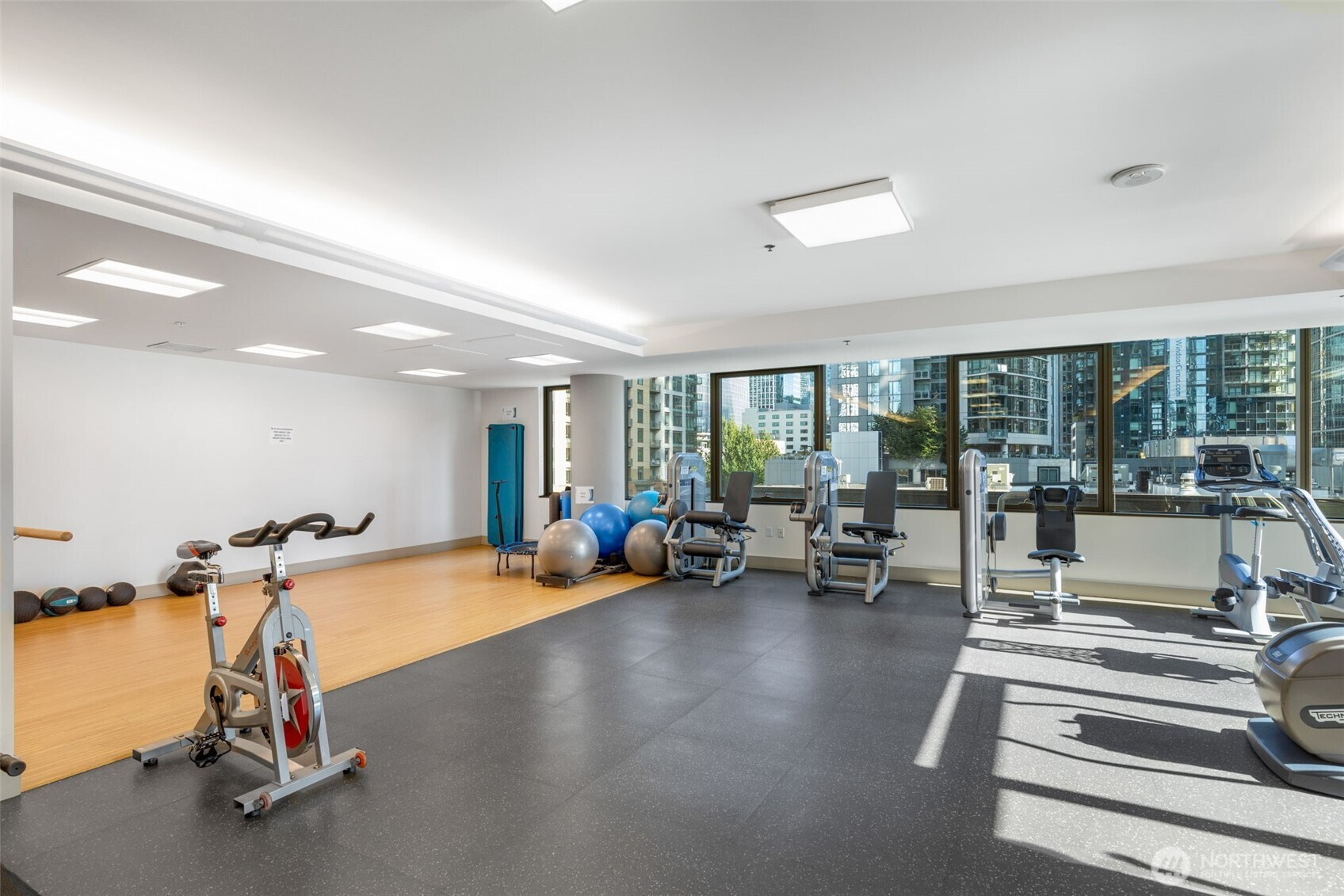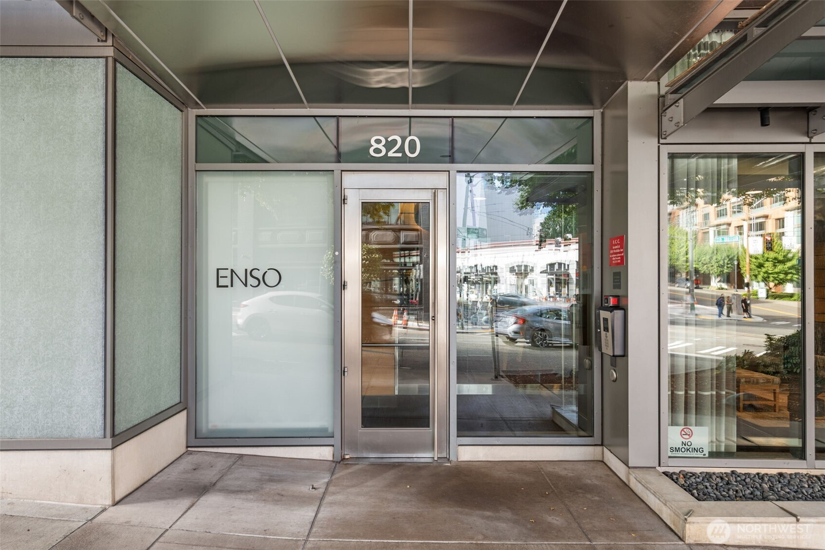 Convenience, comfort, and quality define this light filled south-facing home at Enso in the heart of Denny Triangle. Floor-to-ceiling windows frame open city views and fill the home with natural light, while a private balcony offers the perfect place to relax above the vibrant streets below. High ceilings and an open layout create a bright, inviting feel, and a double-sided gas fireplace adds warmth and character between the living room and bedroom. The well-appointed kitchen anchors the space, ideal for everyday living and entertaining. Includes secured garage parking and private storage. This LEED Gold-certified concrete and steel building offers concierge service, fitness center, owner’s lounge, and guest suite, all just steps from Whole Foods, dining, shopping, and transit.