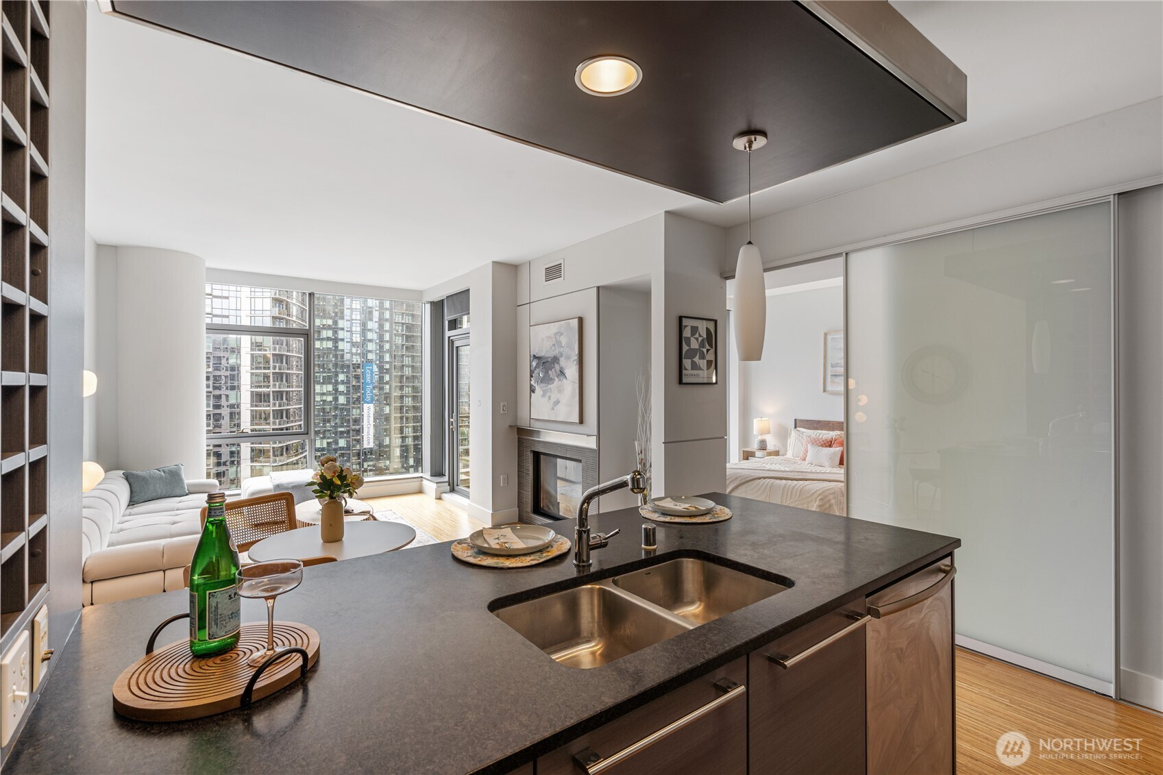 Experience elevated living at Enso, a modern building in South Lake Union offering concierge service, fitness center, resident lounge, and more. This unit features one of the building’s most desirable and functional one-bedroom layouts, with excellent flow and usability. Floor-to-ceiling, south-facing windows fill the home with natural light and frame unobstructed city views. A rare dual-sided gas fireplace adds warmth and character, creating a seamless connection between the open living area and bedroom. The well-appointed kitchen anchors the space, featuring Bosch appliances, granite countertops, and sleek modern finishes. Enjoy unmatched convenience with Amazon, Whole Foods, dining, and transit just steps away. Secured parking and private storage included. Pet-friendly building with no rental cap, offering flexibility for both homeowners and investors.