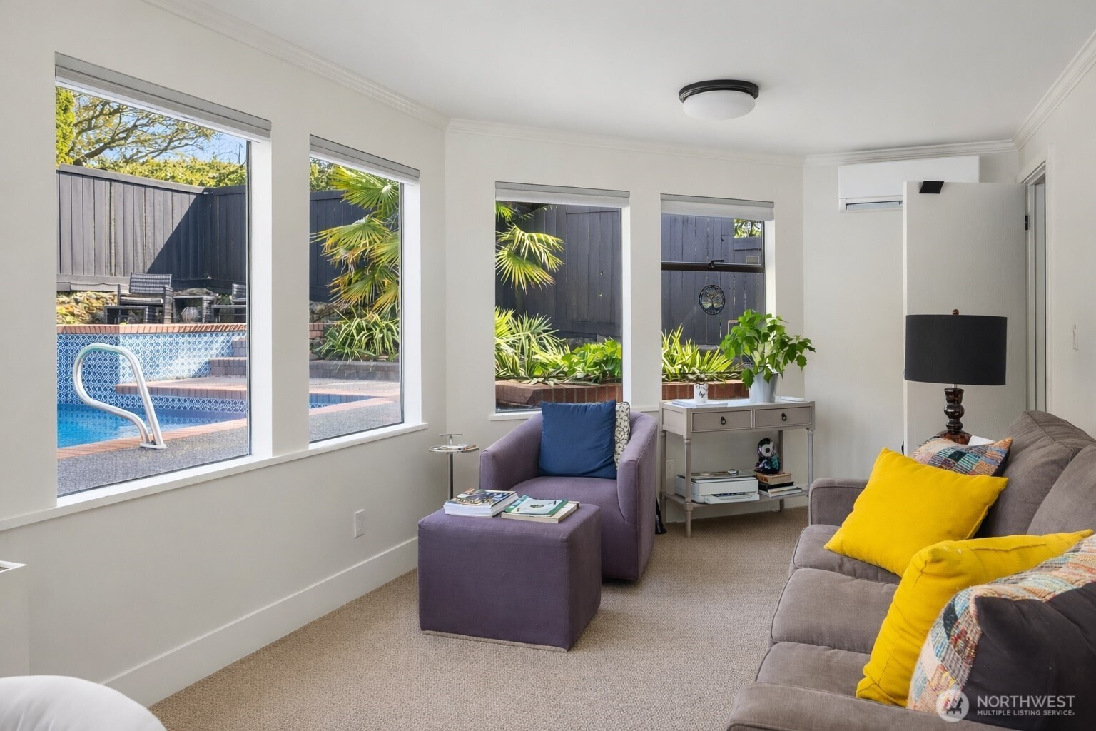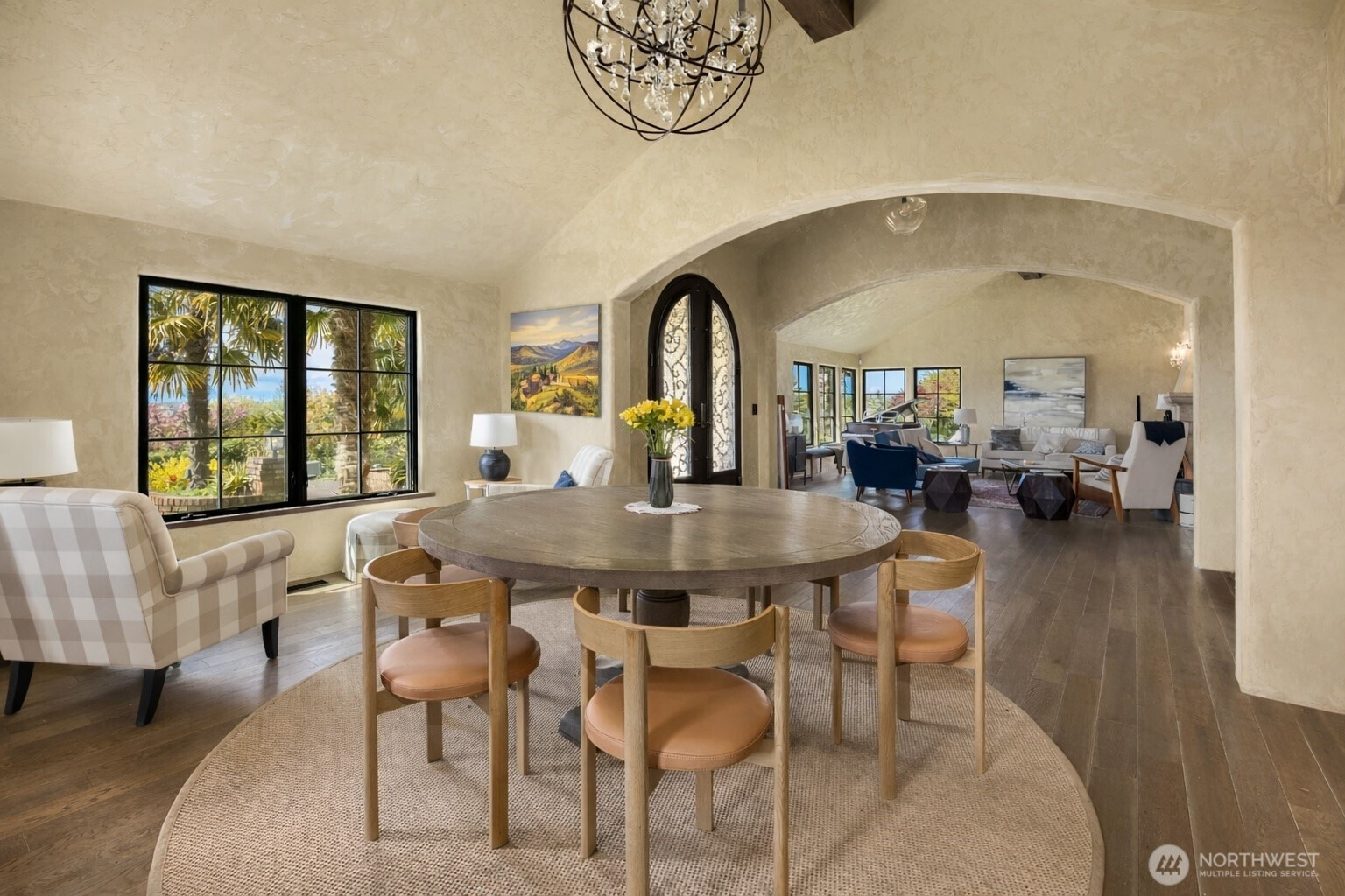Located on one of Mercer Island’s most coveted streets, this exceptional one-level home set off the street captures sunny western exposure, breathtaking sunsets, and sparkling views of the Seattle skyline - all without any power lines. Thoughtfully reimagined in 2015, its Mediterranean-inspired design showcases exquisite finishes and timeless style throughout. Entertain effortlessly in expansive open living spaces highlighted by dramatic timber-beamed ceilings, seamlessly blending warmth and sophistication. Designed for year-round indoor-outdoor living, the home invites both quiet relaxation by the fire and lively gatherings around the island-style gourmet kitchen.Summer comes alive here—host unforgettable poolside parties with a bonus lounge that opens to the patio, pool, and spa. Dine alfresco under the stars or gather around the fire pit on a second patio for s’mores and conversation. A second private patio makes multi generational living easy. Four versatile bedrooms—including one with a private entrance—offer flexible living, work, or guest options.Set on a peaceful, flat, and highly walkable street, you’re just moments from Pioneer Park, top-rated schools, and South End favorites like QFC, Starbucks, and local dining. This is effortless island living at its finest.
