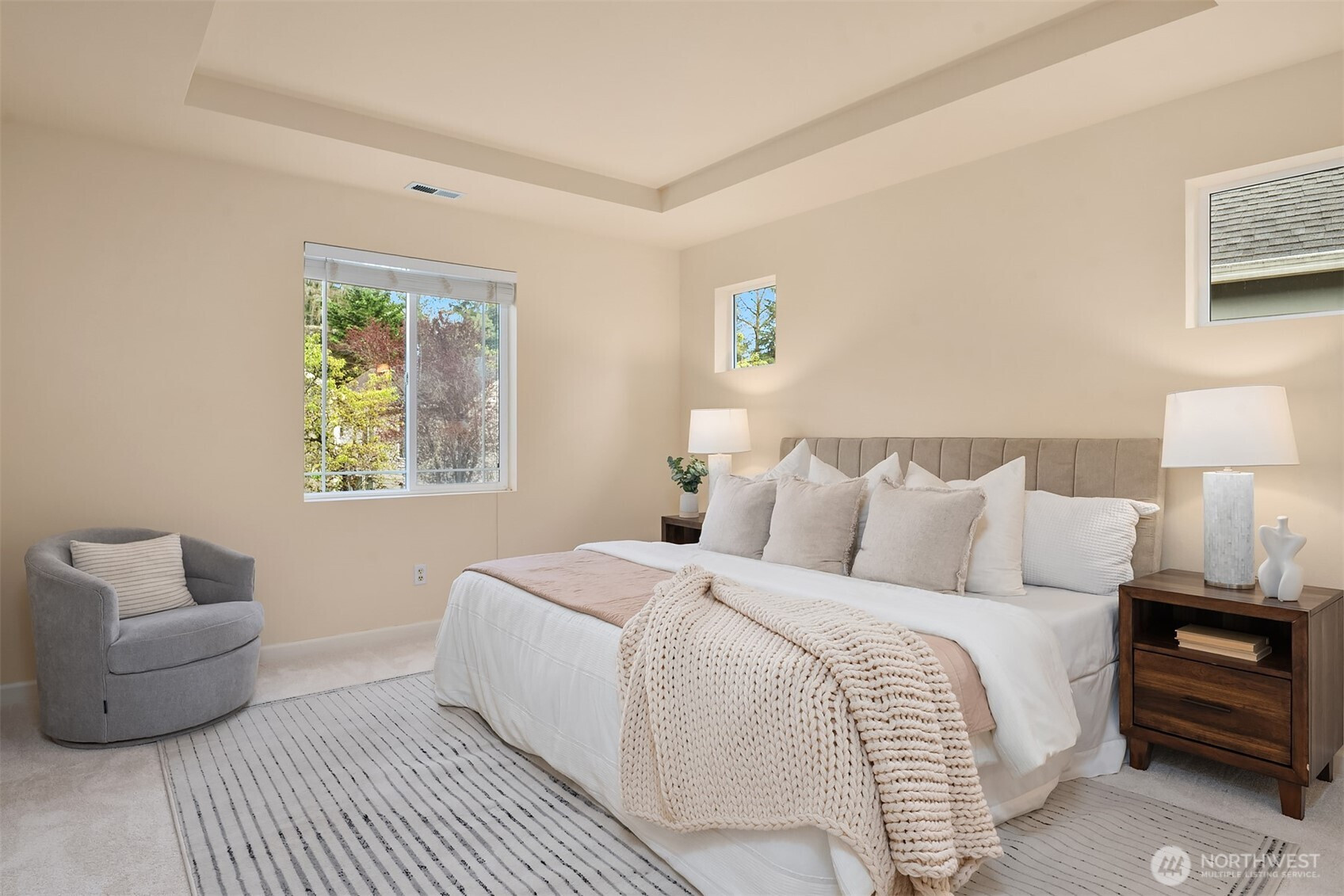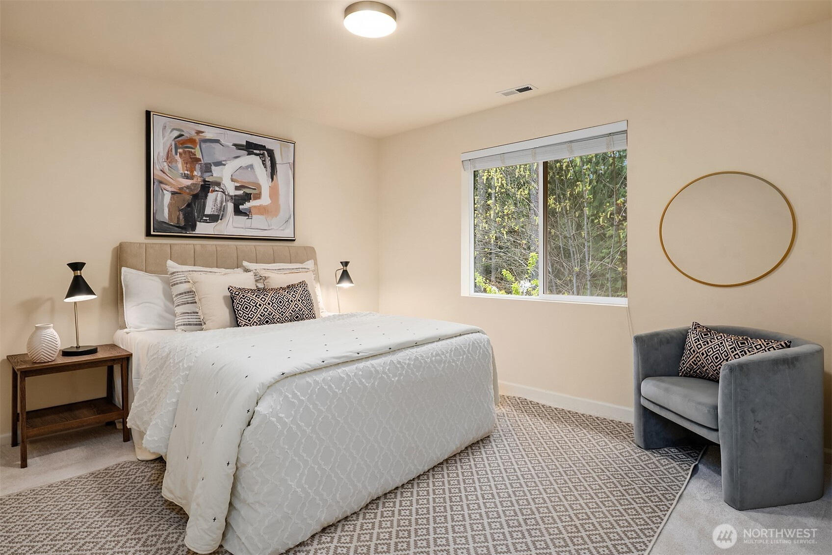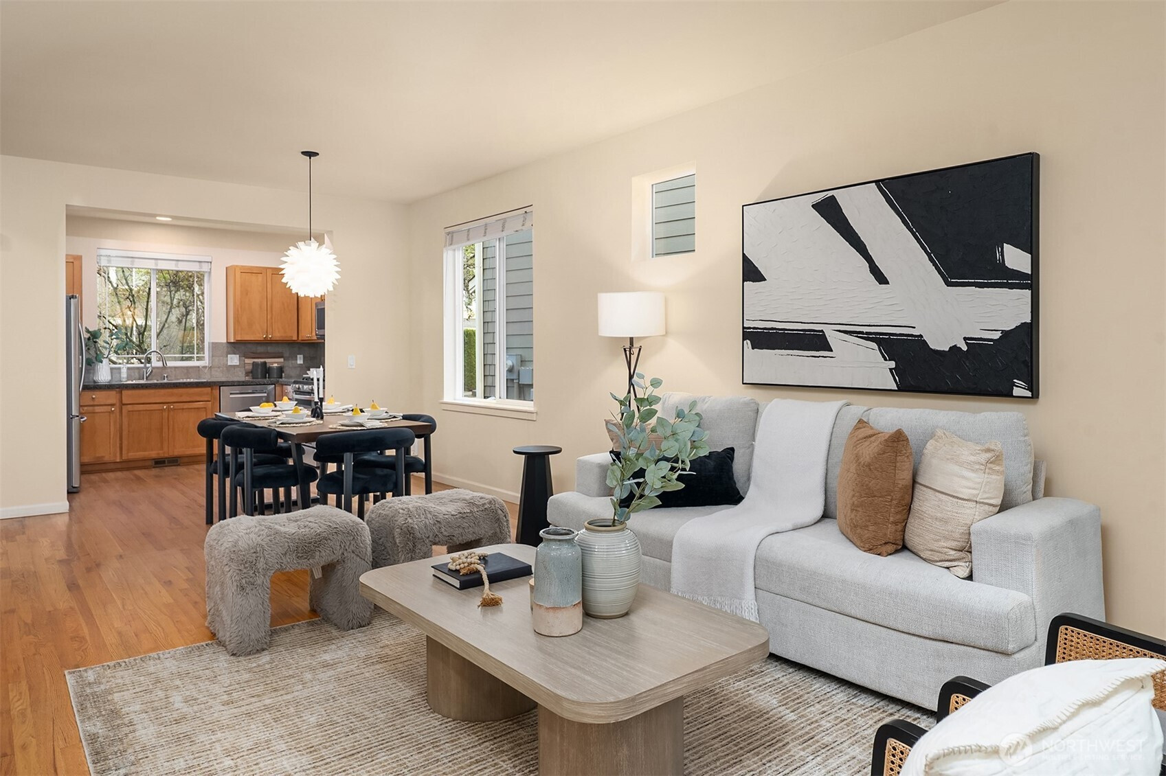 Welcome to Redmond Ridge — one of Redmond's most sought-after communities, where mature tree-lined streets meet convenient access to the region's top tech employers. This well-appointed 3-bedroom, 2.5-bath single house with a 2-car garage offers 1,630 sq ft of thoughtfully designed living space. The main floor impresses with 9-ft ceilings, rich hardwood floors throughout, and a welcoming gas fireplace with stone surround — the perfect backdrop for both everyday living and entertaining. The gorgeous kitchen features maple cabinetry, granite countertops, and a full tile backsplash, complemented by a newer dishwasher ready for daily use. Upstairs, the generous primary suite includes a walk-in closet, with two additional bedrooms and a full bath rounding out the upper level. Recent updates bring true peace of mind: brand-new carpet, fresh interior paint, a new sump pump, a smart thermostat system for year-round comfort, and a near-new roof — so you can move in and simply enjoy. The garage is equipped with a ChargePoint EV charger, making it effortlessly ready for your electric vehicle. Located minutes from Microsoft, SpaceX / Starlink, and the broader Redmond tech corridor, with easy access to SR-520, top-rated Lake Washington school district, dining, and shopping. Whether you're a tech professional or a savvy investor, this Redmond Ridge gem checks every box!