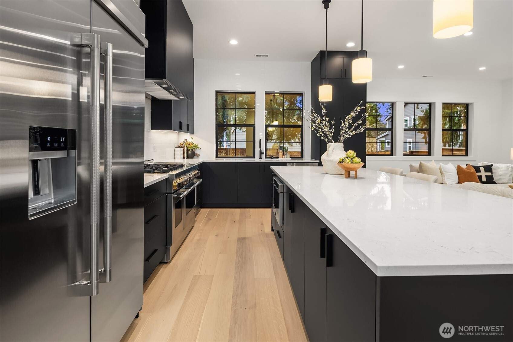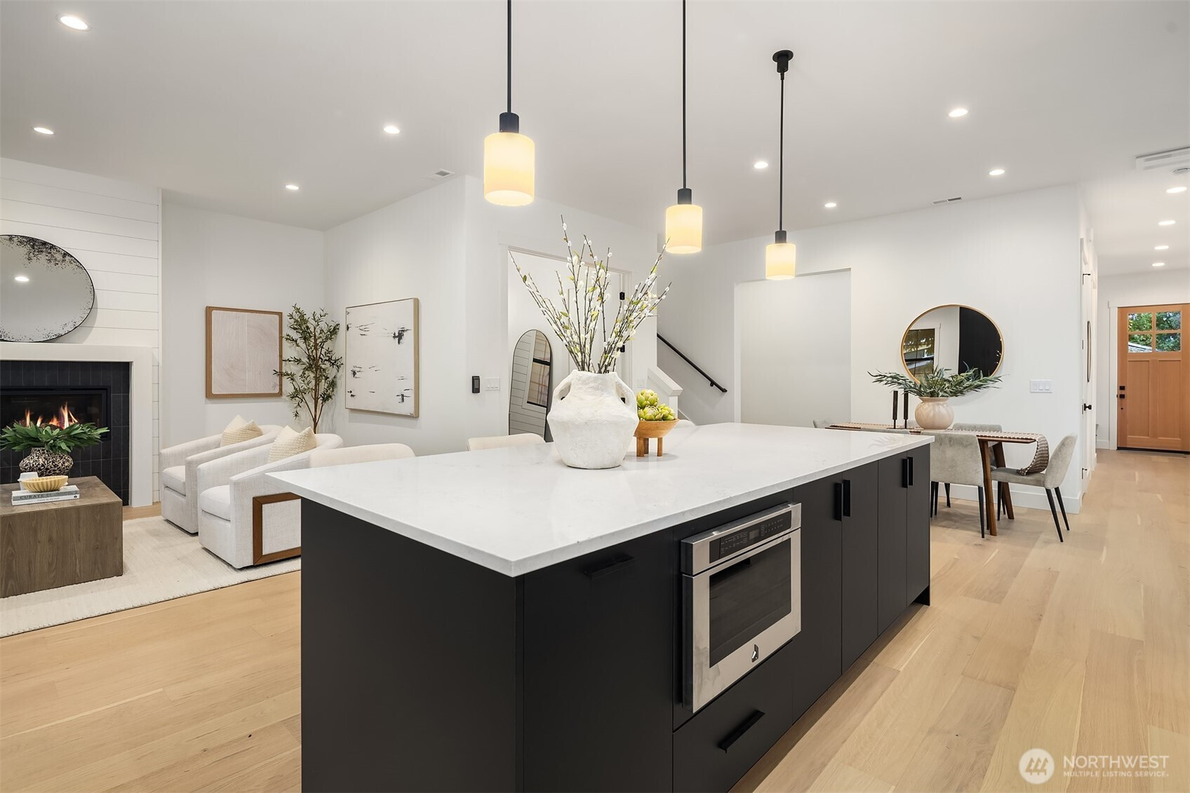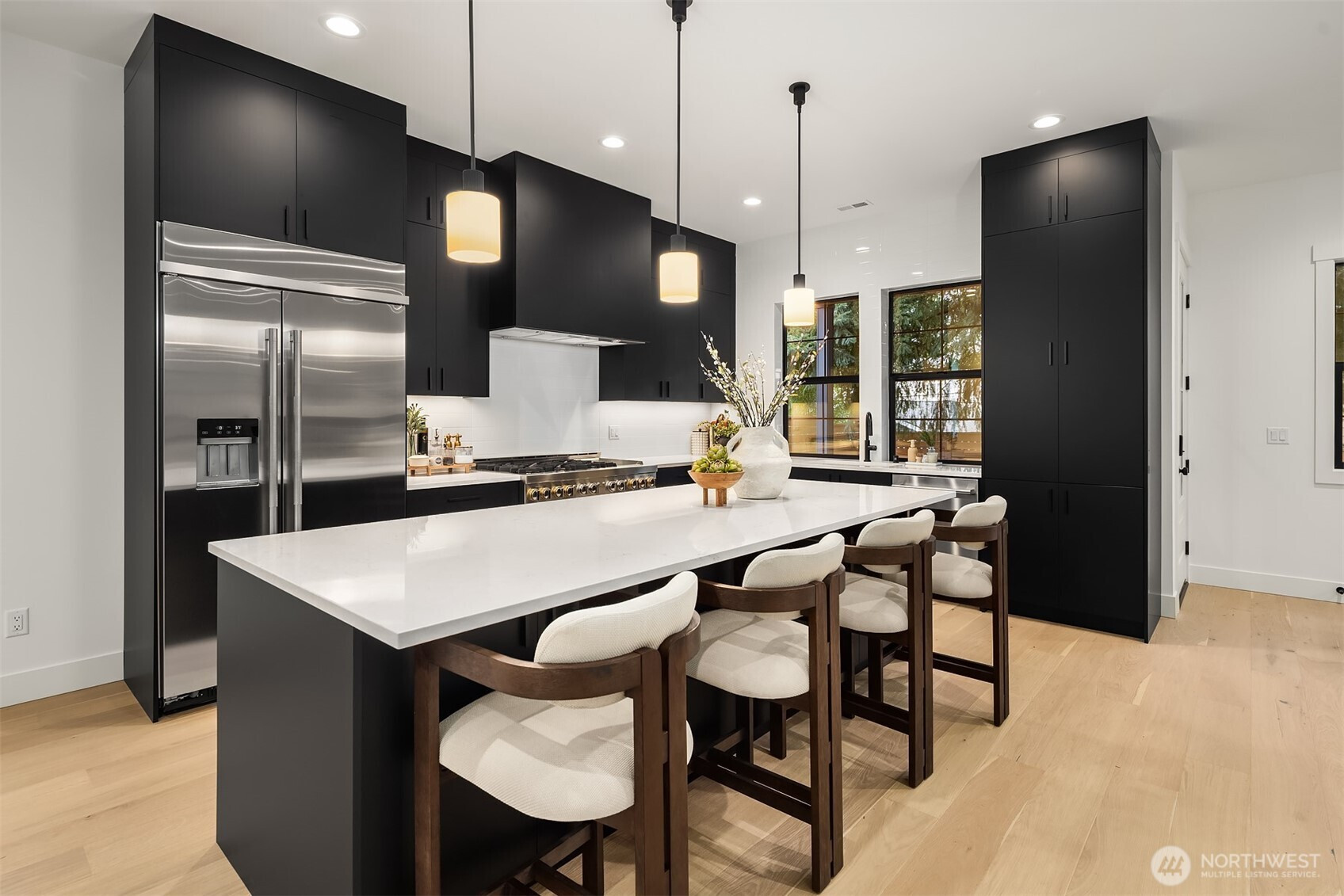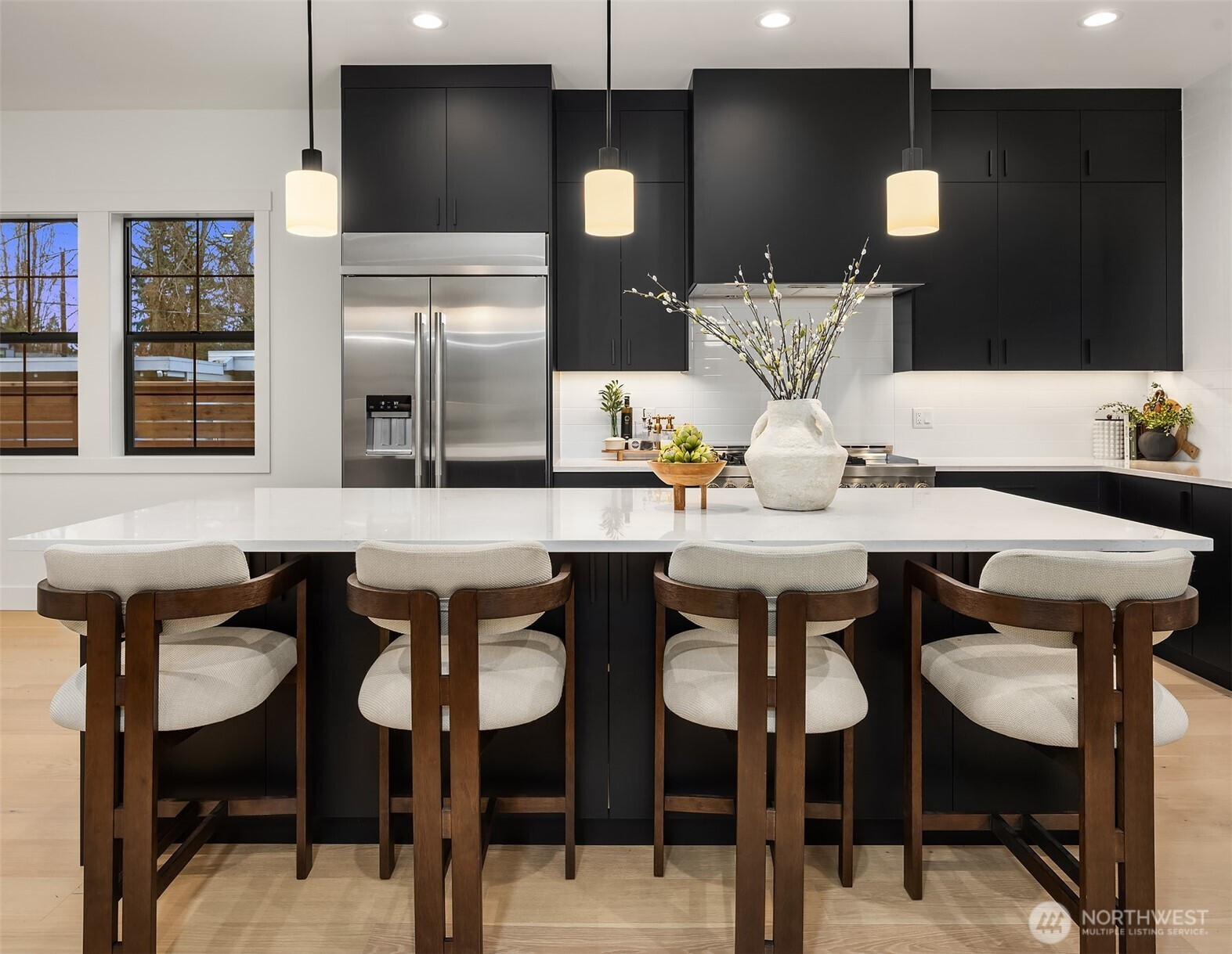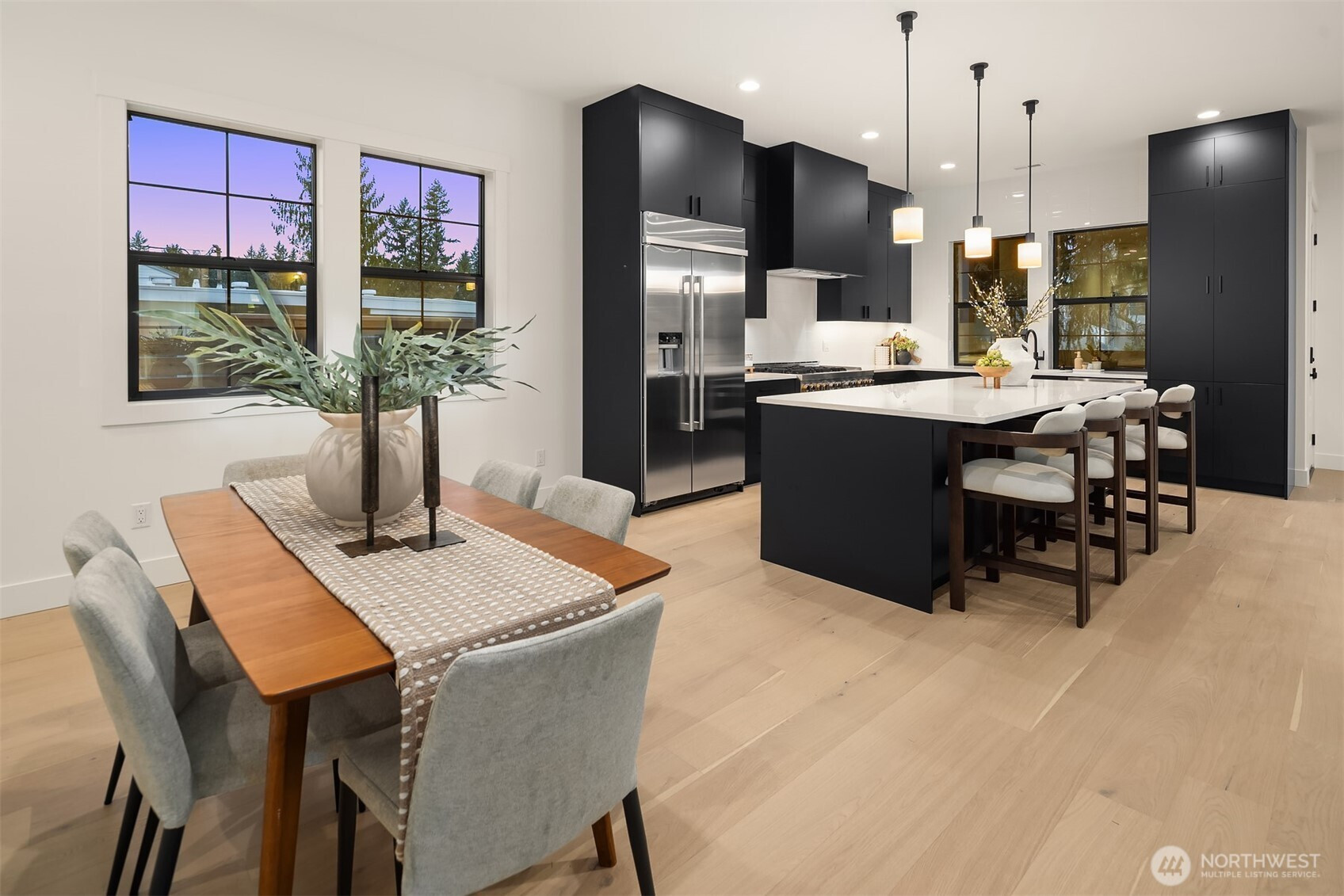Welcome to this spacious new construction home in East Bellevue. Main level features inviting entryway and powder room - perfect for guests. Open concept, well-appointed kitchen, offers abundant storage, large island and flexible dining space. Gas fireplace with custom surround creates an inviting living area opening to great backyard. Separate office is perfect for WFH. Upstairs, find your primary suite with high ceilings & luxe en suite, complete with soaking tub. Laundry room includes w/d & built-ins. Three additional bedrooms, one with a private bath, plus another full bath complete this home. Two-car garage for easy parking & storage. Enjoy close proximity to shopping and dining plus ample parks and the west shore of Lake Sammamish.