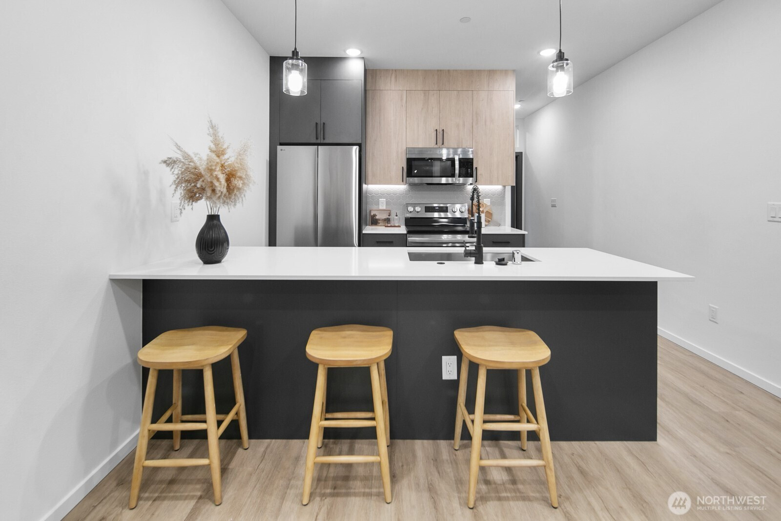 FINAL CHANCE to own in Greenbuild Development's boutique enclave in Ballard’s Brewery District. This 2-bed + flex/den townhome offers modern living. Enjoy contemporary finishes, including wide-plank flooring, sleek kitchen design, custom cabinetry with quartz counters, and ductless mini-split climate control on every level. The open-concept main floor flows up to multiple levels of private bedrooms, den/flex space perfect for your WFH office or home gym, and two spa-inspired baths, all leading to a sunset-ready rooftop deck. Step outside and stroll to Gilman Park, award-winning breweries, buzz-worthy eateries, and Ballard’s iconic Sunday Market—quintessential Seattle living!”
