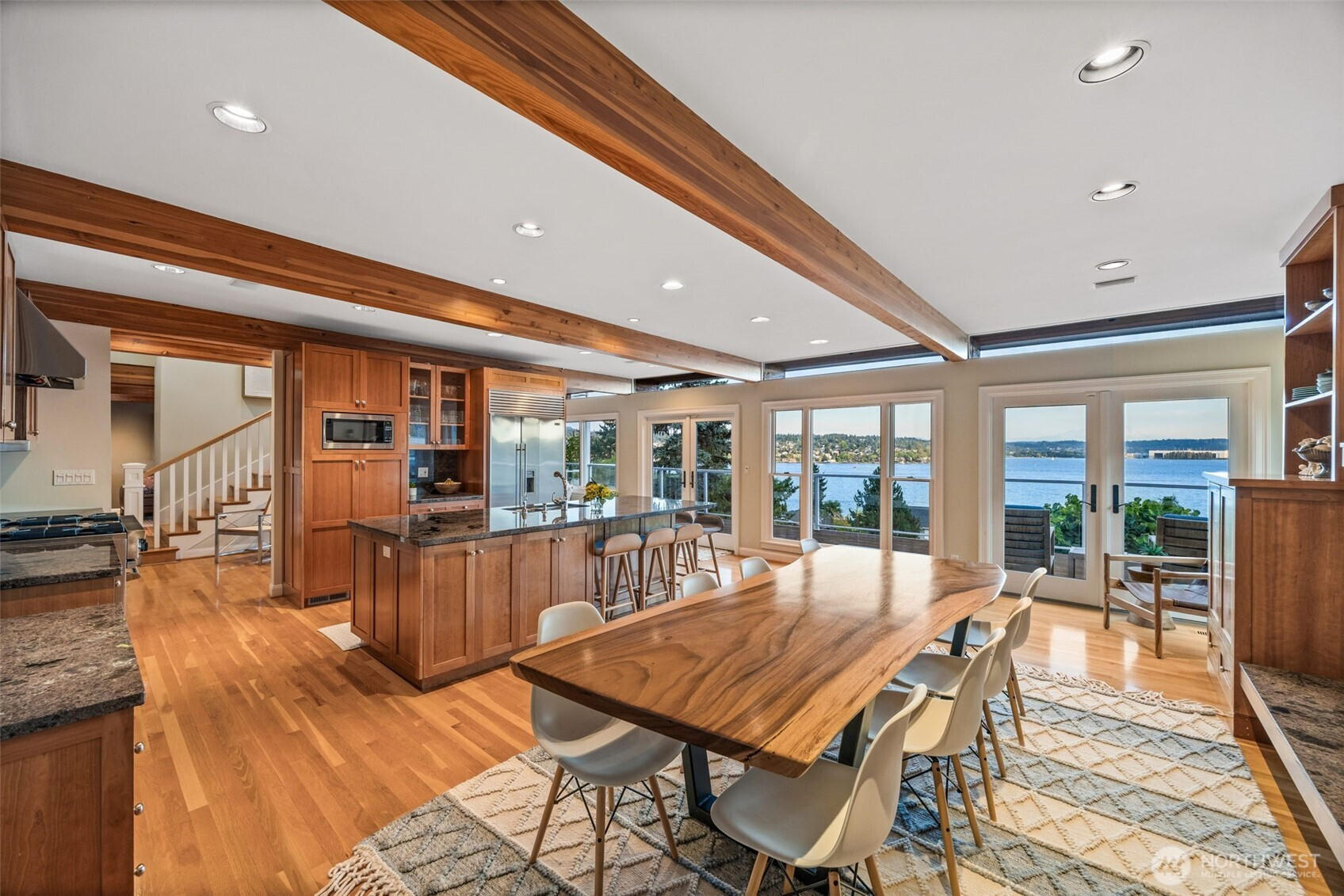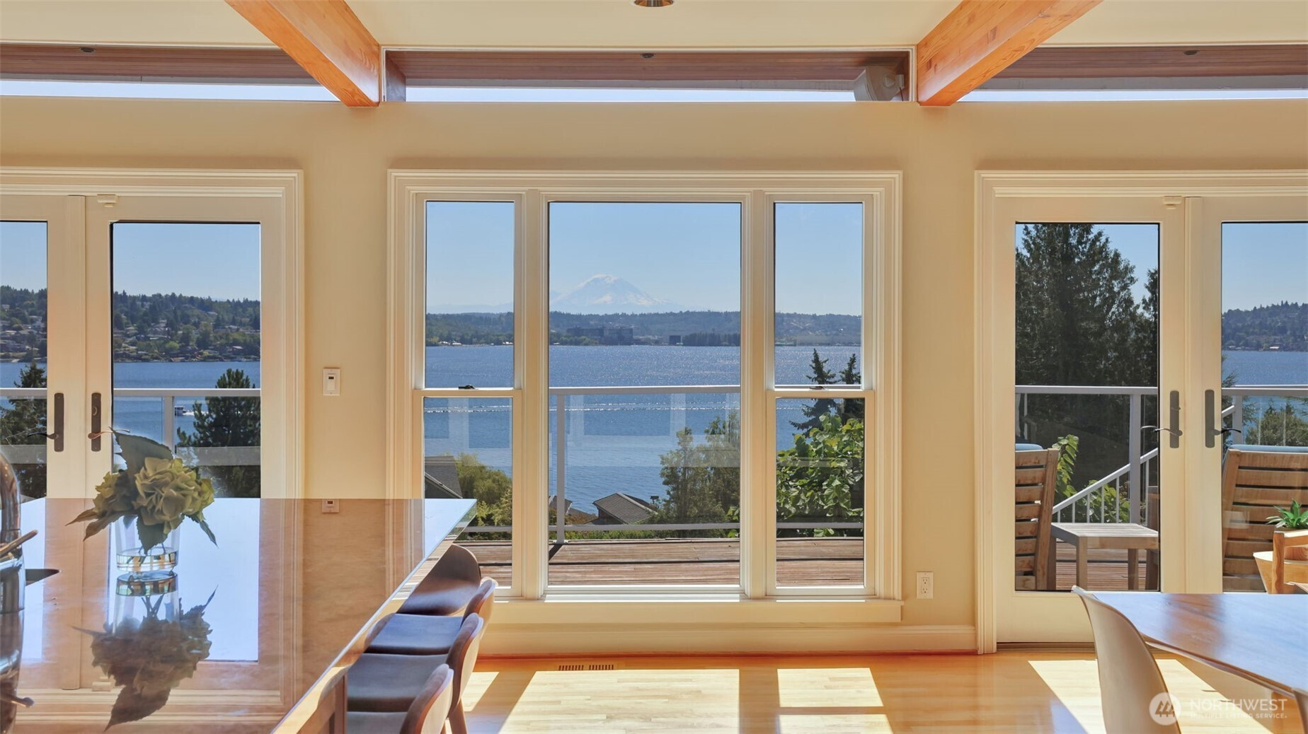 Vacation living all year long! Custom 6-bedroom, 5-bath craftsman in Mercer Island’s coveted Avalon Park offers over 5,200 sq ft of elegant living with panoramic views of Lake Washington and Mt Rainier. Highlights include a chef’s kitchen with commercial-grade appliances, expansive view decks, luxurious suite with private deck, 4-fireplaces, a separate guest wing and home theater. Enjoy movies or game nights with abundant great rooms and family living space. Additional features include a 3-car garage, EV charger, high-end finishes, dual laundry rooms, indoor/outdoor built-in speakers, new luxury carpet throughout, science ‘lab’ and entertaining patio. Prime access to the Mercer Island Beach Club-offering moorage, tennis, pools, gym & more!