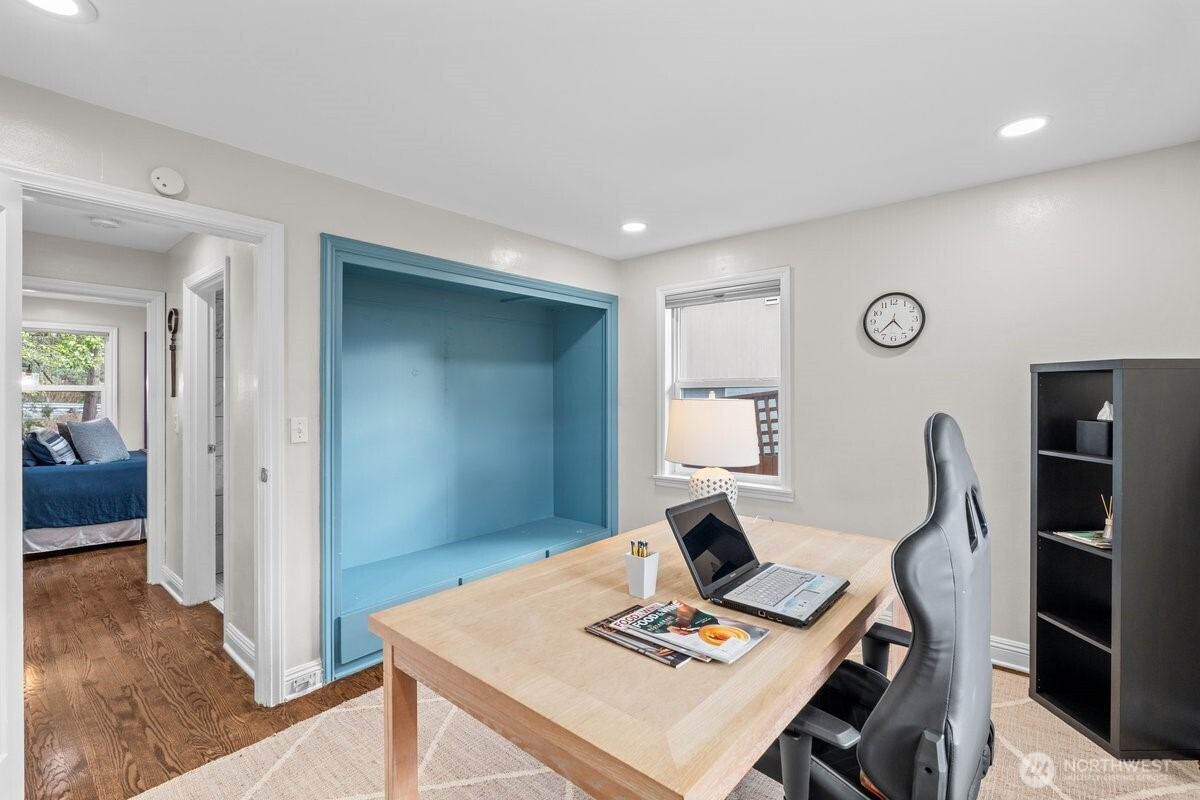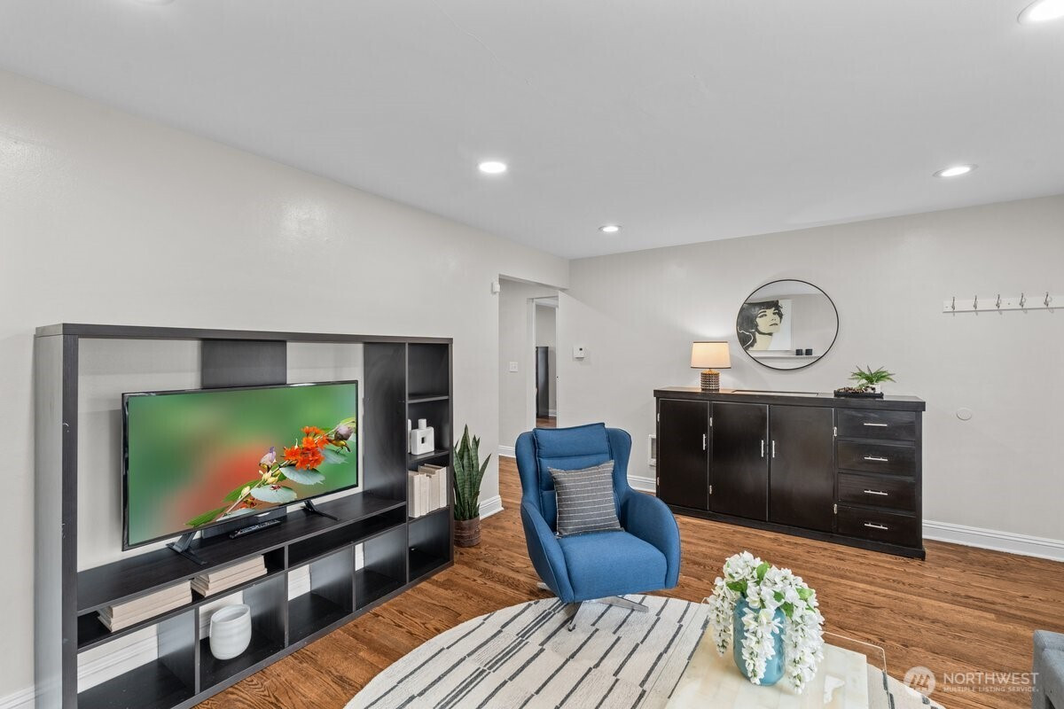 Live just minutes from the vibrant energy of Green Lake while enjoying the comfort of a spacious, move-in-ready home. This 4-bedroom residence features 2 full bathrooms plus an additional ¾ bath, offering inviting living spaces, beautiful hardwood floors, and a well-appointed kitchen with granite countertops and a full suite of matching smart appliances, ideal for everyday living and effortless entertaining. The flexible layout provides excellent options for guests, a home office, creative space, or multigenerational living. Step outside to a secluded, tree-lined yard and private deck, your own peaceful retreat in the city. Complete with a one-car garage and located approximately a 20-minute walk to Roosevelt Station. Enjoy easy access to Green Lake, parks, trails, dining, and cafés, plus convenient connectivity to both I-5 and Hwy 99 for an easy commute to major employers, including Amazon, Microsoft, Boeing, and downtown Seattle.