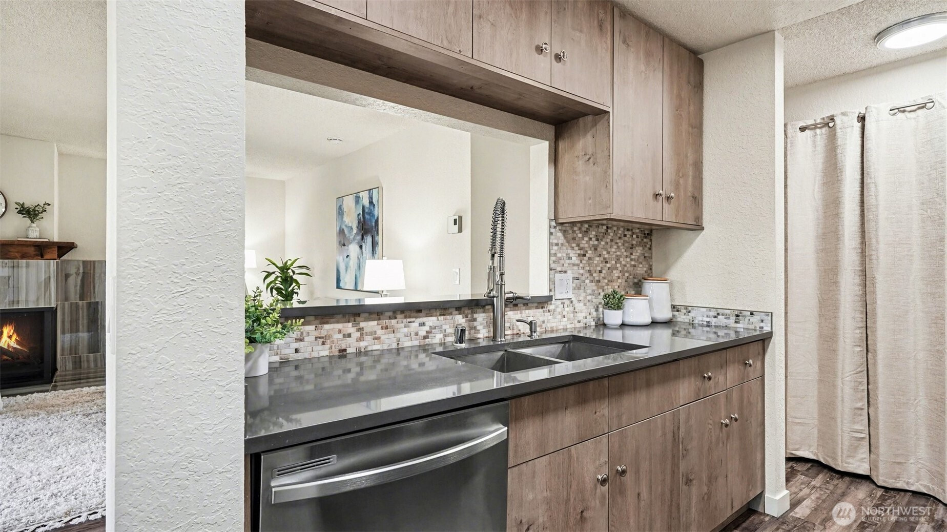Fabulously updated 2 BR, 1.5 BA condo that is conveniently close to everything! Complete interior remodel in 2021 with vinyl plank floor, quartz counters, new appliances, extra cabinets in kitchen and bath, paint, updated fireplace, carpet in bedrooms, doors & trim. All appliances included. Baseboard heaters have been replaced with space-saving wall units. Spacious deck is quiet and peaceful and has a locked storage cabinet; community lawn area. Located just steps from the Cross Kirkland Corridor Trail and less than 1 mile to Kirkland's waterfront parks with shops and restaurants in between for the perfect live, work, and play balance! Less than 1 mile to Google/Facebook/ Microsoft. New roof in 2024. No rental cap!
