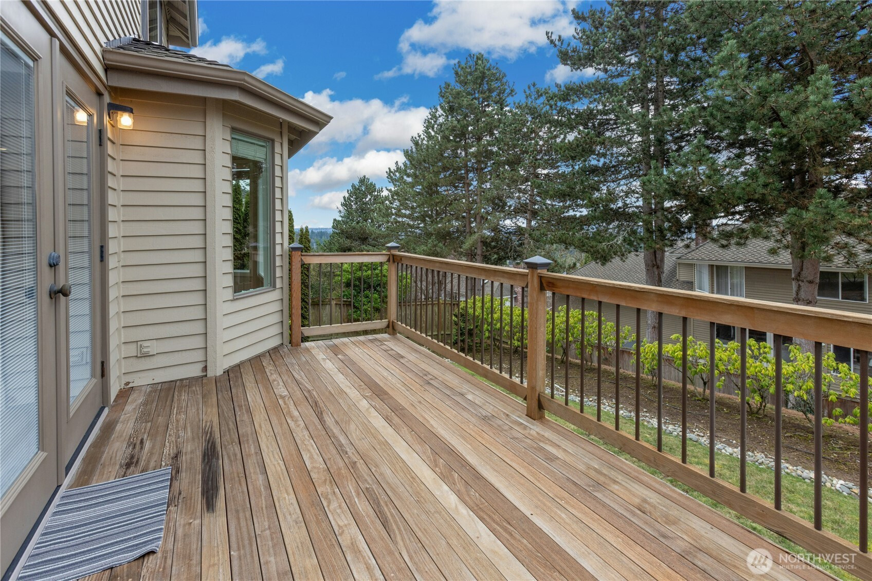 Stylish, spacious, and move-in ready! This updated Olympus 3-bedroom, 2.5-bathroom home features refinished hardwoods, fresh paint, new carpet, designer lighting, and updated hardware throughout. The kitchen shines with its newer quartz island and stainless steel appliances, and flows into a bright family room and out to a private deck and backyard. Ten-foot ceilings, elegant wainscoting, and a gas fireplace elevate the formal living and dining rooms. Upstairs, the primary suite offers a walk-in closet and 5 piece bathroom, while two additional bedrooms share a Jack-and-Jill bathroom. Enjoy a finished 3-car garage, partially fenced backyard and mature landscaping. All located in a peaceful neighborhood perched above Lake Boren Park with quick access to parks, trails, shopping, and 405.