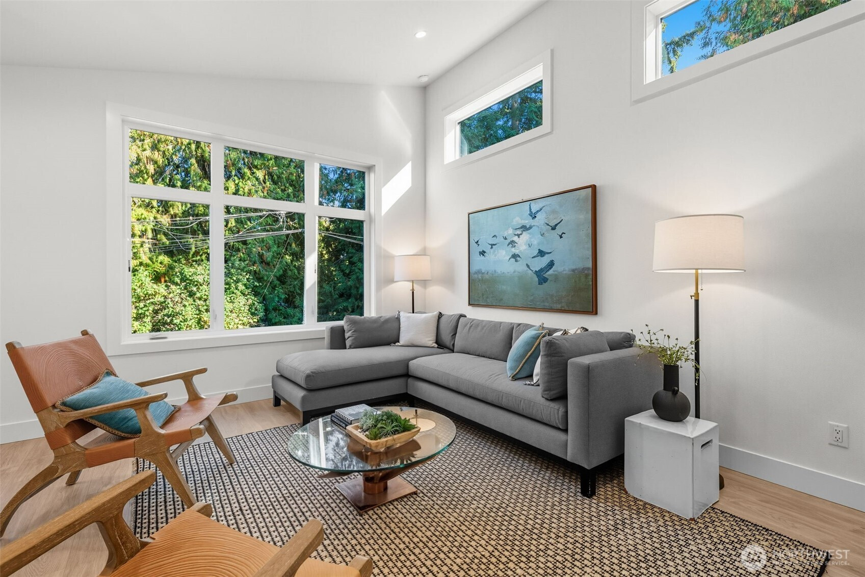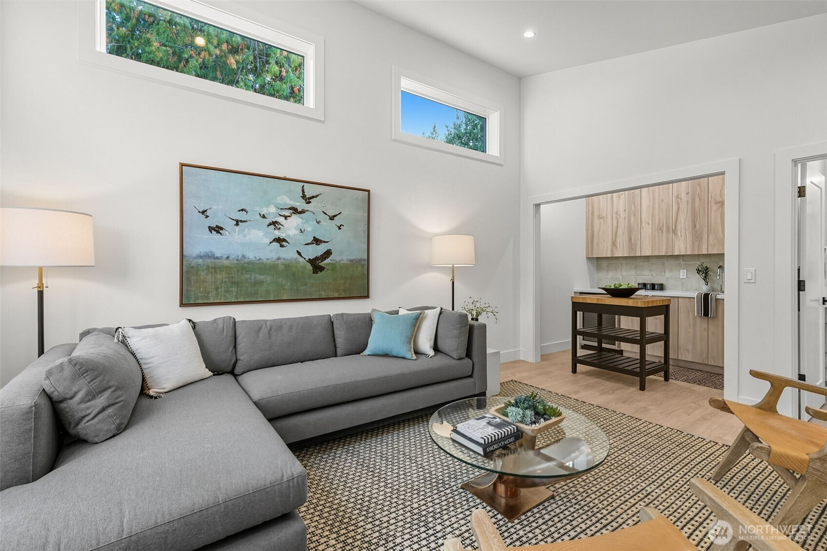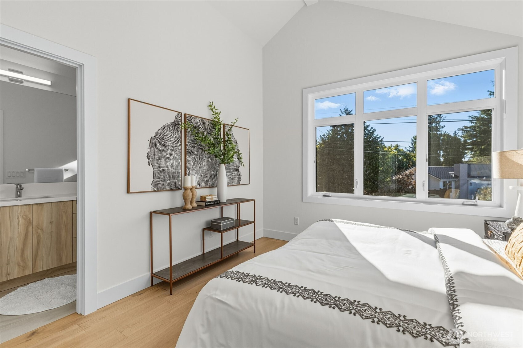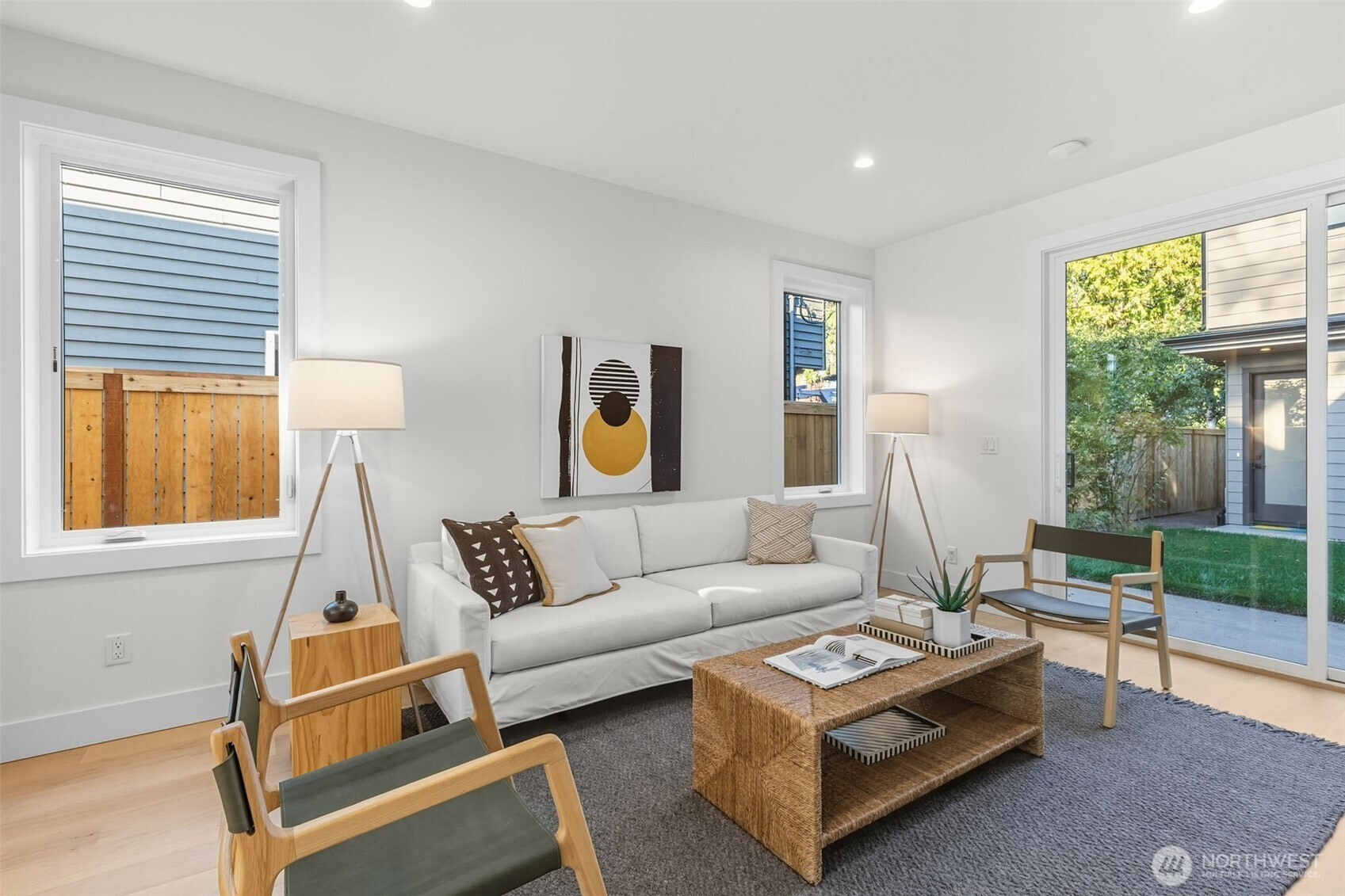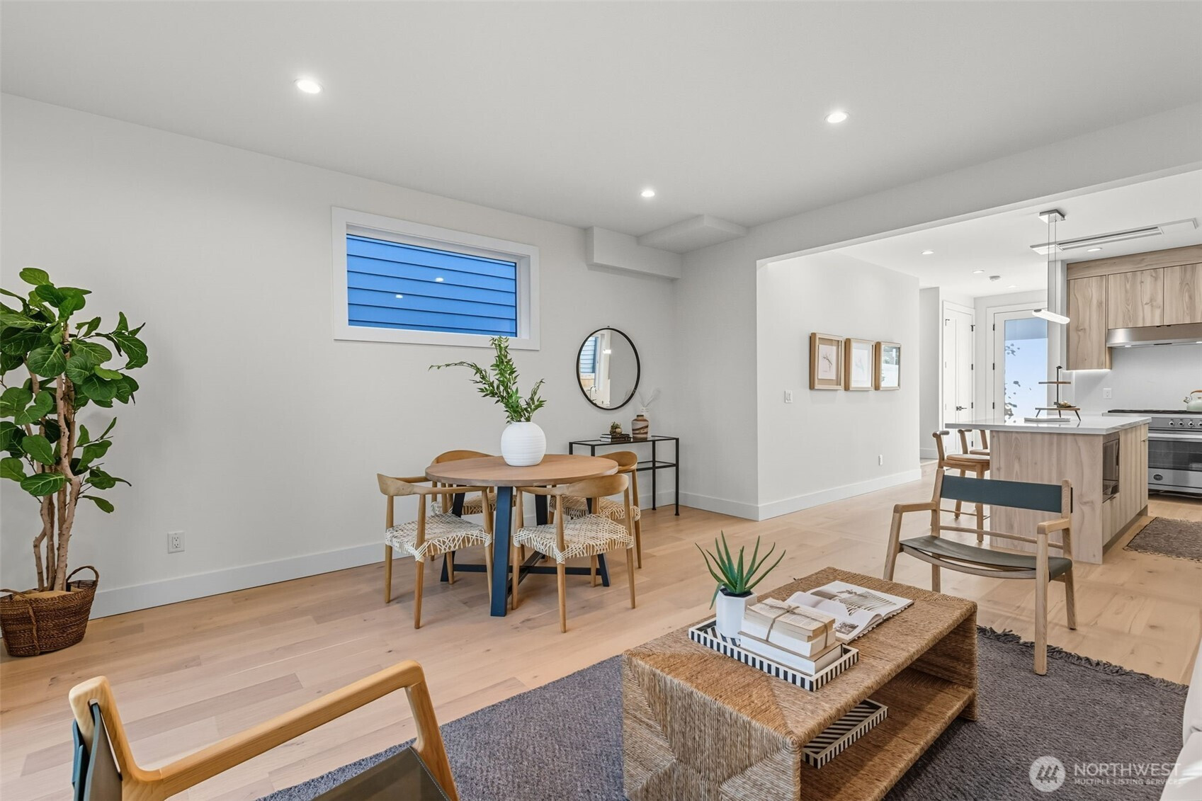 Beautifully designed new construction in Wedgwood with versatile living options. The 1,436 sf main home offers an open concept kitchen/dining/living area with powder bath, plus an upper-level primary suite with spa bath and heated floors, two guest bedrooms and shared full bath. Modern finishes include engineered hardwoods throughout + efficient mini-split heating/cooling. Enjoy a fully fenced yard shared with the garage/studio. Above the one-car garage, a 502 sf private studio provides a kitchenette, full bath, hardwoods, and mini-split—perfect for home office, movie nights, or creative use. Quality construction, smart layout and excellent location make this a rare find in one of Seattle’s most desirable neighborhoods.