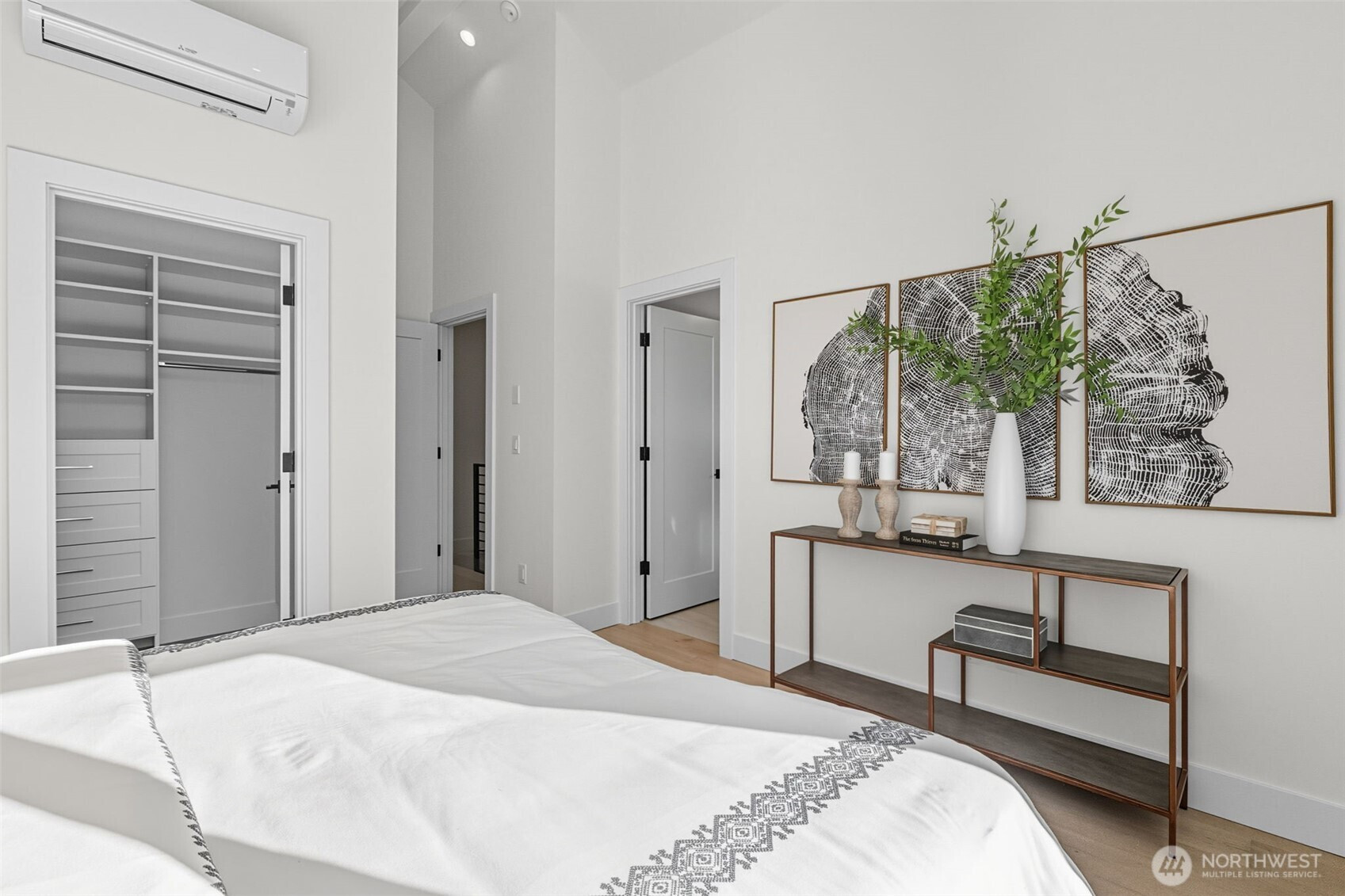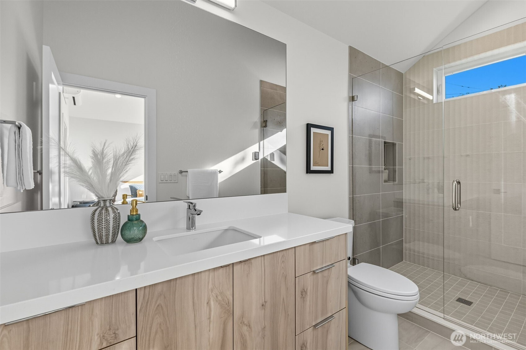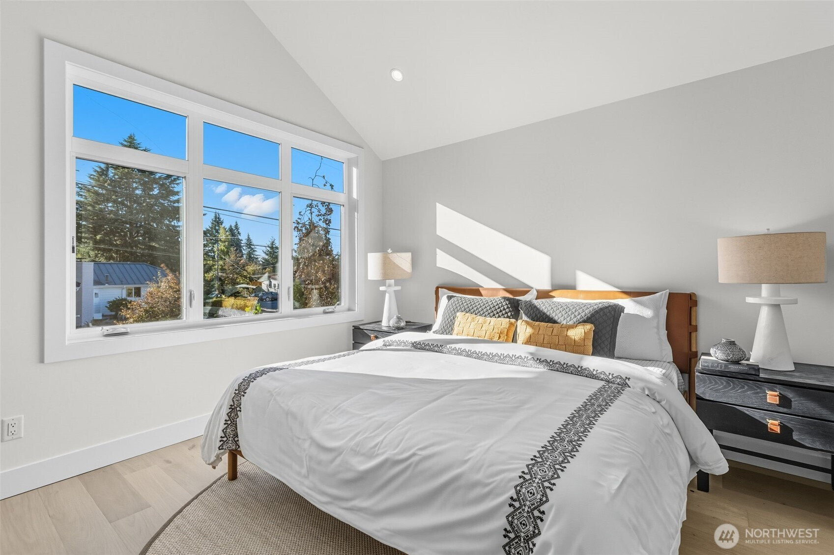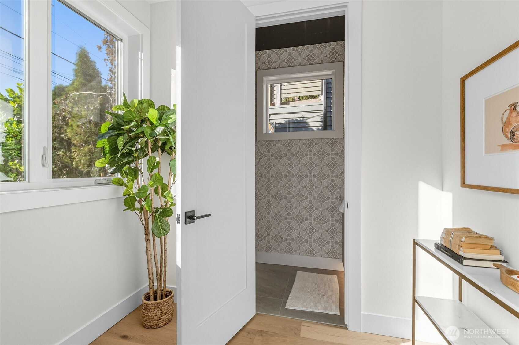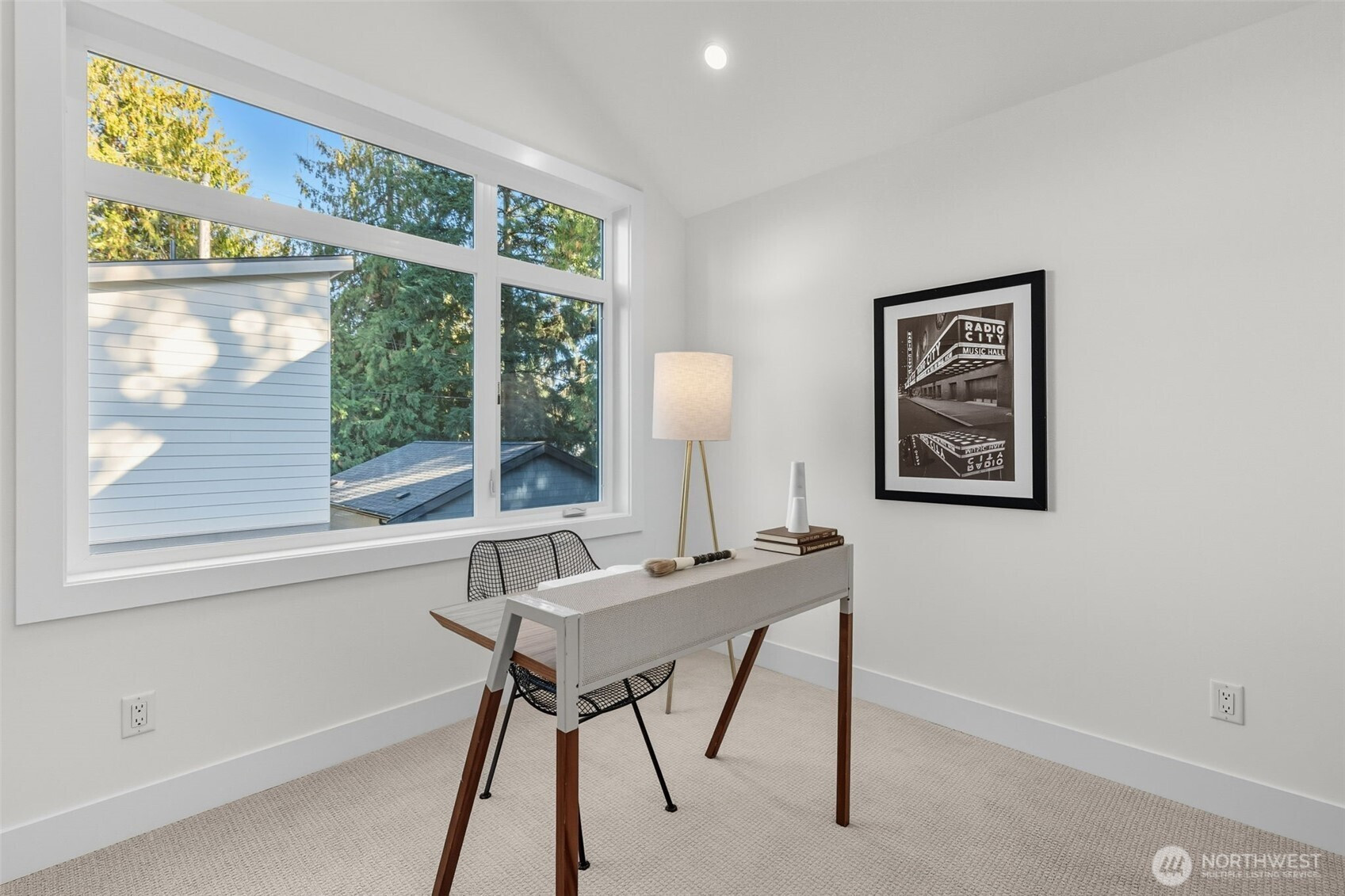 Beautifully designed new construction in Wedgwood with versatile living options. The 1,436 sf main home offers an open concept kitchen/dining/living area with powder bath, plus an upper-level primary suite with spa bath and heated floors, two guest bedrooms and shared full bath. Modern finishes include engineered hardwoods throughout + efficient mini-split heating/cooling. Enjoy a fully fenced yard shared with the garage/studio. Above the one-car garage, a 502 sf private studio provides a kitchenette, full bath, hardwoods, and mini-split—perfect for home office, movie nights, or creative use. Quality construction, smart layout and excellent location make this a rare find in one of Seattle’s most desirable neighborhoods.