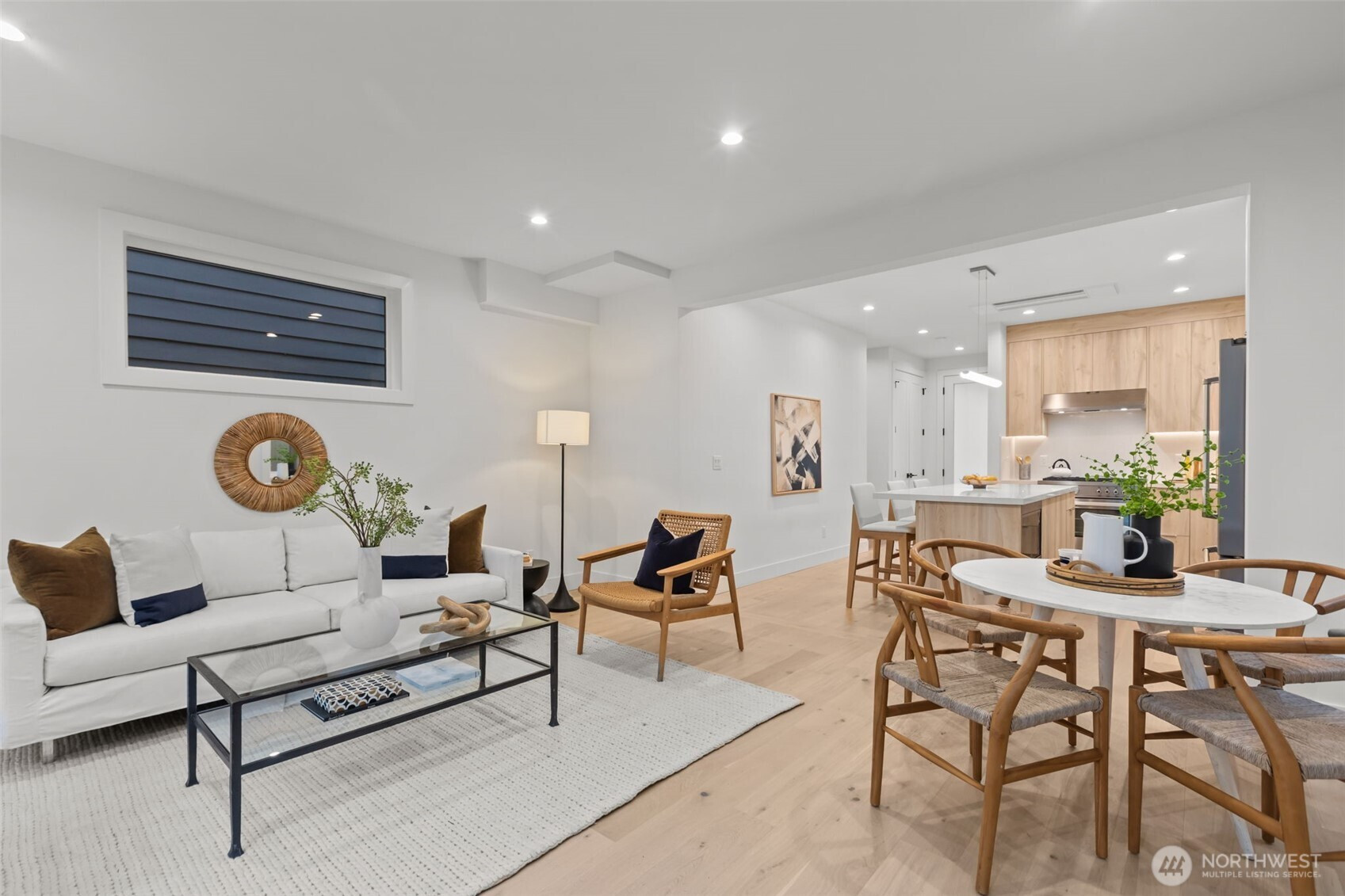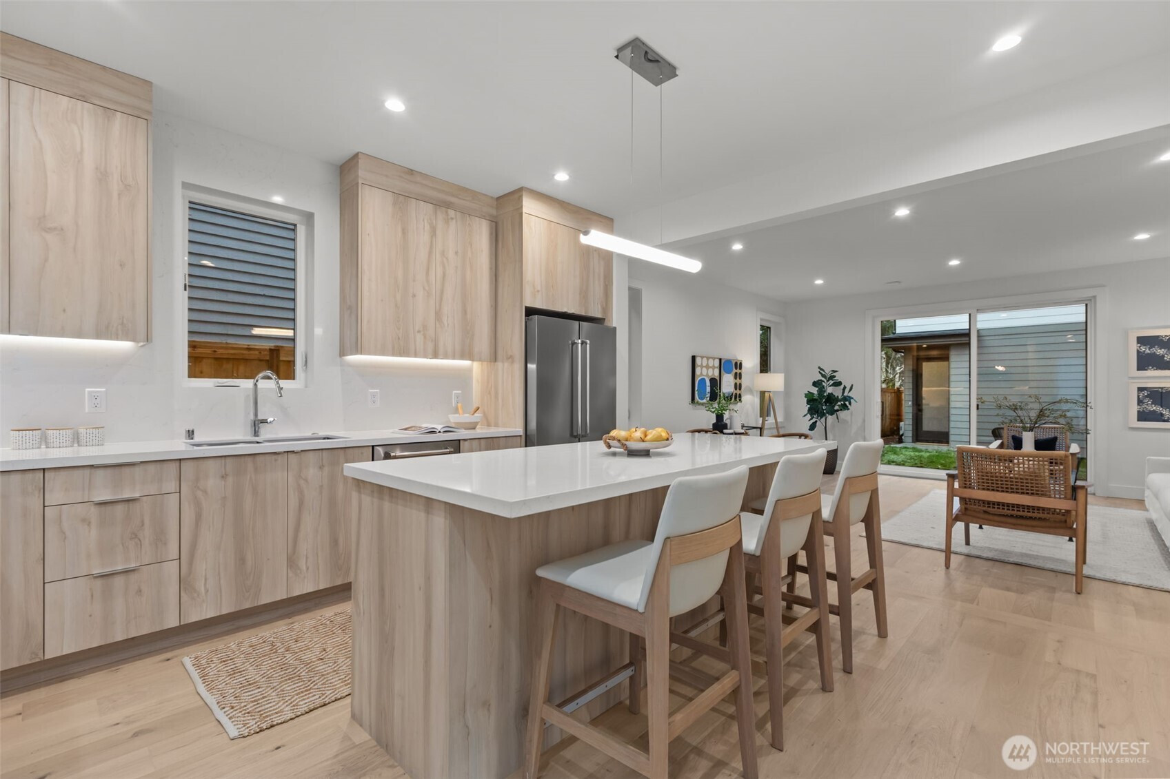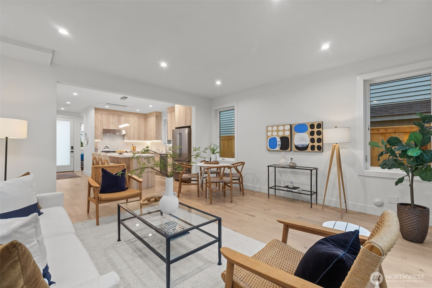 (503) 893-8874Beautifully designed new construction in Wedgwood with versatile living options. The 1,436 sf main home offers an open concept kitchen/dining/living area with powder bath, plus an upper-level primary suite with spa bath and heated floors, two guest bedrooms and shared full bath. Modern finishes include engineered hardwoods throughout + efficient mini-split heating/cooling. Enjoy a fully fenced yard shared with the garage/studio. Above the one-car garage, a 502 sf private studio provides a kitchenette, full bath, hardwoods, and mini-split—perfect for home office, movie nights, or creative use. Quality construction, smart layout and excellent location make this a rare find in one of Seattle’s most desirable neighborhoods.