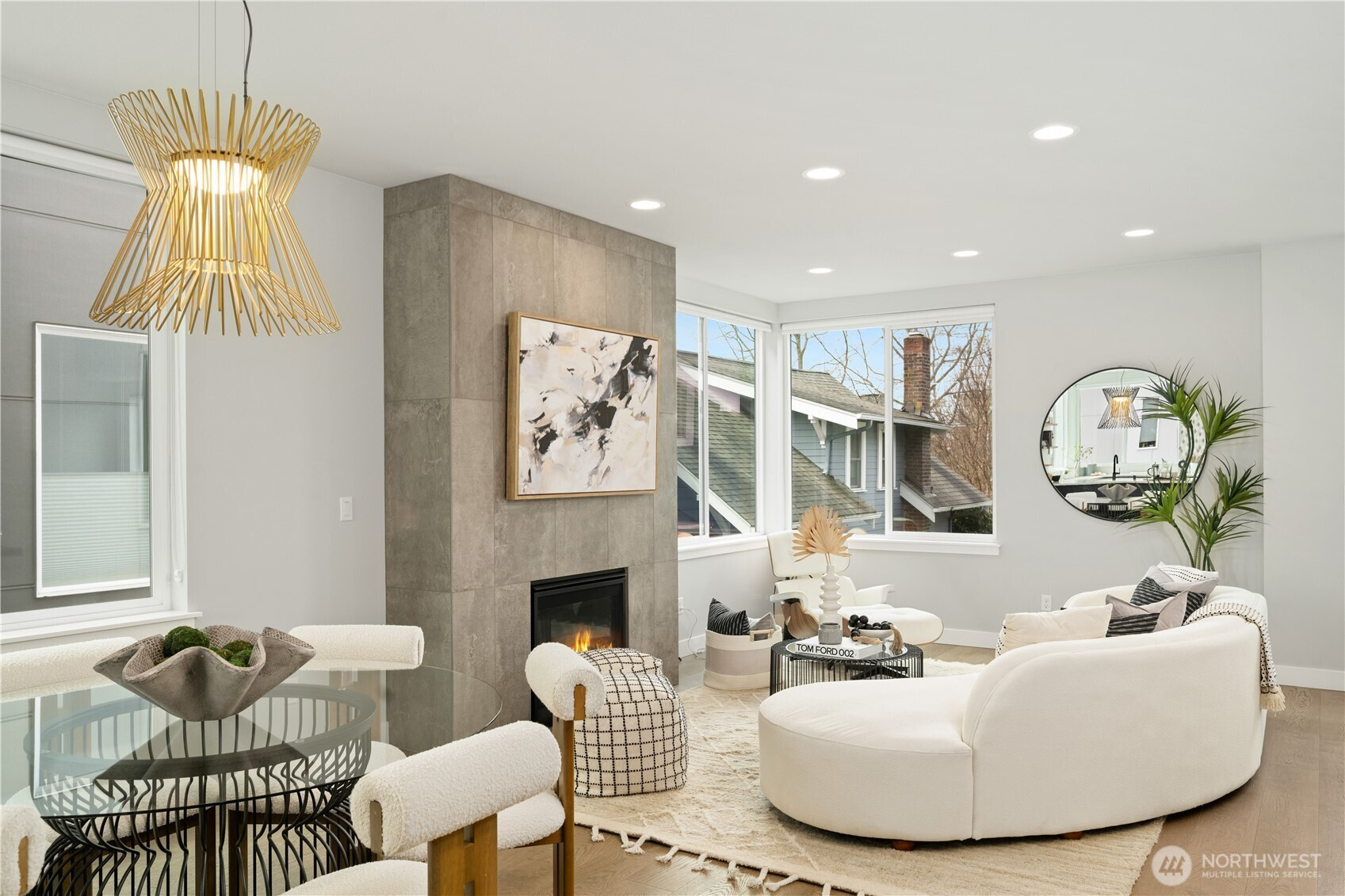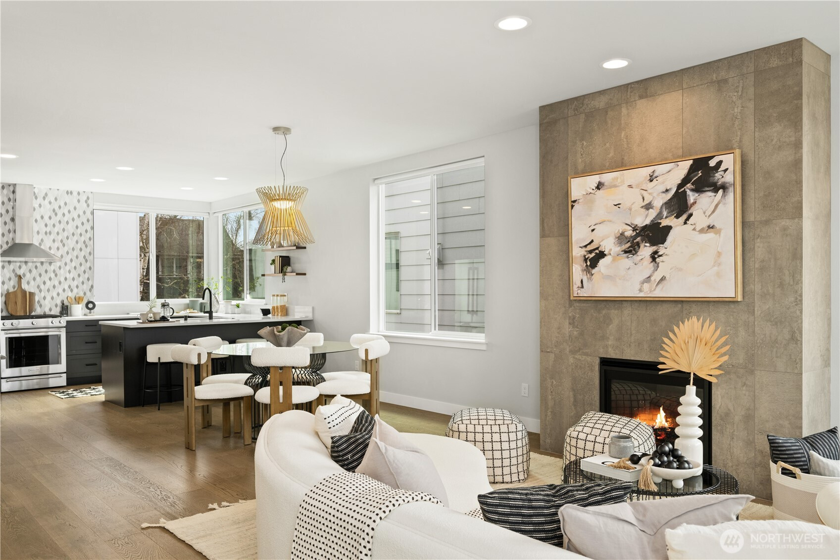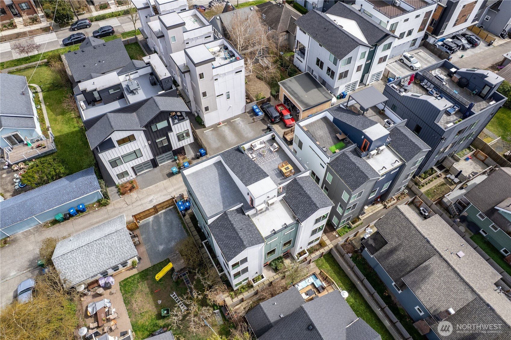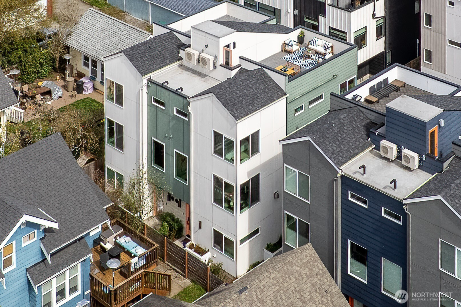 Welcome to this exceptional Crown Hill townhome, offering an expansive and rarely found floor plan. This upscale 3-bedroom, 3-bath residence blends modern comfort with elevated designer touches. The gourmet open-concept kitchen includes high-end finishes, sleek cabinetry, statement lighting, and a gas range—it’s perfect for entertaining or unwinding after a busy day. The light-filled living room features a cozy gas fireplace, while the mini-split A/C system ensures year-round comfort. The primary suite is a true retreat and boasts vaulted ceilings, double walk-in closets, and a spa-inspired ensuite bath. Down the hall is a secondary bedroom and full bathroom. The entry-level bedroom and ensuite bath creates flexibility for guests or a private home office. Step up to the private rooftop terrace to enjoy sweeping views of Mount Rainier, downtown Seattle, and the Olympic Mountains. Located near the vibrant amenities of Ballard and Crown Hill, you’re just minutes from popular restaurants, Larsen’s Bakery, Fresh Fish Co, and Beast & Cleaver. Visit the Ballard Farmers Market for local goods every weekend, take in a scenic beach walk or sunset views at Golden Gardens Park - all close to home. The convenience of a 1-car garage wired for EV charging outlet is unbeatable. This home provides an excellent blend of space, style, and city connectivity. A rare opportunity to own a luxurious, design-forward townhome in one of Seattle’s most desirable neighborhoods.