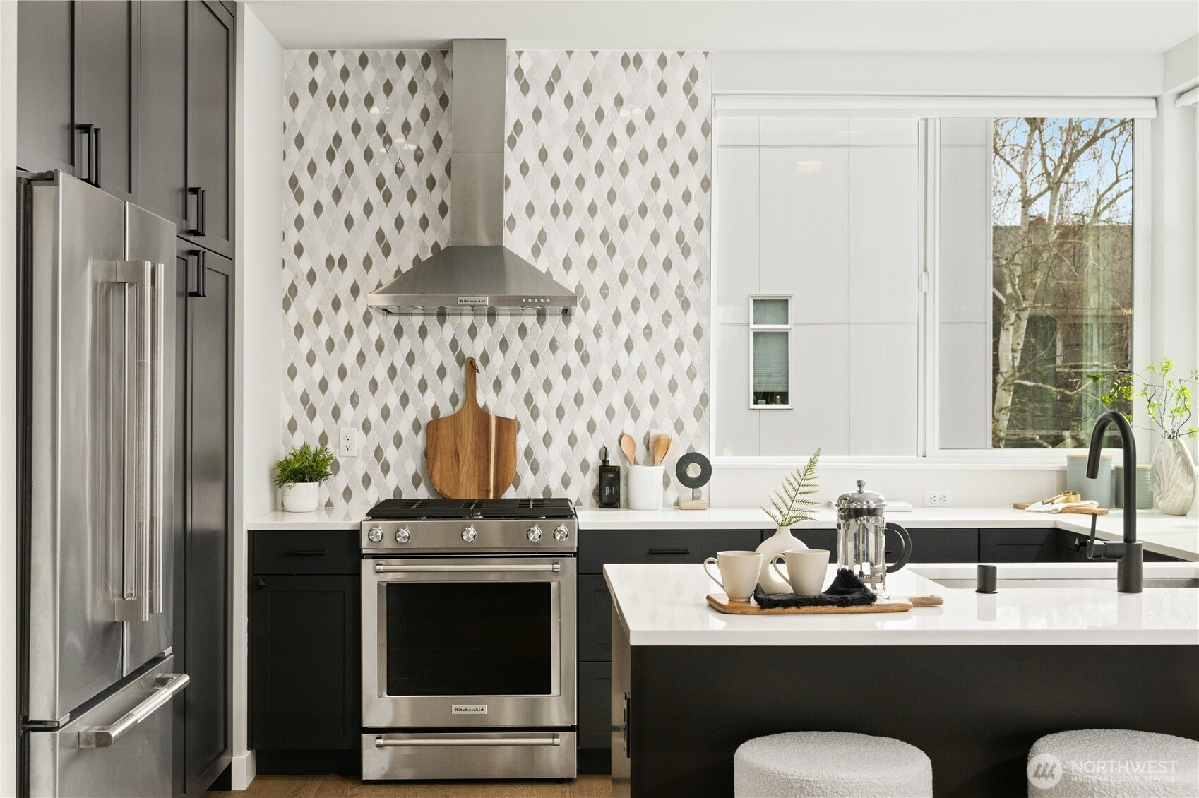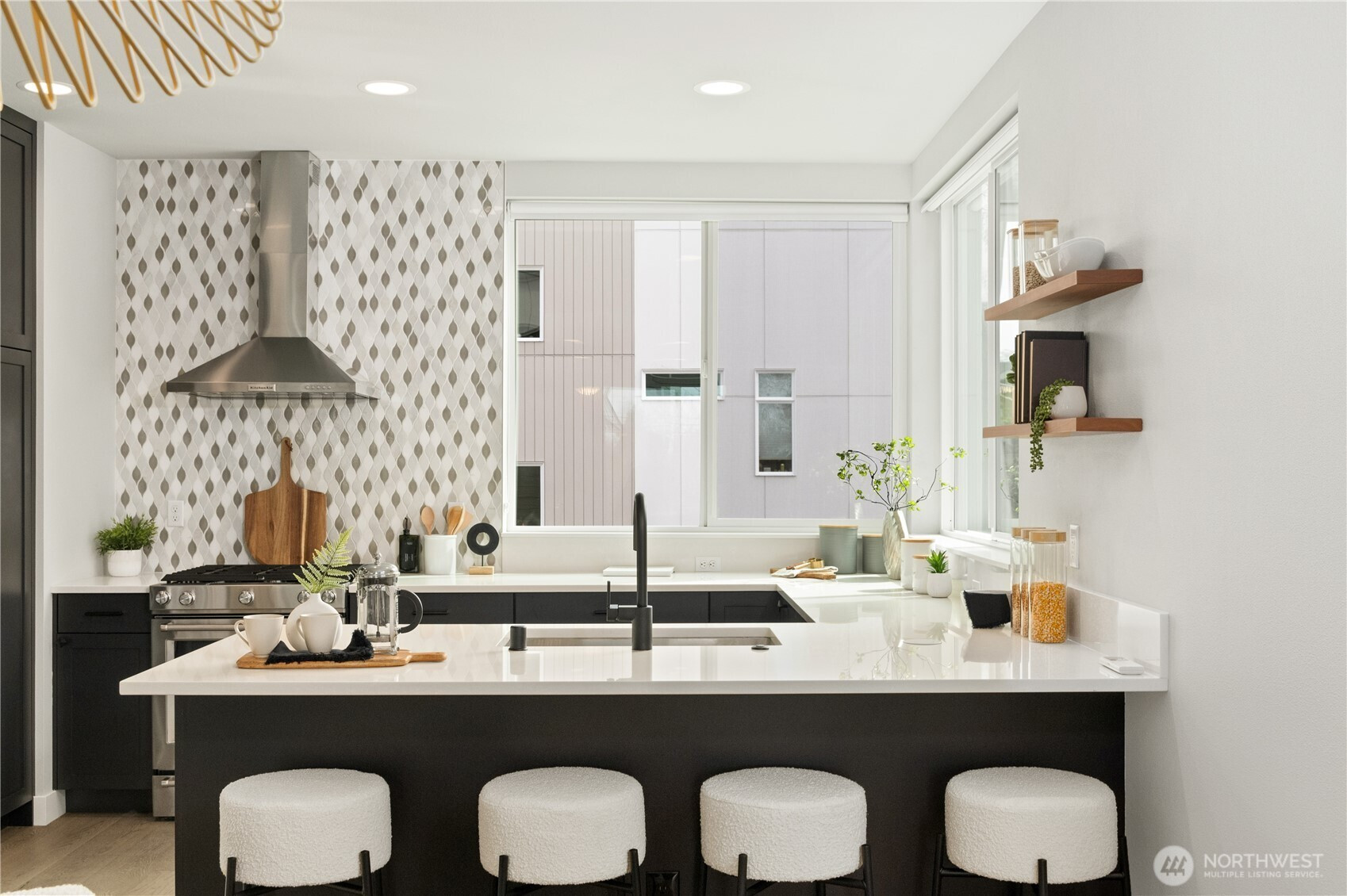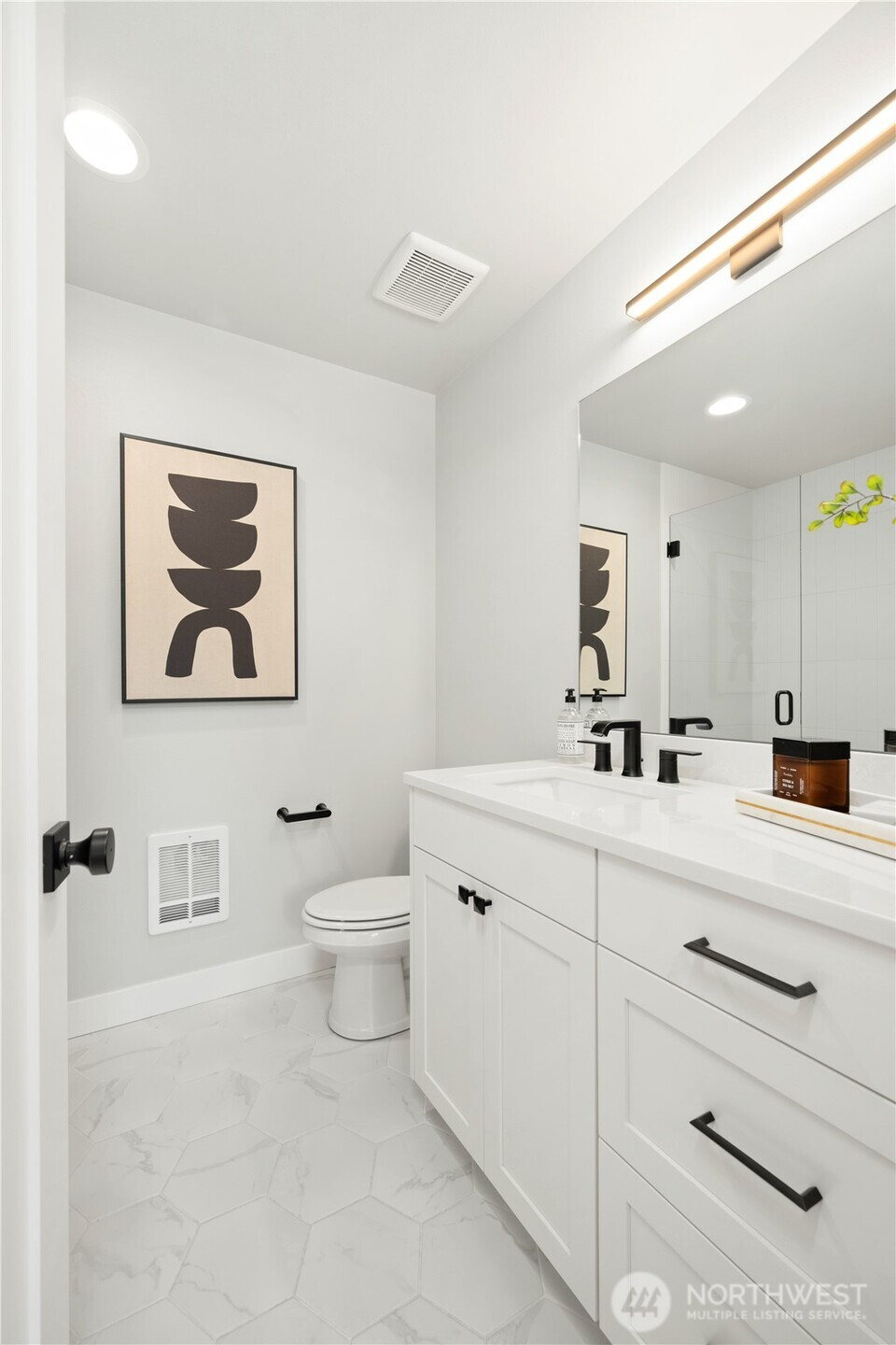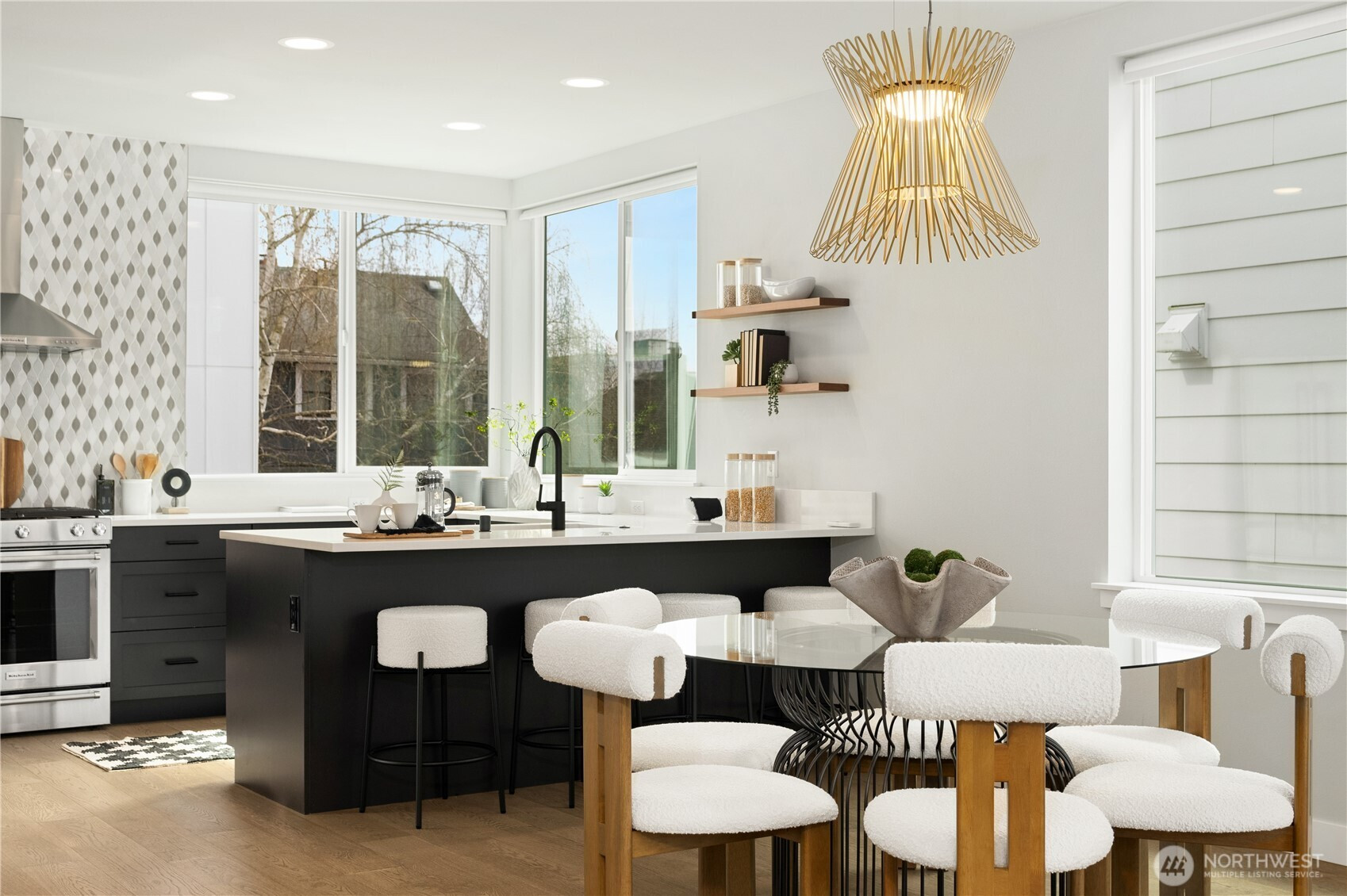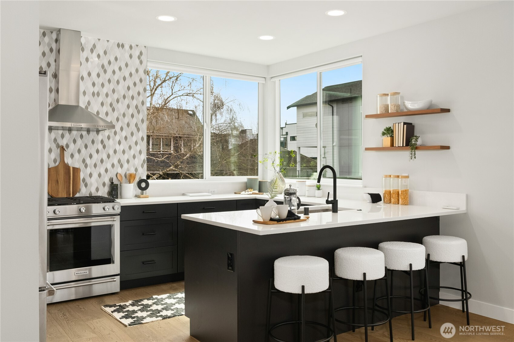 Welcome to this exceptional Crown Hill townhome, offering an expansive and rarely found floor plan. This upscale 3-bedroom, 3-bath residence blends modern comfort with elevated designer touches. The gourmet open-concept kitchen includes high-end finishes, sleek cabinetry, statement lighting, and a gas range—it’s perfect for entertaining or unwinding after a busy day. The light-filled living room features a cozy gas fireplace, while the mini-split A/C system ensures year-round comfort. The primary suite is a true retreat and boasts vaulted ceilings, double walk-in closets, and a spa-inspired ensuite bath. Down the hall is a secondary bedroom and full bathroom. The entry-level bedroom and ensuite bath creates flexibility for guests or a private home office. Step up to the private rooftop terrace to enjoy sweeping views of Mount Rainier, downtown Seattle, and the Olympic Mountains. Located near the vibrant amenities of Ballard and Crown Hill, you’re just minutes from popular restaurants, Larsen’s Bakery, Fresh Fish Co, and Beast & Cleaver. Visit the Ballard Farmers Market for local goods every weekend, take in a scenic beach walk or sunset views at Golden Gardens Park - all close to home. The convenience of a 1-car garage wired for EV charging outlet is unbeatable. This home provides an excellent blend of space, style, and city connectivity. A rare opportunity to own a luxurious, design-forward townhome in one of Seattle’s most desirable neighborhoods.