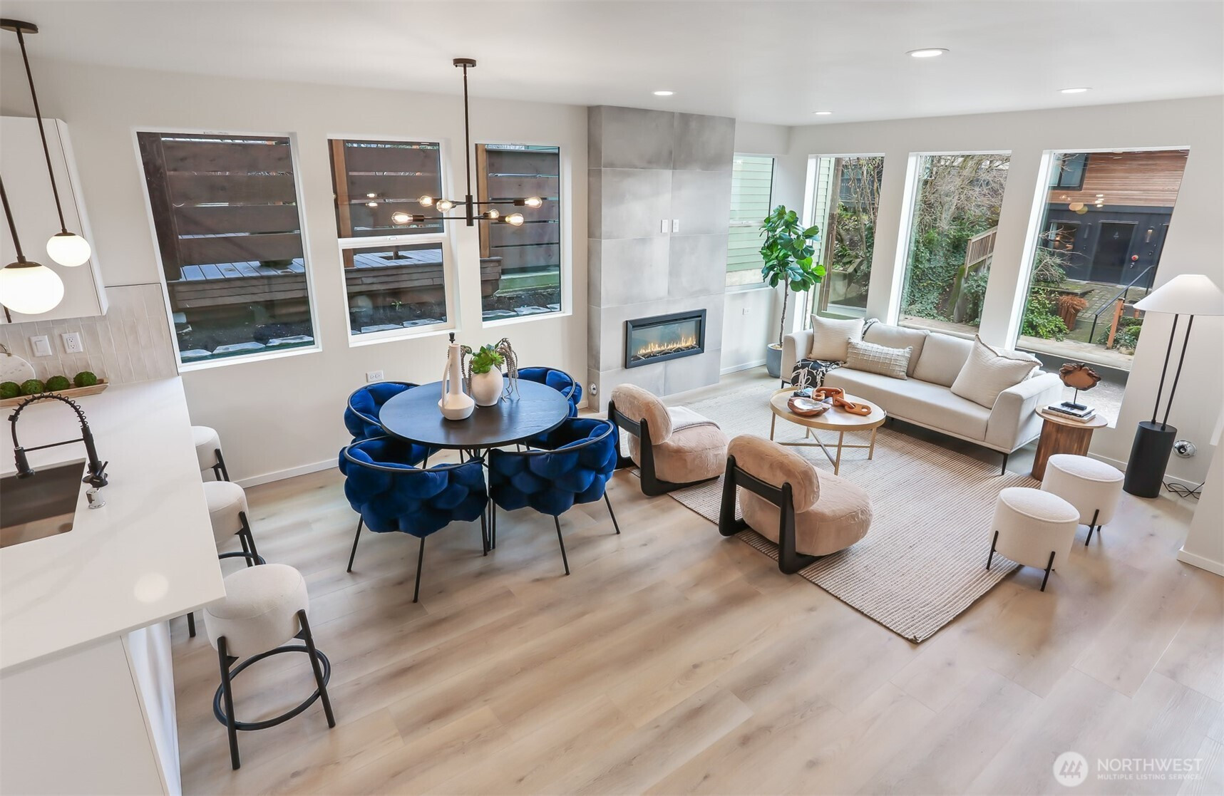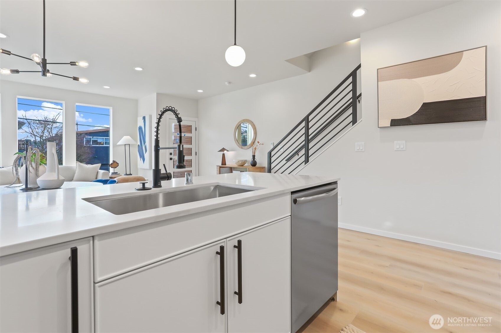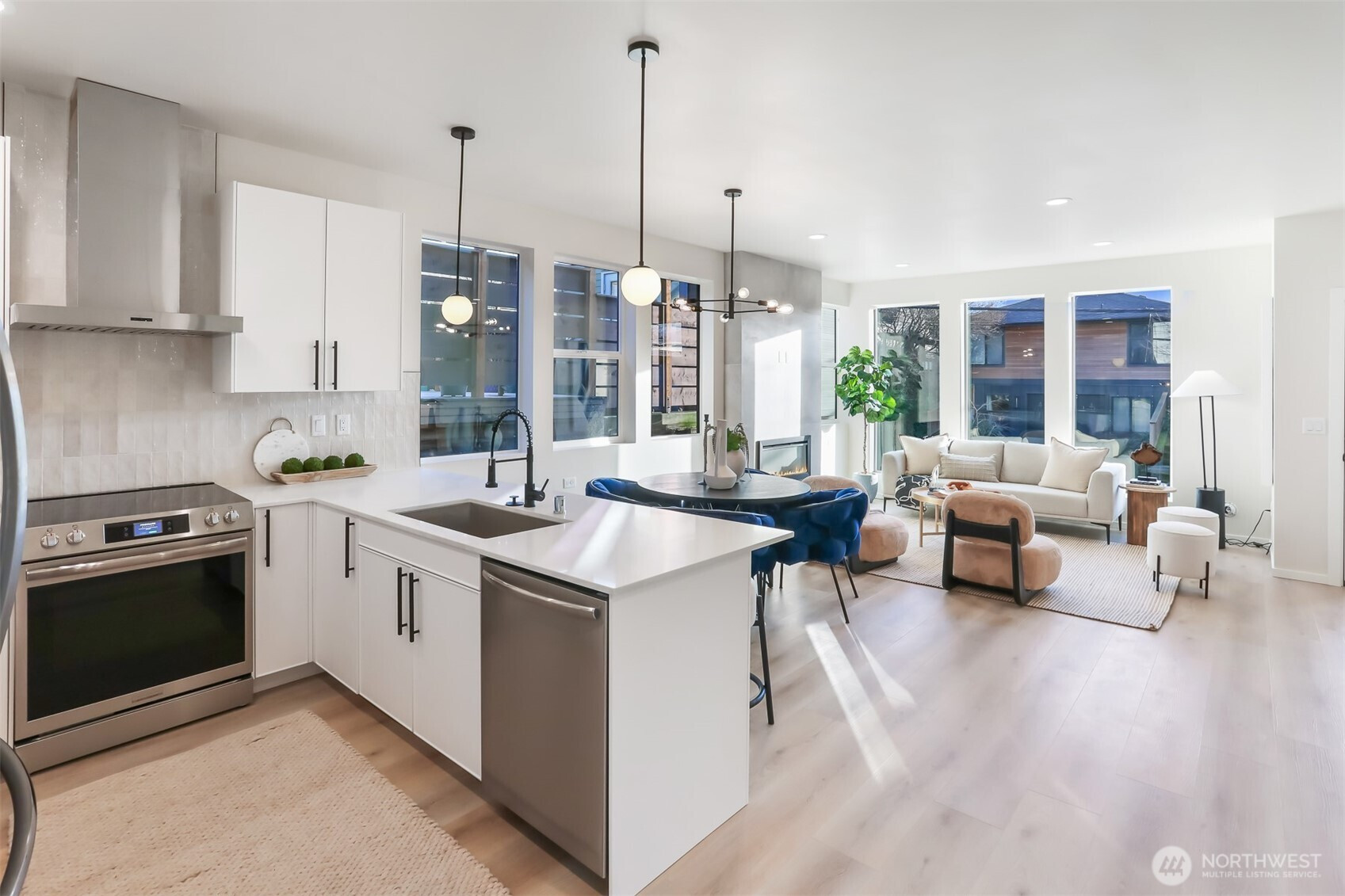 Well-built new townhomes by the long term local builder New City Homes. Quiet street with quick access to Hwy 99 and freeways. No Homeowners Dues! Spacious living room, dining room, bright open kitchen with quartz countertops, stainless steel appliances and sunny southern exposure windows. Upstairs are four total bedrooms, two baths including a large primary bedroom with walk-in closet. Bright rooftop deck with nice outlook and views of the Olympic Mountains. Secure EV ready parking pad. Popular Ballard location nearby Gilman Playground and Pickle Ball Courts. Live healthy in this 4 star Built Green home. Close to lively Ballard breweries and eateries, farmers market, PCC and Burke Gilman Trail. Move right in and be a part of the scene!