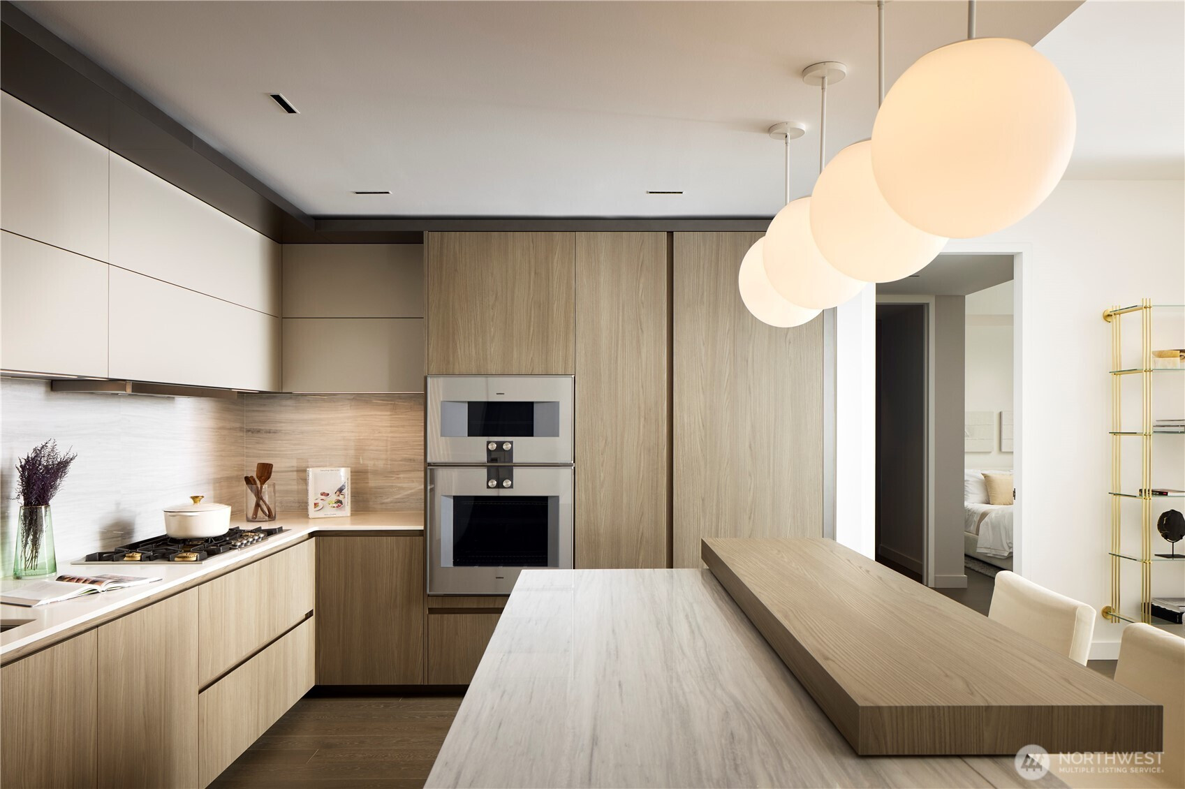 Perched above the prestigious InterContinental hotel in downtown Bellevue, this 2 bedroom luxury condo offers a blend of sophistication, comfort and innovation. Part of a collection of 141 estate homes, each residence is thoughtfully designed with smart configurations and refined materials. Outfitted with products from the world's leading kitchen, closet and bathroom brands, this home offers elegant living spaces complemented by city views. Residents enjoy a host of amenities including a private lobby, serene lounge, and state of the art fitness center. Here luxury and thoughtful design create an unparalleled living experience.