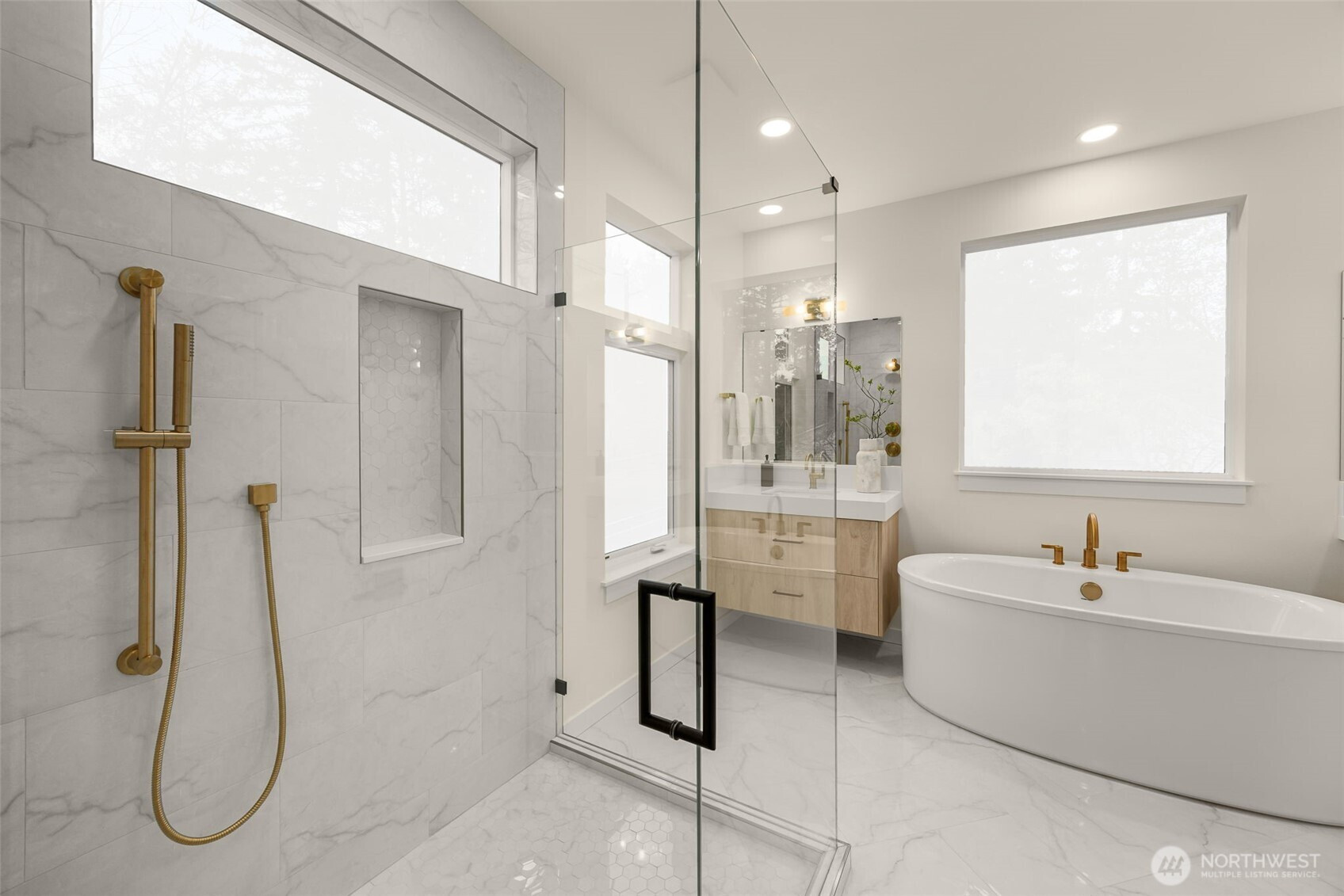 **3.875% SELLER PAID interest rate buydown program available NOW for a limited time to qualified buyer** Introducing Luna Row Cottages, a 3-home new construction community in Kirkland. Each detached residence offers the owner the independence of a single-family home with separate utilities, a garage with EV ready wiring, dedicated on-site parking, and a fully fenced yard. Step inside to the main level with souring 10-foot ceilings and wide-plank hardwood floors, blending energy efficiency & modern design. This open-concept home flows seamlessly, thoughtfully designed to capture changing natural light, open skies and expansive moon views, creating a warm and inviting atmosphere throughout. Retreat upstairs to a relaxing primary suite with a chic spa-inspired luxurious bathroom, which includes a large glass-enclosed walk-in shower, soaking tub, sleek and separate double vanities and a generous walk-in closet, along with two more bedrooms, another full bath, and a conveniently located laundry room. Rarely found in new construction, this balanced location offers both convenience and connectivity to nature, within walking distance to parks & miles of wooded trail systems, minutes to Lake Washington waterfront & beaches as well as shopping and dining at The Village at Totem Lake. Convenient access to I-405 corridor makes commuting simple while enjoying peace-of-mind in your brand-new home surrounded by the natural beauty of beloved Finn Hill. Welcome home!