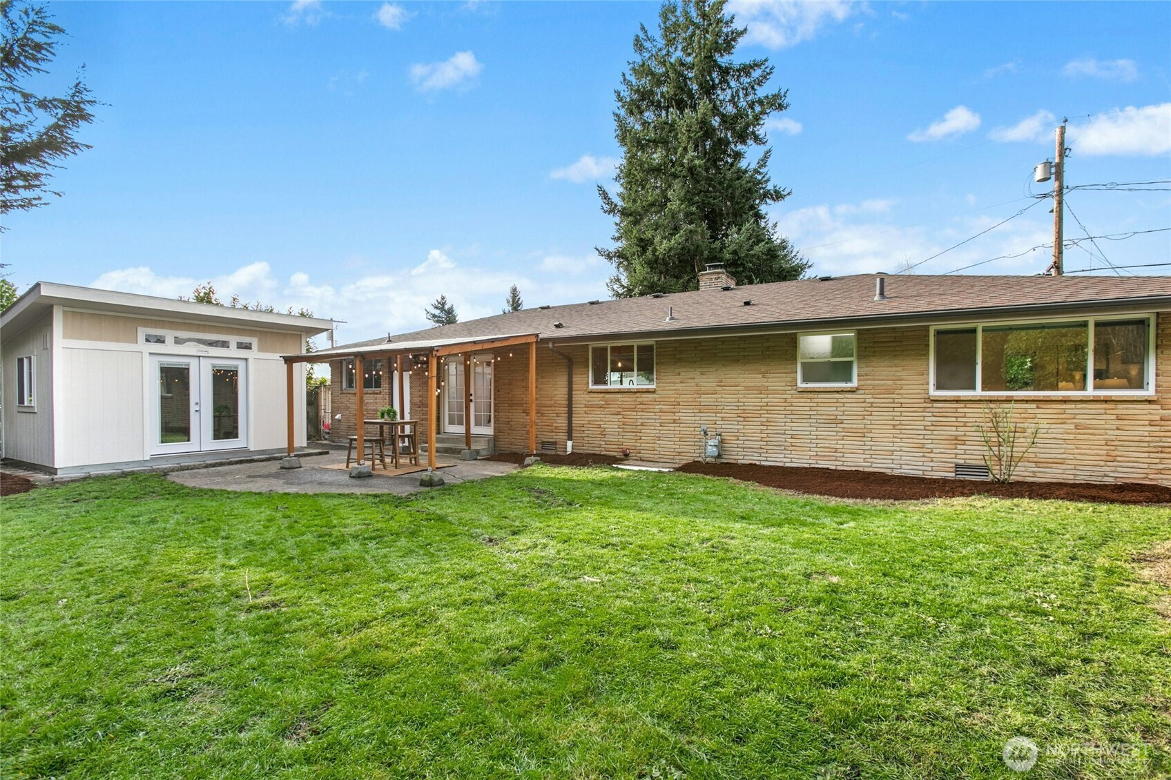 Experience timeless one-level living with thoughtful updates throughout. Enjoy beautifully refreshed landscaping, hardwood floors, and an updated kitchen featuring a stunning tile backsplash, ample prep space, and generous storage. The inviting living area showcases charming wood beams, while French doors off the kitchen open to a covered patio—perfect for year-round enjoyment. Outdoor perks include RV parking, space for a garden, and a versatile Tuff Shed ideal for storage, a home office, or flex space. Updated bathrooms complete this well-maintained and move-in ready home. Seller procured inspection report for your peace of mind.