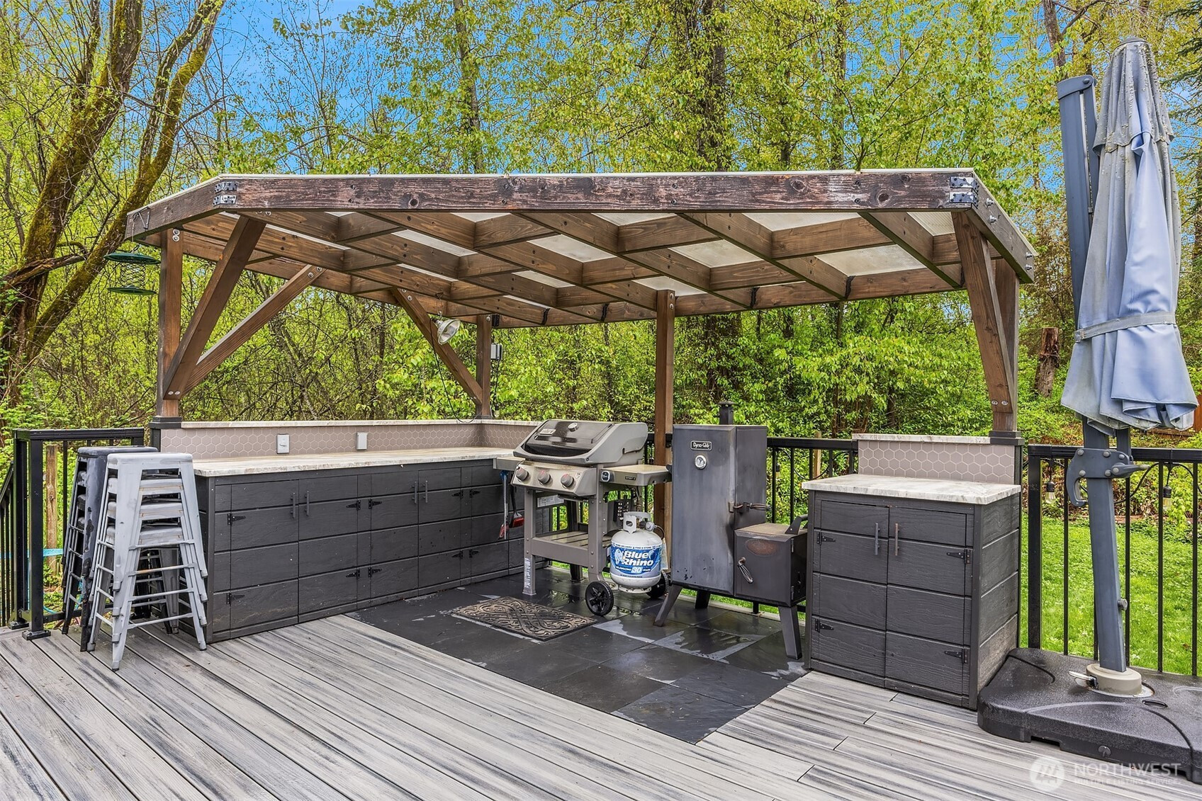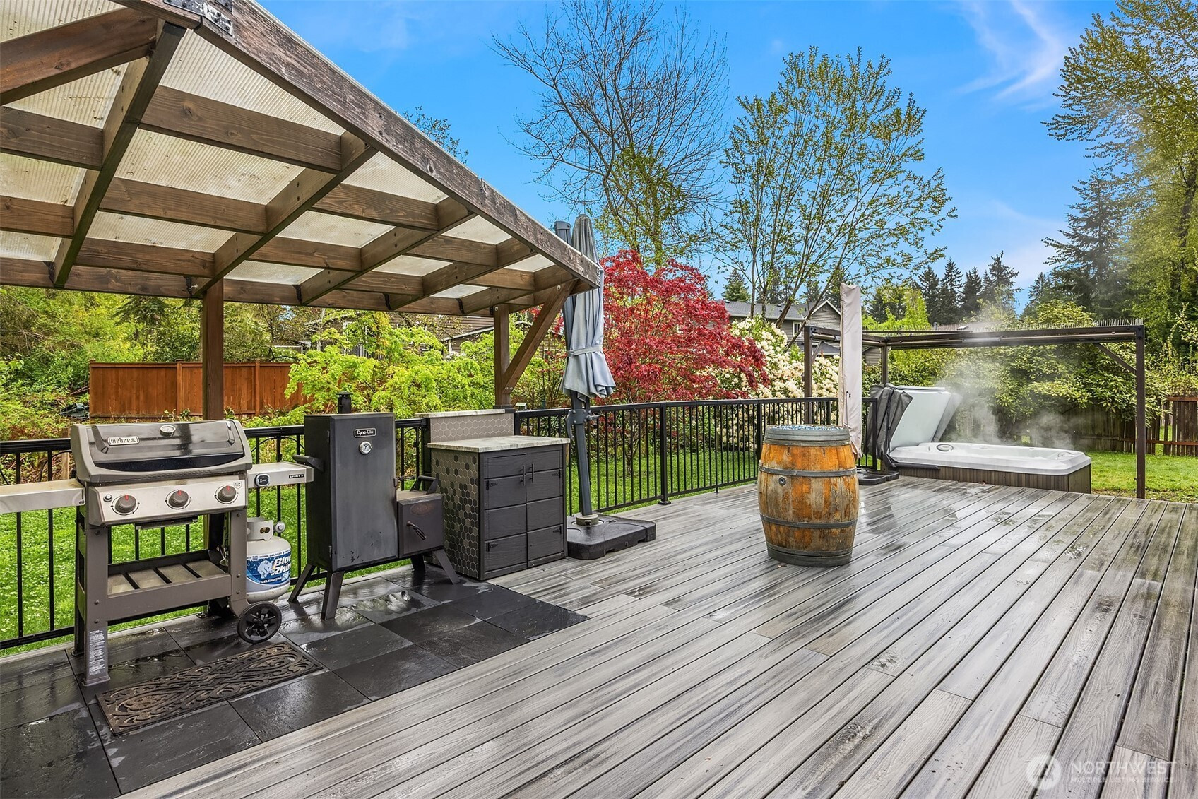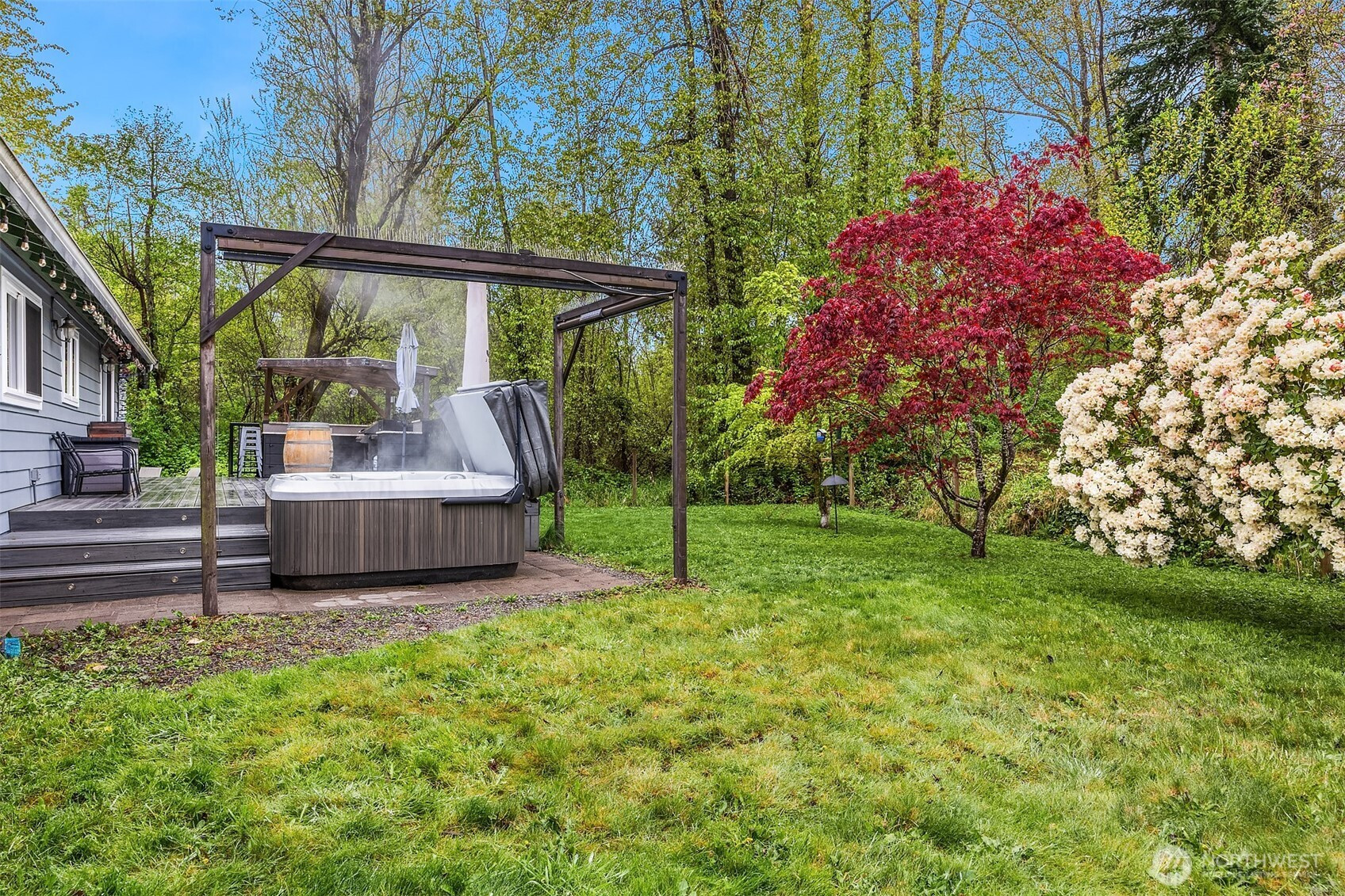 Welcome home to this beautifully updated 3-bedroom, 1.75-bath rambler in the heart of Kirkland! This light-filled home features a south-east facing entry, gas fireplace, and a spacious kitchen perfect for any chef. Step outside to your own backyard oasis, complete with a large back porch, hot tub, and a covered BBQ area designed for year-round entertaining. Gardeners will love the raised-bed vegetable garden and vibrant rhododendrons. Nature lovers will enjoy the plentiful birds and frogs. Additional highlights include functioning solar panels, an attached 2-car garage, and ample space for RV parking. Ideally located just minutes from local parks and amenities. Truly a must-see!