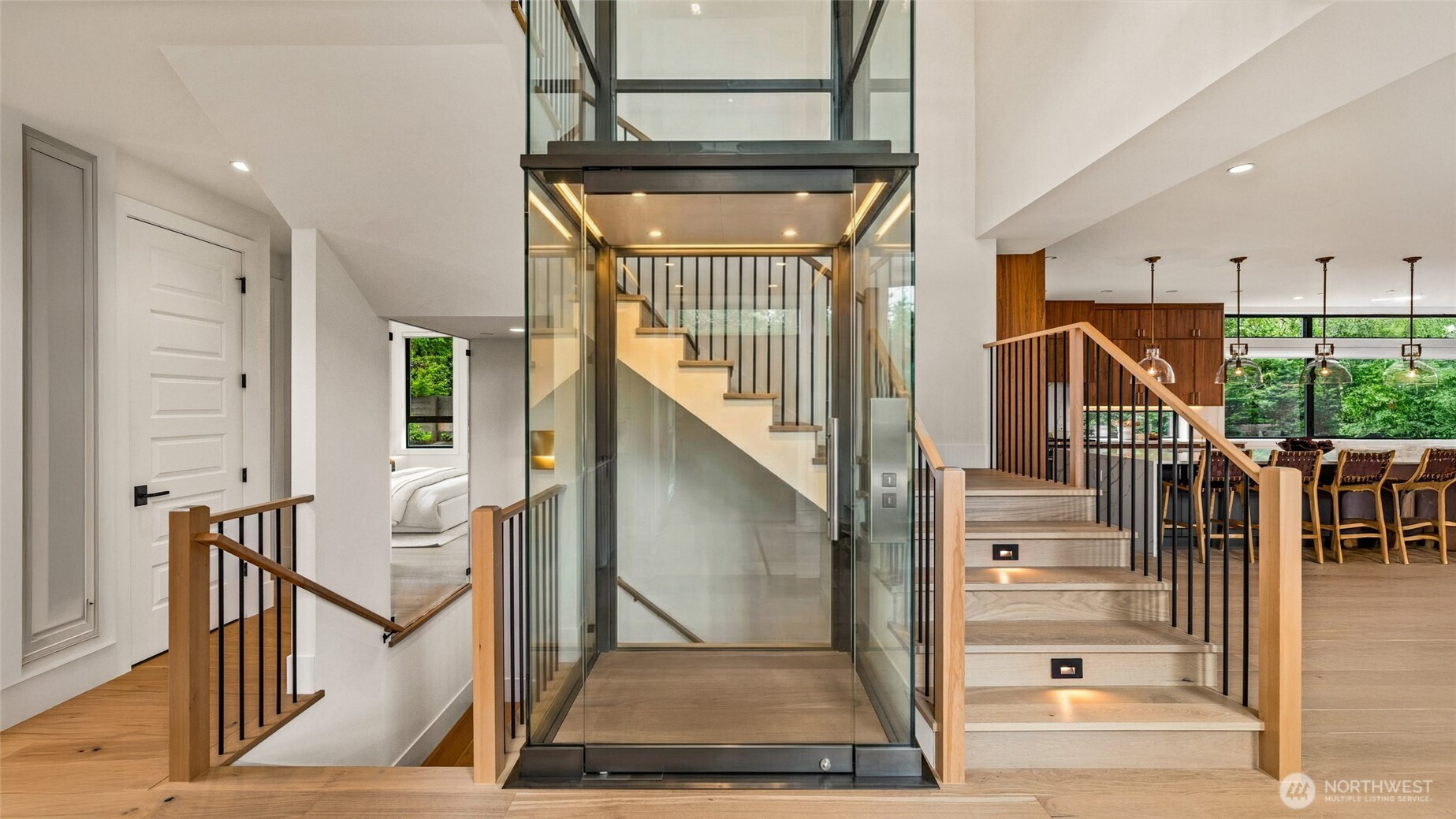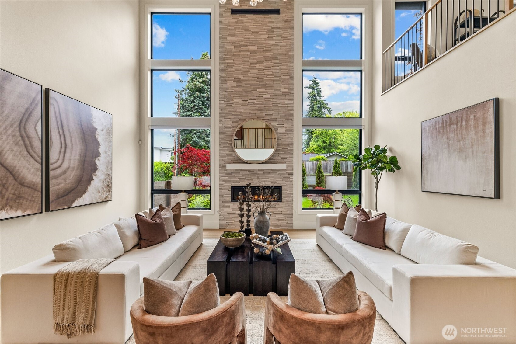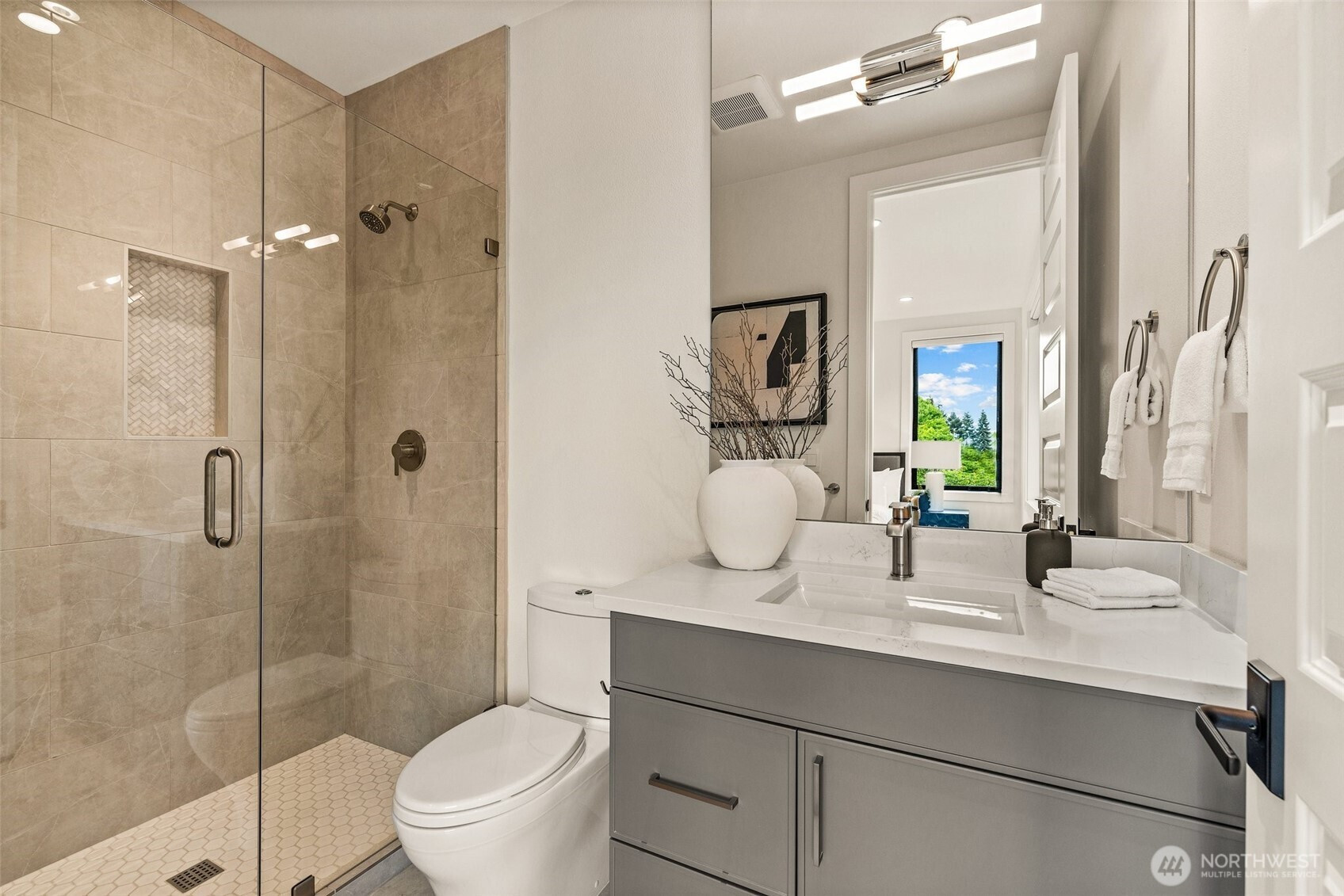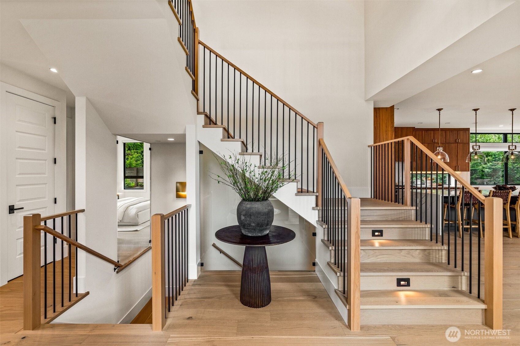Refined modern luxury in the heart of Medina Heights. This contemporary home offers exceptional design, privacy, and livability on a quiet, walkable street with views of DT Bellevue. Sun-filled interiors feature soaring ceilings, expansive windows, and high-end finishes throughout. The open-concept main level is ideal for entertaining, highlighted by a chef’s kitchen, private office, and en-suite guest suite. Upstairs, the serene primary retreat includes a spa-inspired bath and private deck, along with additional en-suite bedrooms and a loft. The lower level provides flexible living with theater, wine room, and bonus space. Better than new, thoughtfully designed, and ideally located minutes from old Bellevue and top-rated schools.