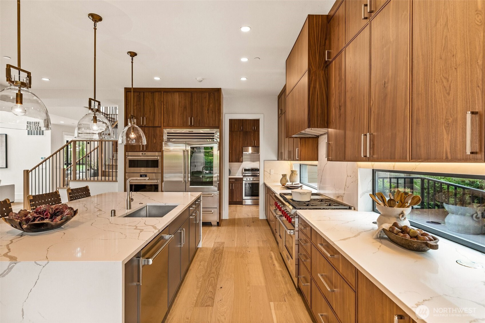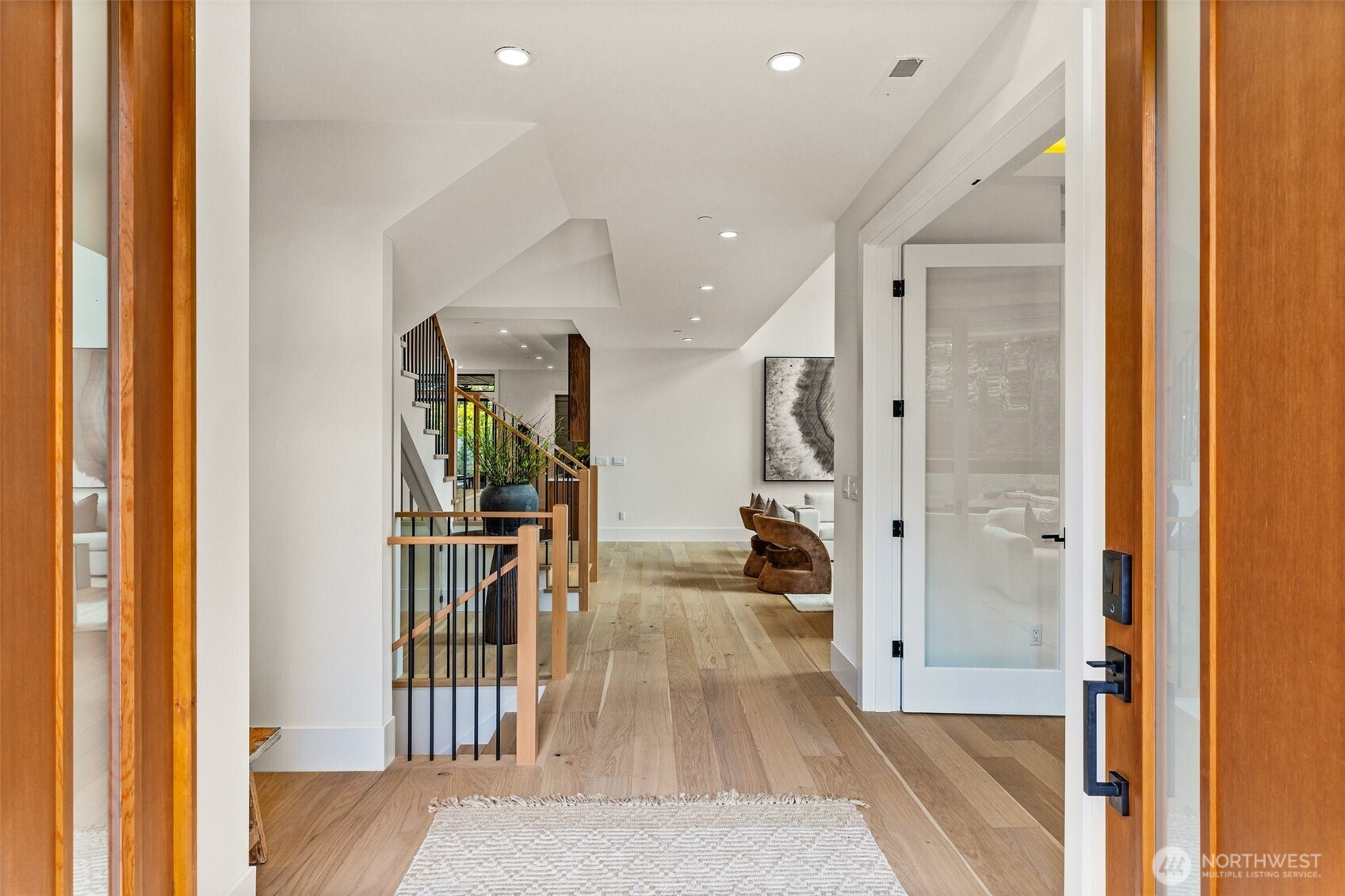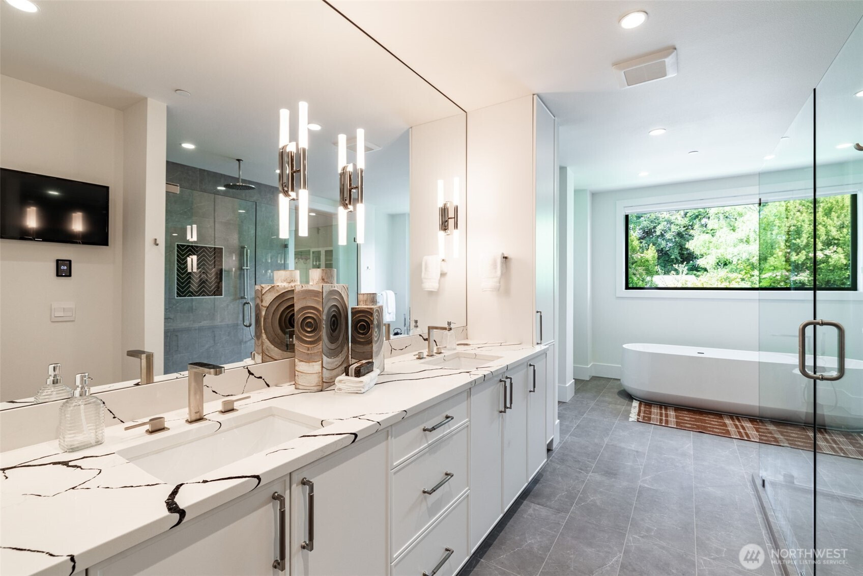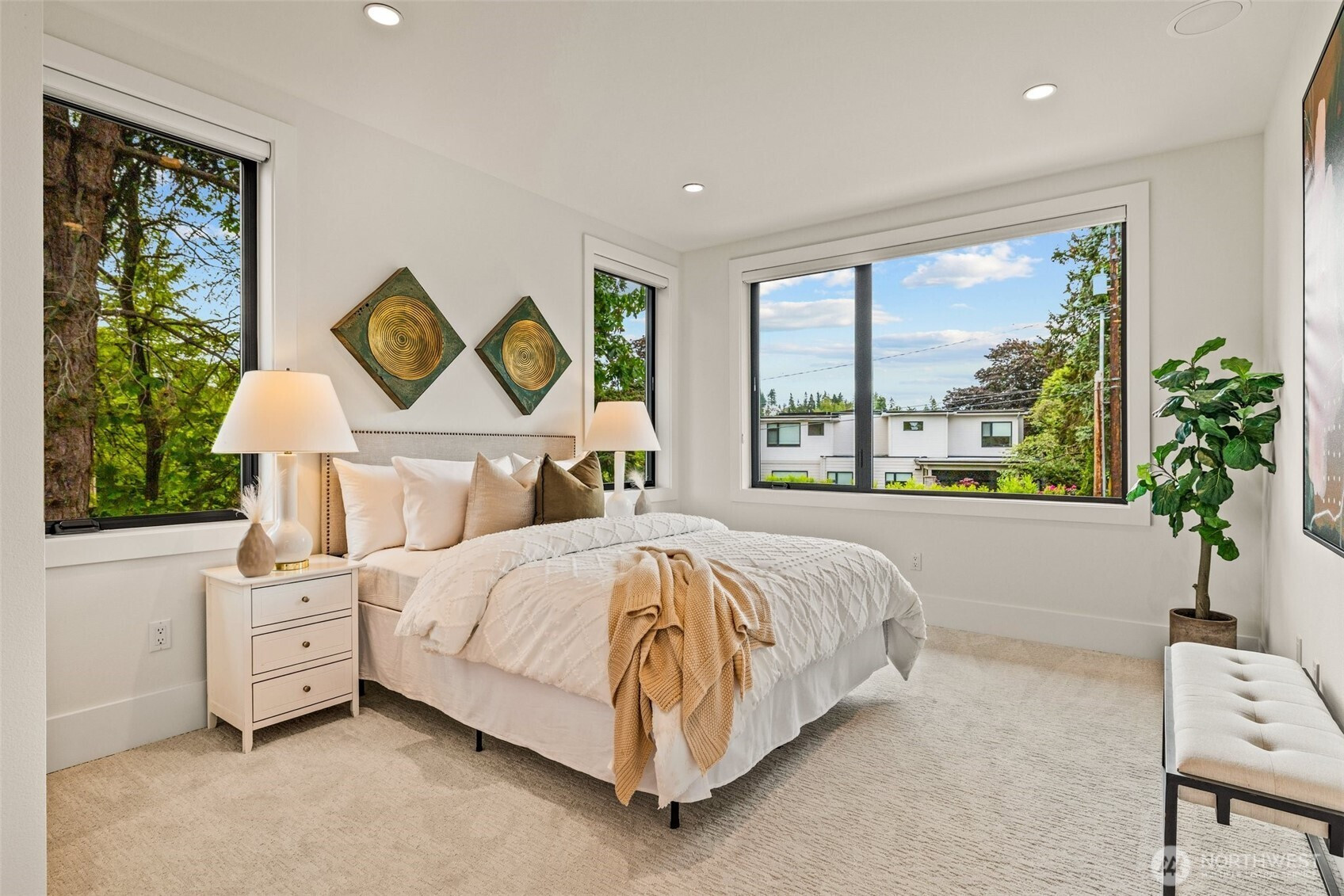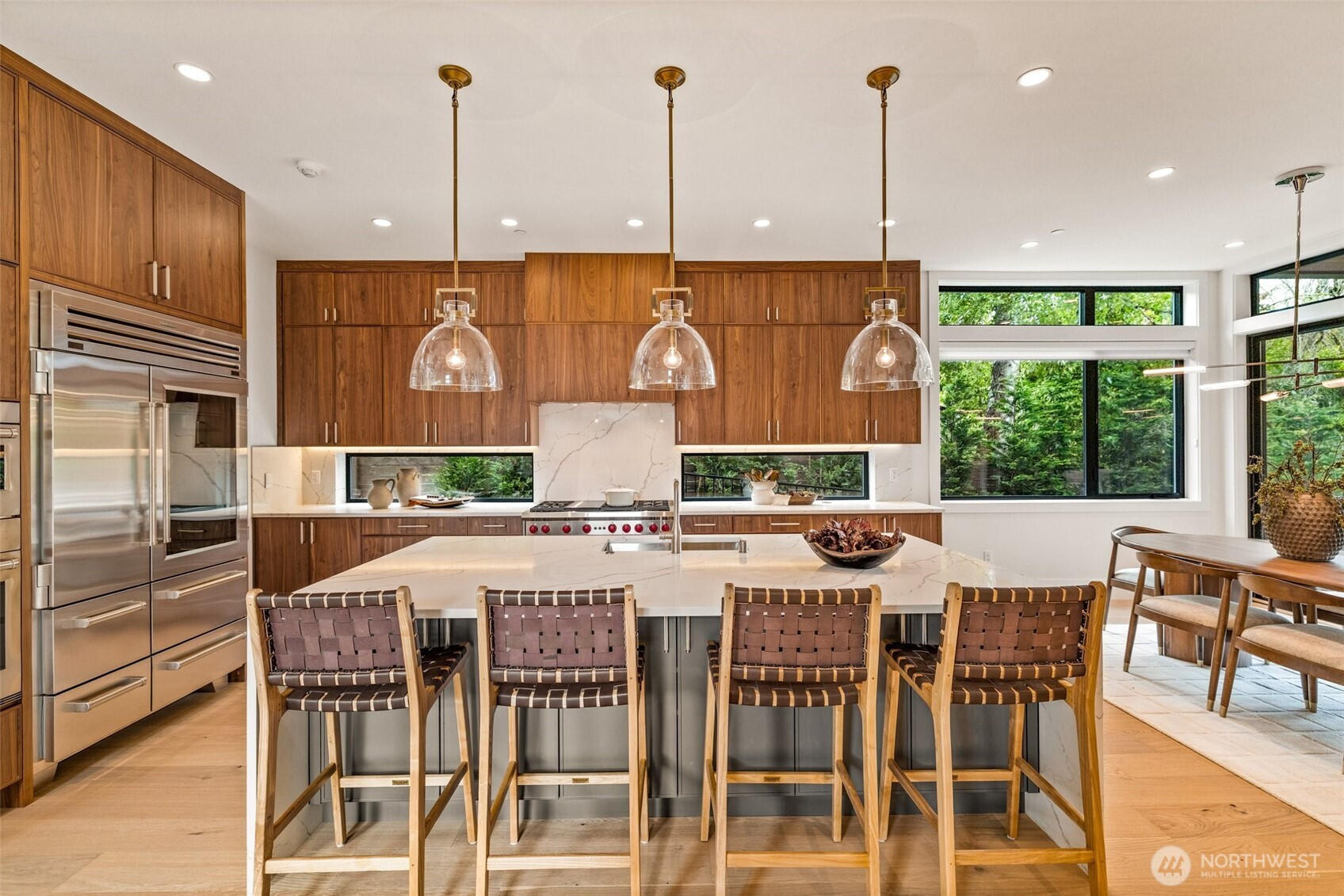 Refined modern luxury in the heart of Medina Heights. This contemporary home offers exceptional design, privacy, and livability on a quiet, walkable street with views of DT Bellevue. Sun-filled interiors feature soaring ceilings, expansive windows, and high-end finishes throughout. The open-concept main level is ideal for entertaining, highlighted by a chef’s kitchen, private office, and en-suite guest suite. Upstairs, the serene primary retreat includes a spa-inspired bath and private deck, along with additional en-suite bedrooms and a loft. The lower level provides flexible living with theater, wine room, and bonus space. Better than new, thoughtfully designed, and ideally located minutes from old Bellevue and top-rated schools.