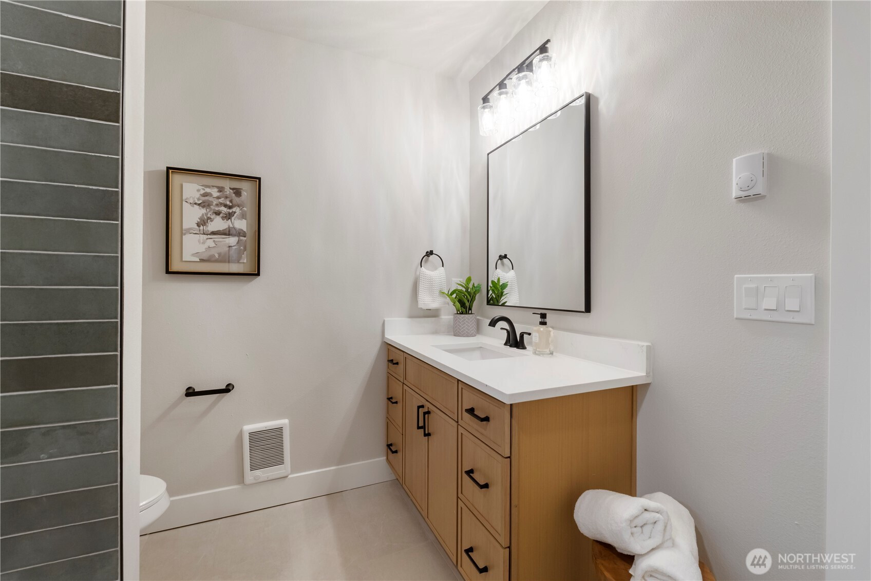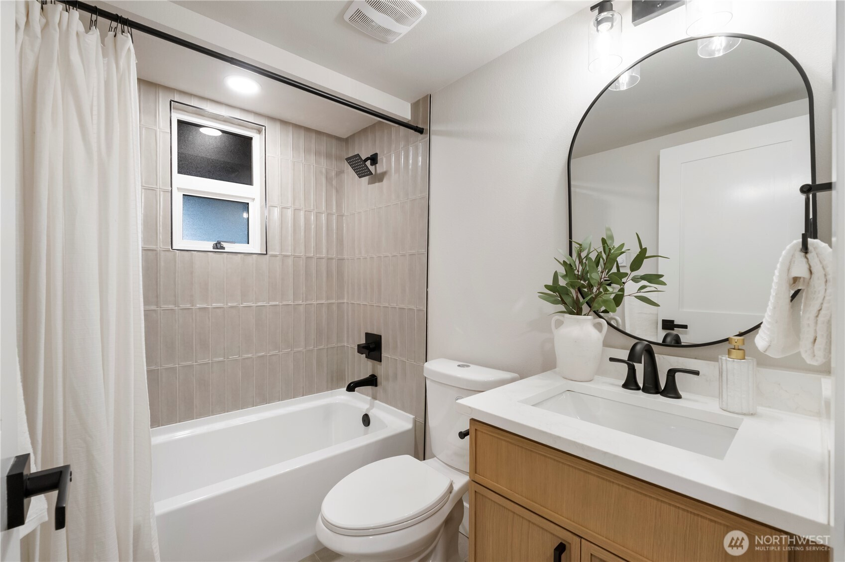 Experience modern luxury in this beautifully remodeled and fully permitted 3-bedroom, 2-bathroom home in Burien. The open floor plan shines with a brand new kitchen featuring premium finishes, flowing into a spacious living area. Every detail is updated, including new plumbing, electrical, and a ductless mini-split for year-round comfort and efficiency. Includes wood based Waterproof Hybrid Resilient Plank on the first floor & fan forced zonal heating.The fully finished basement adds versatile living space, while a dedicated bonus room serves as the perfect home office. Step outside to your private, fully fenced backyard, complete with an updated deck ideal for entertaining. This turnkey home combines contemporary style with peace of mind.
