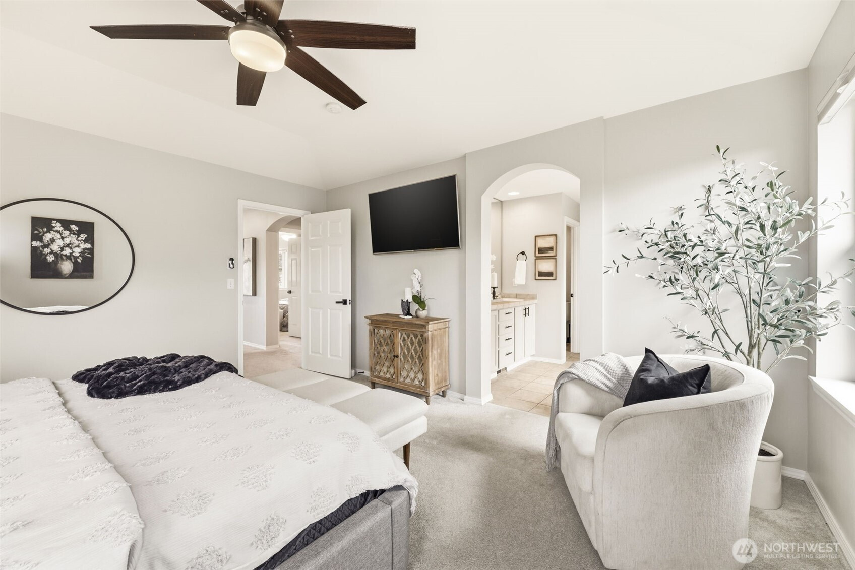 Tucked into a welcoming neighborhood just minutes from downtown Bothell, this home blends comfort, flexibility, and everyday convenience. The open-concept kitchen and living room create a bright, inviting space ideal for entertaining and daily living. Evenings are unforgettable, with golden-hour light pouring into the kitchen and family room and stunning sunsets that make ordinary moments feel special. A deck off the breakfast nook seamlessly extends the living space outdoors. The main-floor bedroom offers versatility as a guest room or home office. Upstairs, a spacious loft provides the perfect movie retreat or play area, while two additional bedrooms and a separate full bath make hosting effortless. The primary suite is generously sized and features a beautiful ensuite bath and newly remodeled closet system designed for exceptional organization. An unfinished crawl space offers a blank canvas for future customization or additional storage. Enjoy a true neighborhood feel where neighbors wave and stop to say hello. Walk to the grocery store, explore Wayne Park for dog walks, take sunset strolls past open farmland, or run to Log Boom Park and Lake Washington in the summer. Conveniently located near the highly rated Northshore Schools, just minutes to downtown Bothell dining and amenities, approx. 10–15 mins to Google Kirkland, 20–30 mins to South Lake Union and downtown Bellevue, and 45–60 mins to Sea-Tac, with easy access to I-405 and light rail.