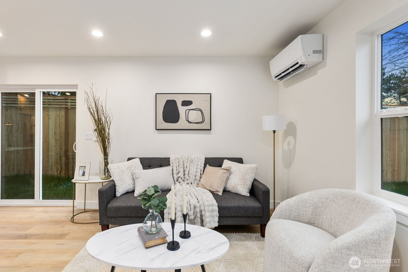 Quiet Living in Maple Leaf — Engineered for ItPremium sound-attenuating insulation keeps interior noise at a measured 30-40 dB — library-quiet — while you're steps from NE 85th and minutes from Northgate Light Rail, I-5, and everything that makes Maple Leaf one of Seattle's most livable neighborhoods. You get the convenience without the compromise.The layout is efficient and livable: an open main floor with a chef's kitchen, quartz countertops, and a powder room flows to a private, fully fenced yard — genuinely rare in new construction at this price. Upstairs, three bedrooms including a primary suite with walk-in closet, plus mini-splits throughout for year-round comfort. Attached garage with EV charging, a second driveway parking spot, 1-2-10 builders warranty, and three years of builder-prepaid HOA dues round it out. Welcome to the most accessible new construction in seattle.