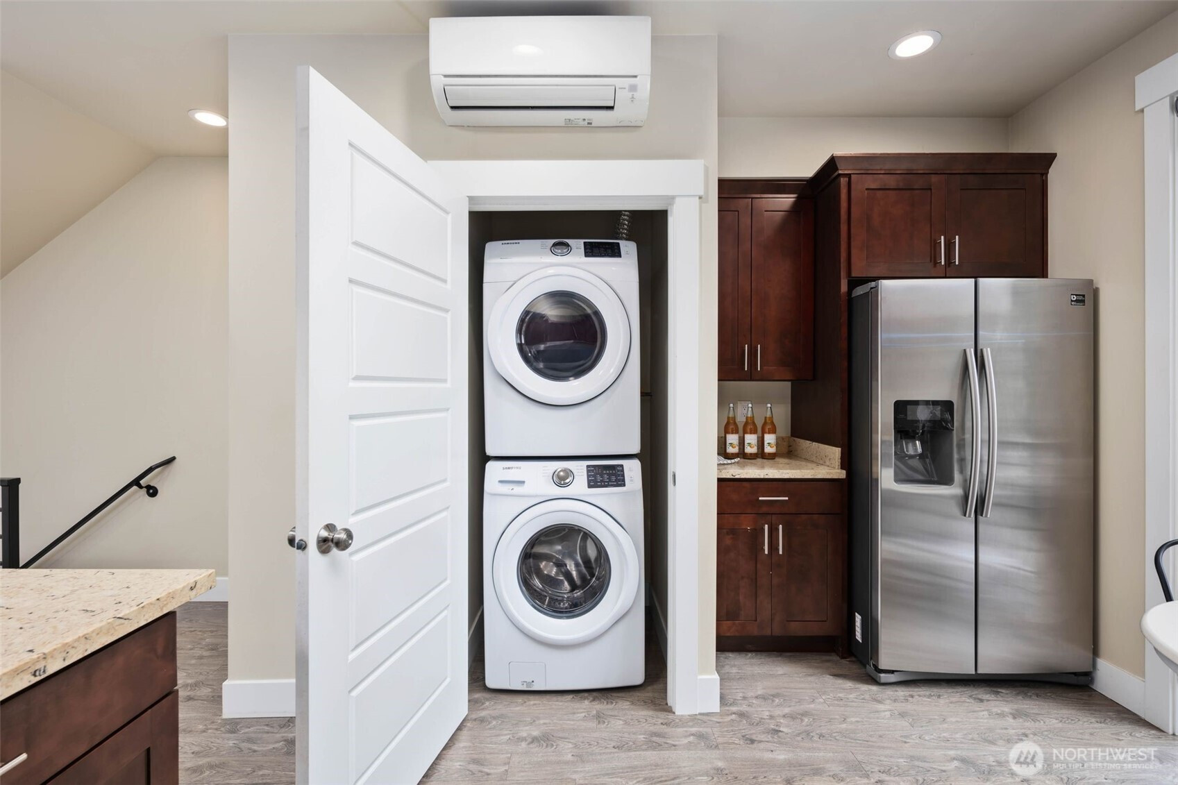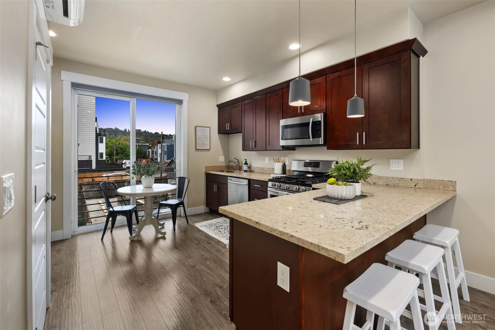 Welcome to this stylish 2-bedroom, 2-bathroom Modern Rowhome perfectly located in the heart of South Seattle—just minutes from West Seattle, Georgetown, Downtown, Sea-Tac Airport and Freeways. Across from a park, this home offers both privacy and convenience. Step inside to find a bright, open layout with oversized windows, custom window coverings & abundant natural light. The open kitchen features a gas range & all appliances included, while mini-split systems provide efficient heating and cooling year-round. Enjoy sweeping sunset & city views from your private rooftop deck, perfect for relaxing or entertaining. A Private 1-car Attached Garage w/ extra storage space & ample street parking makes city living easy. No HOA + Pre-Inspected!