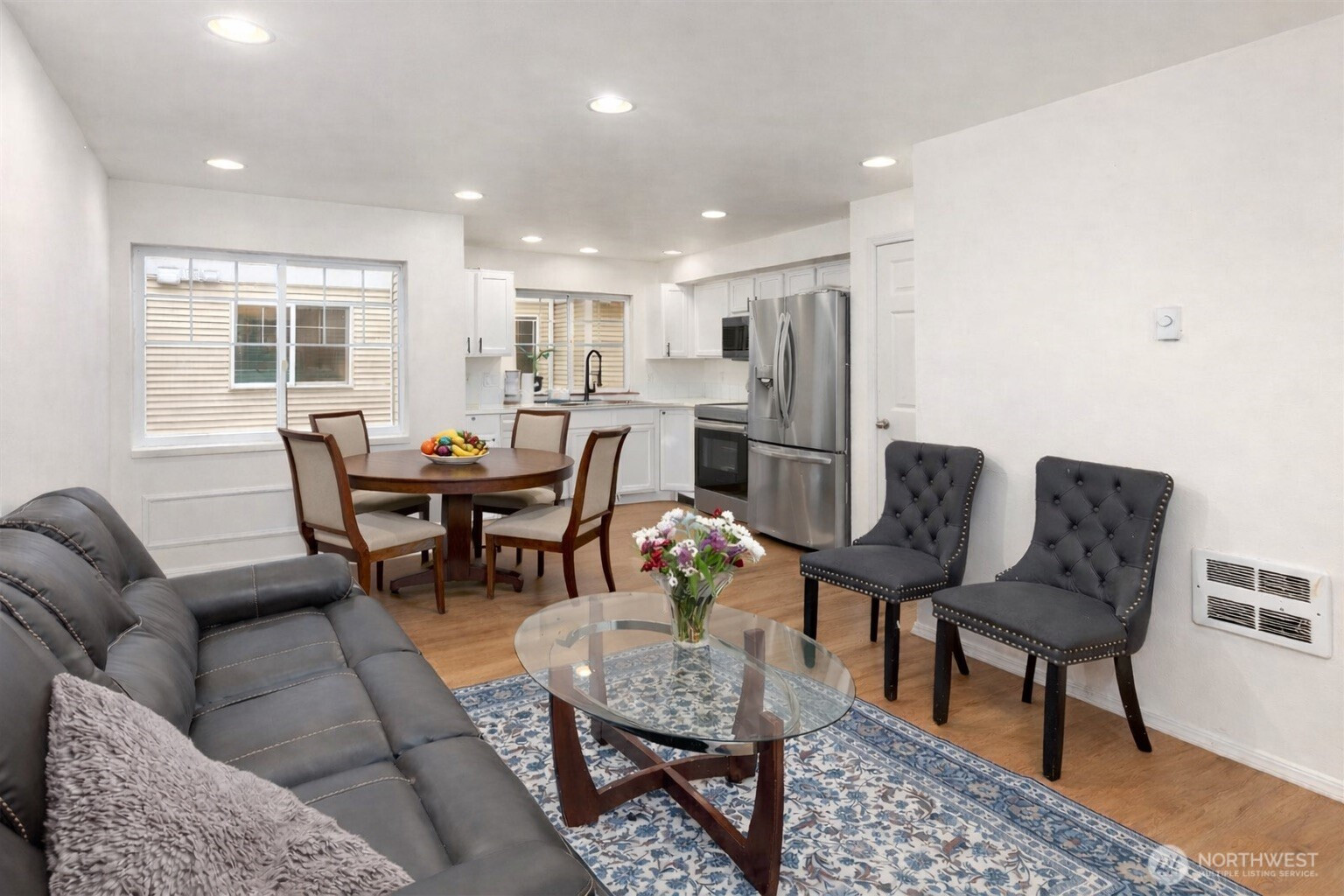 Location! Location! Location! Just steps from Green Lake, this charming 3-bed, 2 bath townhome offers vibrant details and flexible layout. Great floor plan with open kitchen to living room, stainless steel appliances, white backsplash and upgraded baths. Enjoy 3 levels of living space with tiled entry & foyer, and beautiful hardwoods throughout. Covered garage and NO HOA. Perfect for those seeking blend of urban living in city for an incredible price. Prime location- easy freeway access, close to bus stop and less than a mile from light rail station. Newly installed roof! Move in ready!