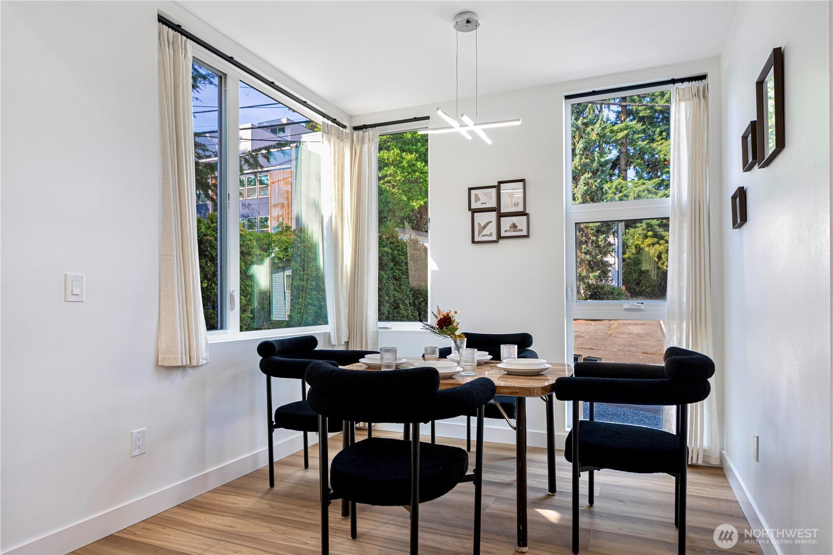 2025-built 3B3.5B townhome in desirable Ravenna near UW! A rare large private backyard, garage pre-wired for EV charging, and extra driveway parking —features rarely found in Seattle homes. This bright modern home offers floor-to-ceiling windows and abundant natural light. Chef's kitchen with island opens to the spacious living and dining area. Powder room on main for added convenience. Primary suite with walk-in closet and double vanity. Two spacious guest bedrooms, each with its own bathroom. Full-size washer & dryer included. All new window covering included. Enjoy an expansive rooftop deck for additional outdoor living. Energy-efficient all-electric mini-split A/C & heating. Quiet location just 8 minutes to UW and 13 minutes to Downtown, close to parks, shops, top schools, and easy access to I-5, I-90 & 520. No HOA!