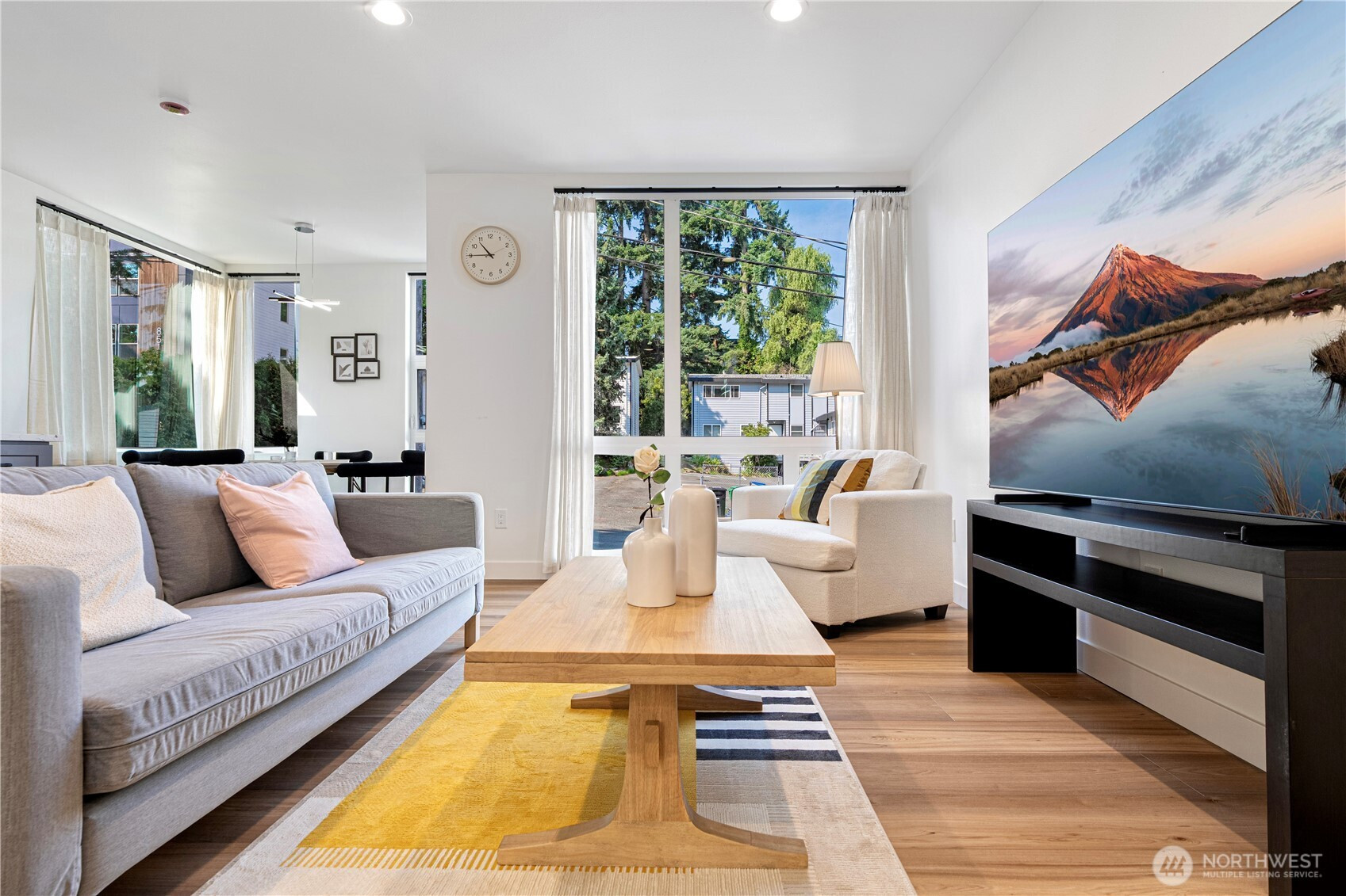 NO HOA due! Brand-new end-unit townhouse in desirable Ravenna neighborhood near UW! Rare oversized backyard, wide driveway & garage. Modern open floorplan with oversized windows for amazing natural light. Main floor features a chef’s kitchen with huge island, dining area, spacious living room, powder bath & ample storage. Upstairs: primary suite with floor-to-ceiling windows, double vanity, walk-in closet; plus another large bdrm, full bath & laundry. First floor: 3rd bdrm & full bath with direct backyard access. Expansive private backyard with patio, plus an oversized rooftop deck for extra outdoor living. Whole house equipped with mini-split AC. Peaceful neighborhood near UW, top schools, shopping, parks. Min to I-5, I-90, 522. EV ready!