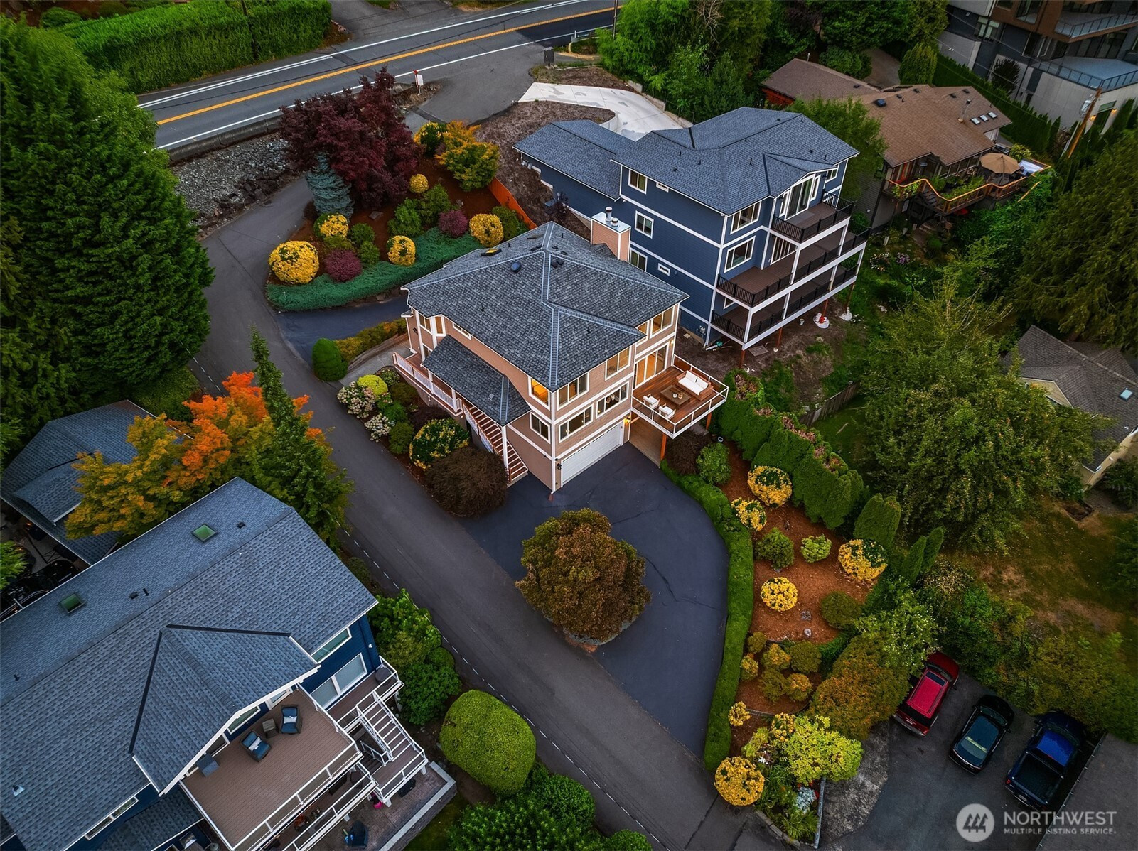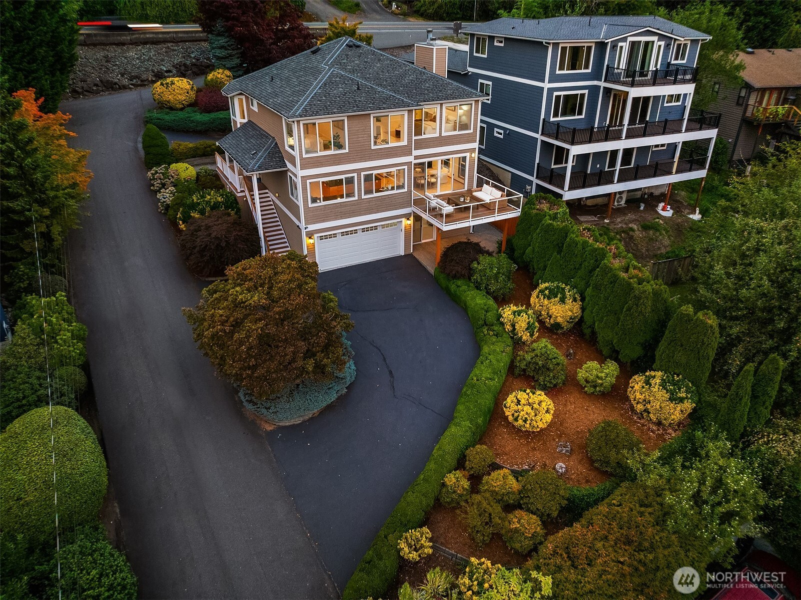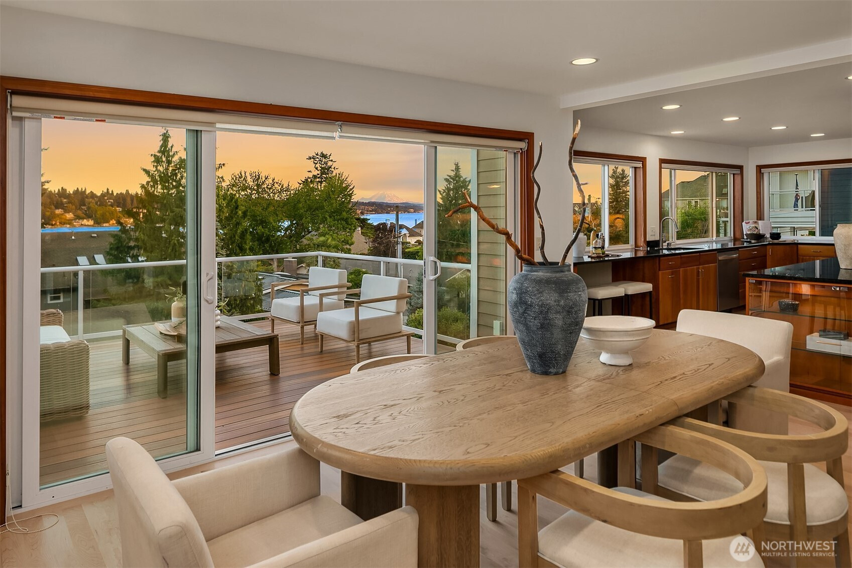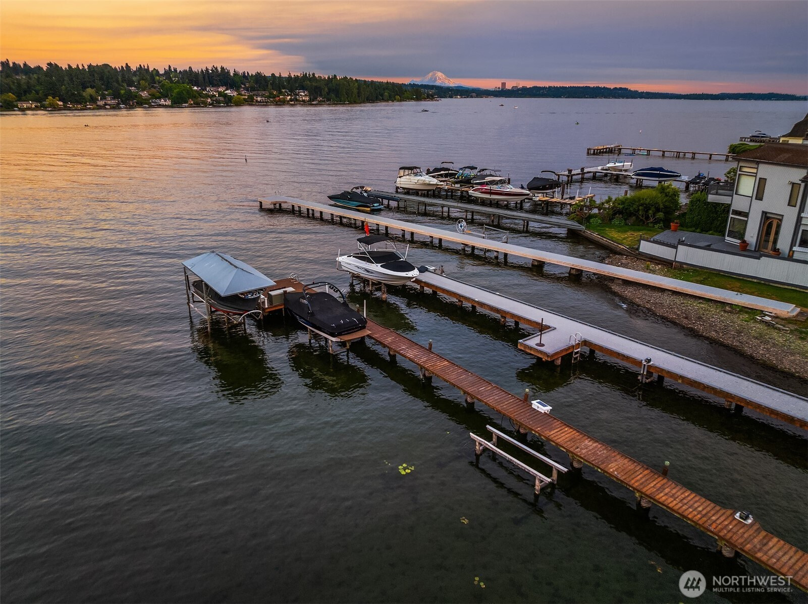 Experience the best of Kirkland living from this recently remodeled 3,740sf home on a private lane in the sought-after Juanita community. Enjoy astounding panoramic Lake WA & Mt Rainier views from all three levels, including shared dock access with convenient boat lift enjoyed at a moments notice. Guests are welcomed into the main level featuring a large kitchen w custom Cherry cabinets and stainless steel appliances, dining room w view deck, office, & spacious great room w gas fireplace. Upstairs you’ll discover 3 beds including an impressive primary suite w two walk-in closets, gas fireplace, & 5-piece spa bath w jetted tub. Large lower level bedroom w access to covered patio & 3/4 bath. 2-car garage, built-in vac, maple floors, & more