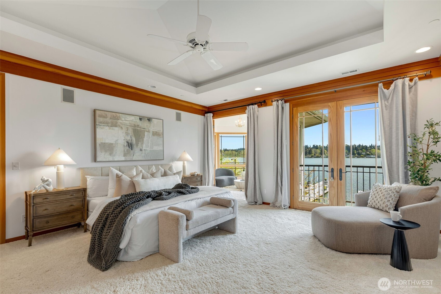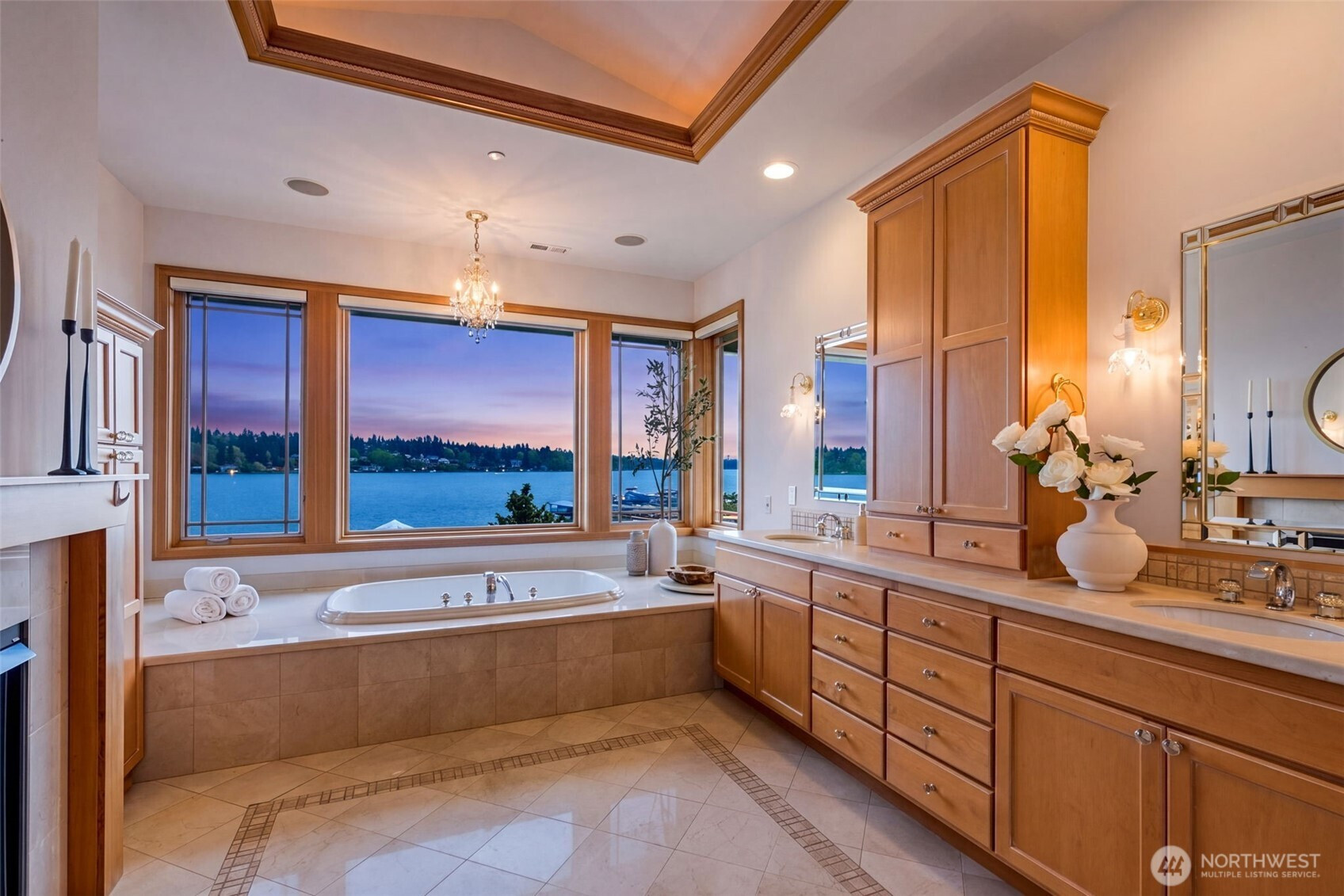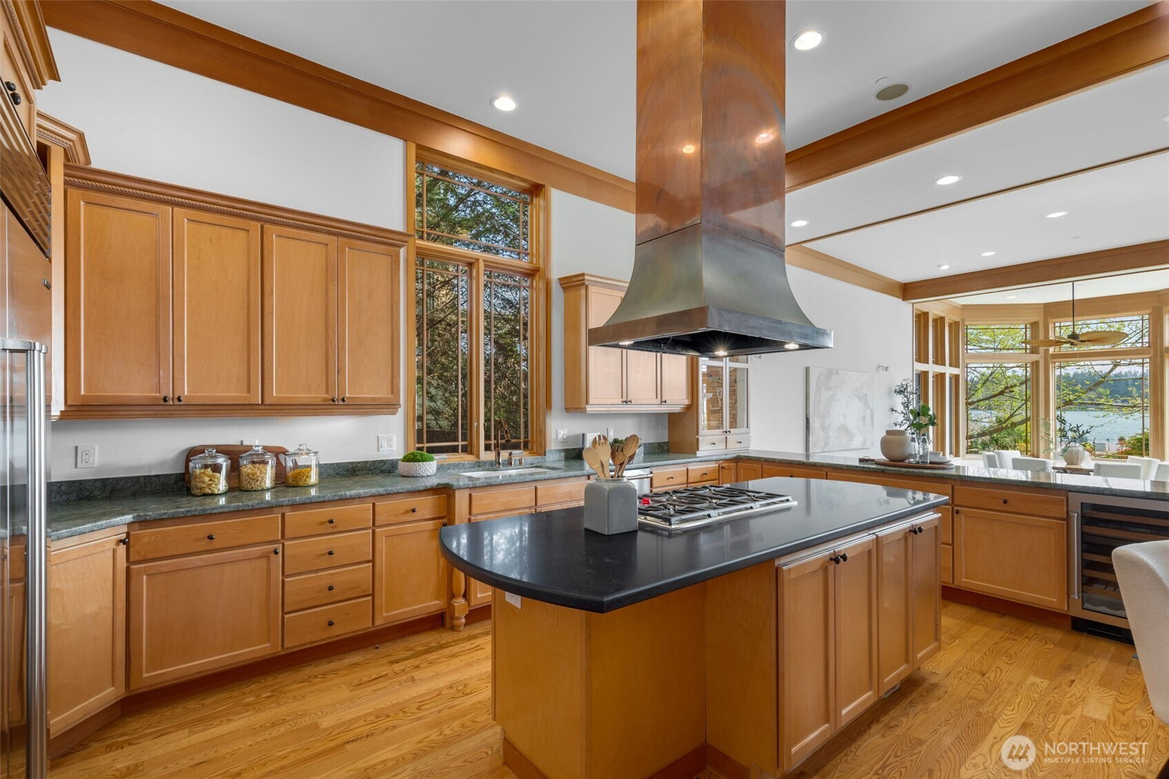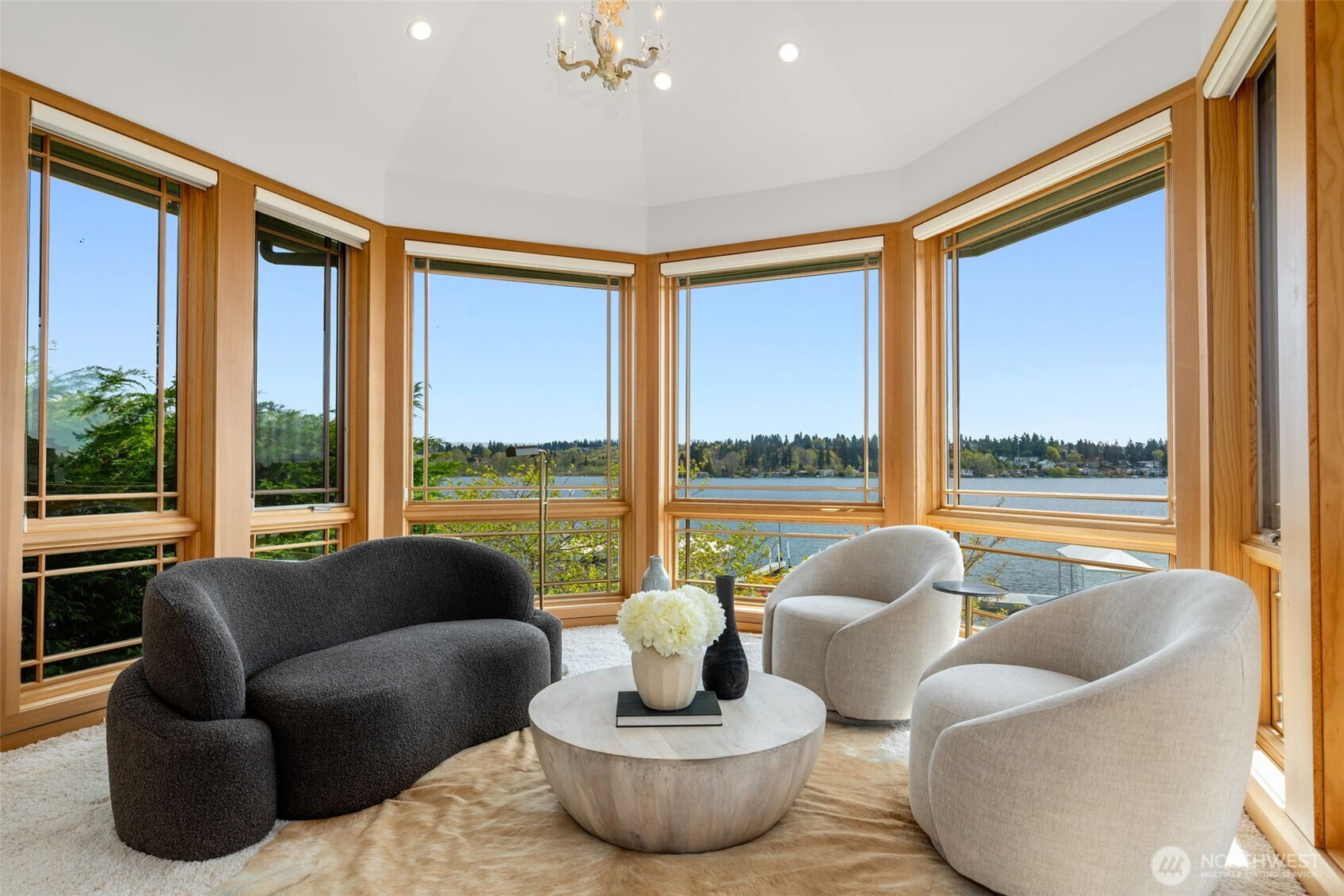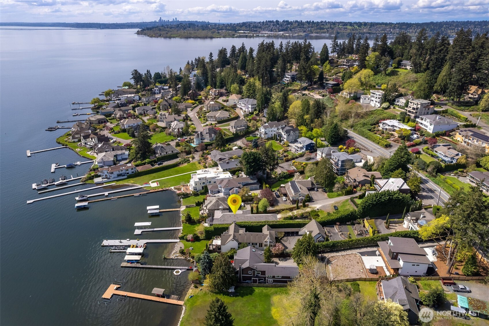Experience the pinnacle of beachfront living in this architectural masterpiece. Designed to harmonize with the serene tranquility of Juanita Bay, this home offers a front-row seat to spectacular, unobstructed views of Mt. Rainier. Massive walls of windows flood the living spaces with natural light, blurring the line between the indoors and the shimmering lake. high-end culinary suite designed to inspire the most discerning chefs. Rich, substantial finishes and a palette of warm camel hues create an atmosphere of effortless, natural elegance. The space over the garage includes two guest bedrooms and a kitchen with a dedicated dining area. New A/C replaced in 2020. Dock resurfaced in 2022 with permit. Installed Golden lift with 48" of range and new canopy in 2022. Whole room new painting in 2026. This isn't just a home; it's a private resort. Every detail has been curated for a lifestyle of leisure and convenience: