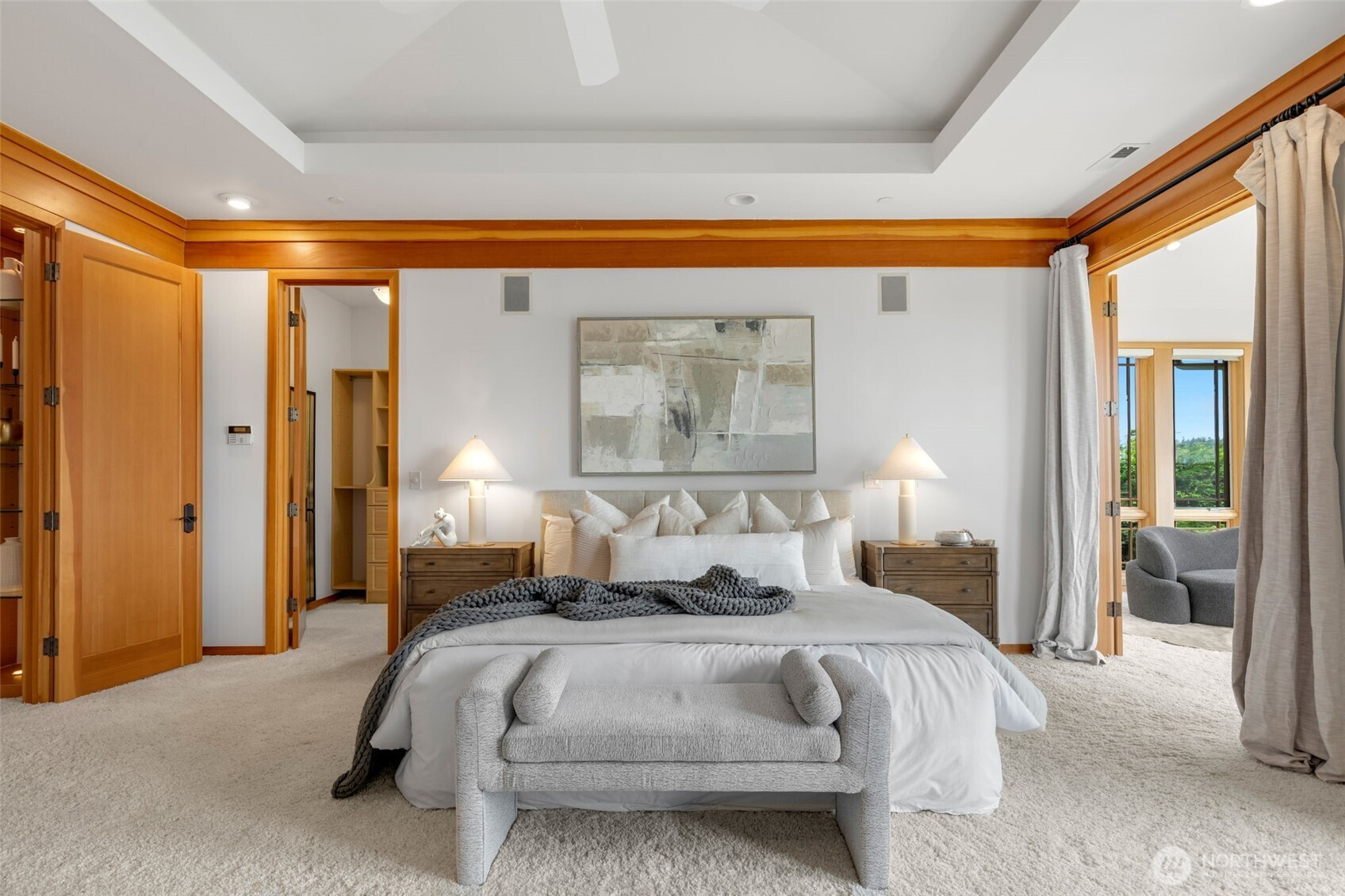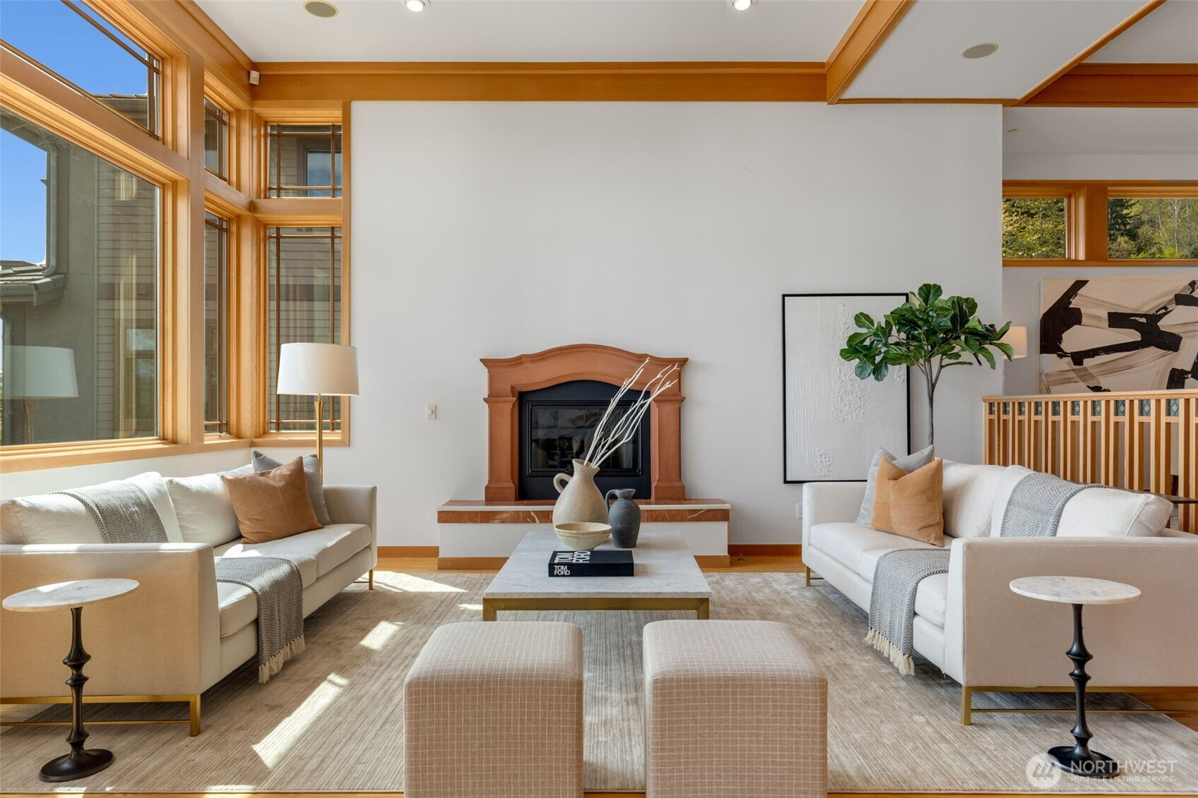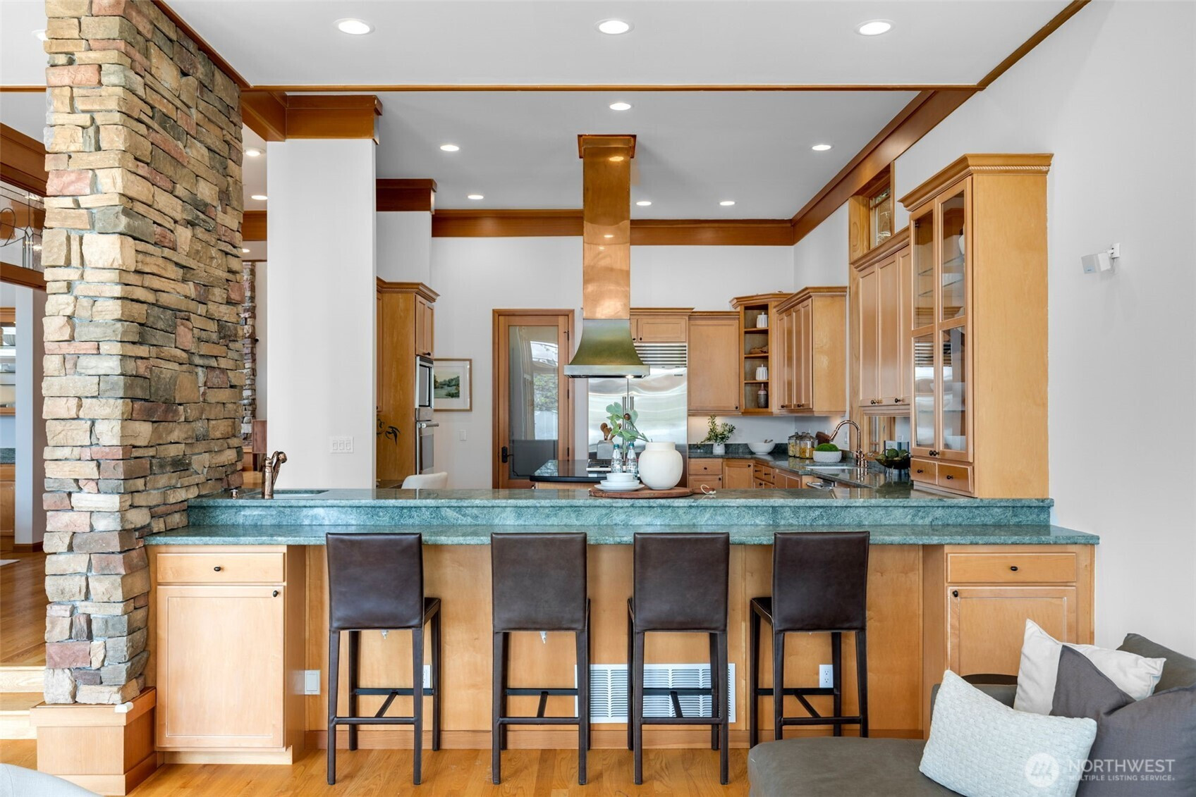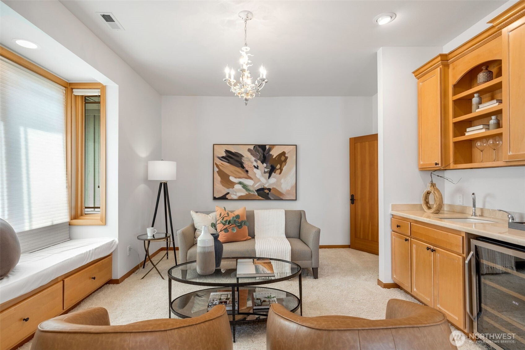 Experience the pinnacle of beachfront living in this architectural masterpiece. Designed to harmonize with the serene tranquility of Juanita Bay, this home offers a front-row seat to spectacular, unobstructed views of Mt. Rainier. Massive walls of windows flood the living spaces with natural light, blurring the line between the indoors and the shimmering lake. high-end culinary suite designed to inspire the most discerning chefs. Rich, substantial finishes and a palette of warm camel hues create an atmosphere of effortless, natural elegance. The space over the garage includes two guest bedrooms and a kitchen with a dedicated dining area. New A/C replaced in 2020. Dock resurfaced in 2022 with permit. Installed Golden lift with 48" of range and new canopy in 2022. Whole room new painting in 2026. This isn't just a home; it's a private resort. Every detail has been curated for a lifestyle of leisure and convenience: